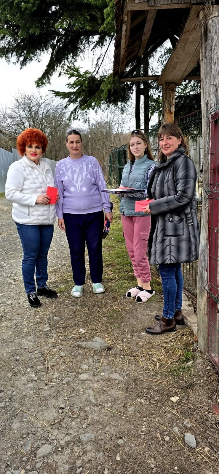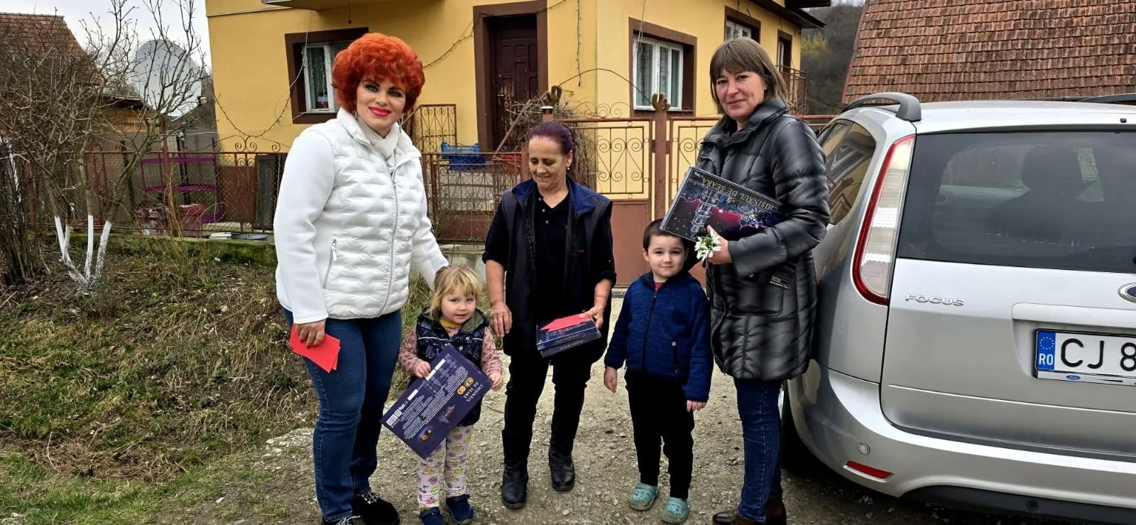 ”Printre mărțișoarele și ghioceii specifici acestei zile de 1 Martie, ne-am îndreptat spre doamnele noastre din localitățile Feiurdeni, Pădureni și Satu Lung pentru a le oferi, în semn de apreciere, o felicitare și o cutie de ciocolată, urându-le totodată o primăvară fericită!”, a scris Lucia Suciu.