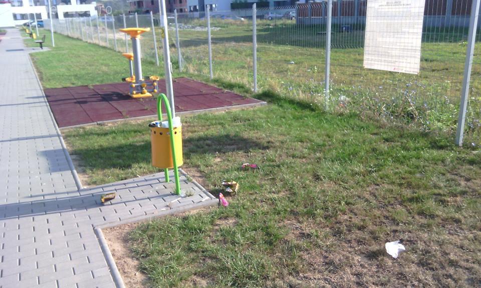 ”Parca am trai in salbaticie si parca unii acum au coborat din copaci. In Poligonul mic cosul de gunoi al miniparculetului a devenit ditamai tomberonul! In Parcul ANL GARDUL DE PROTECTIE al terenului multifunctional a fost distrus! In Parcul de la Stadion, gardul distrus si mizerie la 10 centimetri de cosul de gunoi! Aspecte sesizate de Politia Locala azi noapte. S-a facut Pv de constatare pt distrugere. S-a facut curat dupa cum se vede in unele poze…Din nou! Unii sunt chiar nesimtiti…Efectiv nu mai am cuvinte!