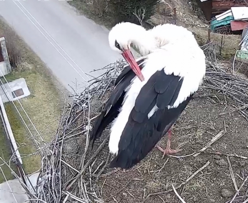 „Cu o zi mai devreme, în seara zilei de 29 martie, pe cuib a mai aterizat barză, însă a rămas doar 4-5 minute pe loc, apoi și-a continuat zborul.”