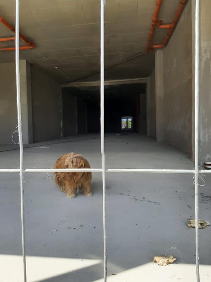 Lucrările au fost întrerupte dintr-un anumit motiv, probabil din cauza pandemiei, și toți muncitorii au plecat acasă, însă nimeni nu s-a gândit la micuțul ghem de blană, care nu are unde să se ducă.