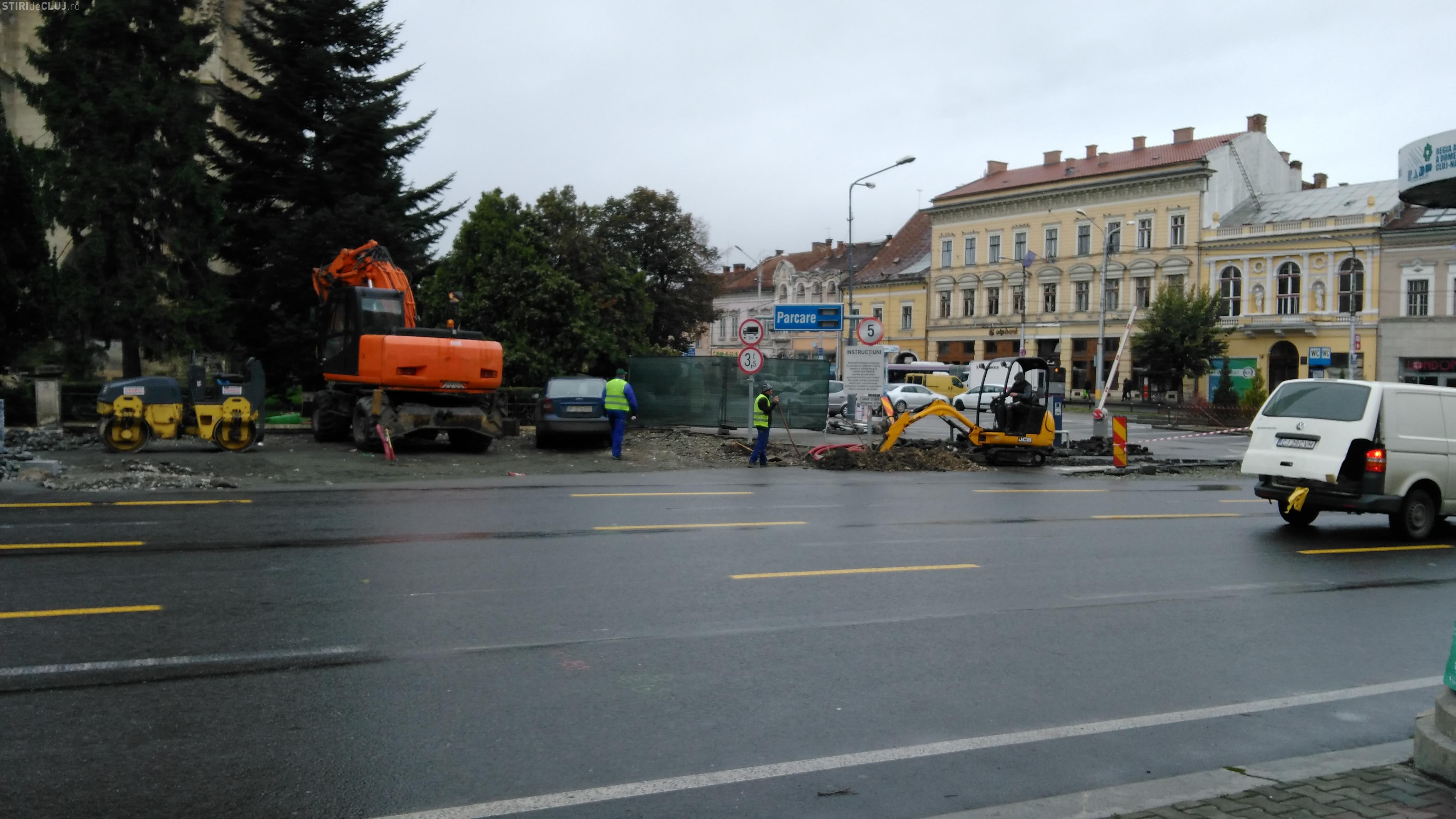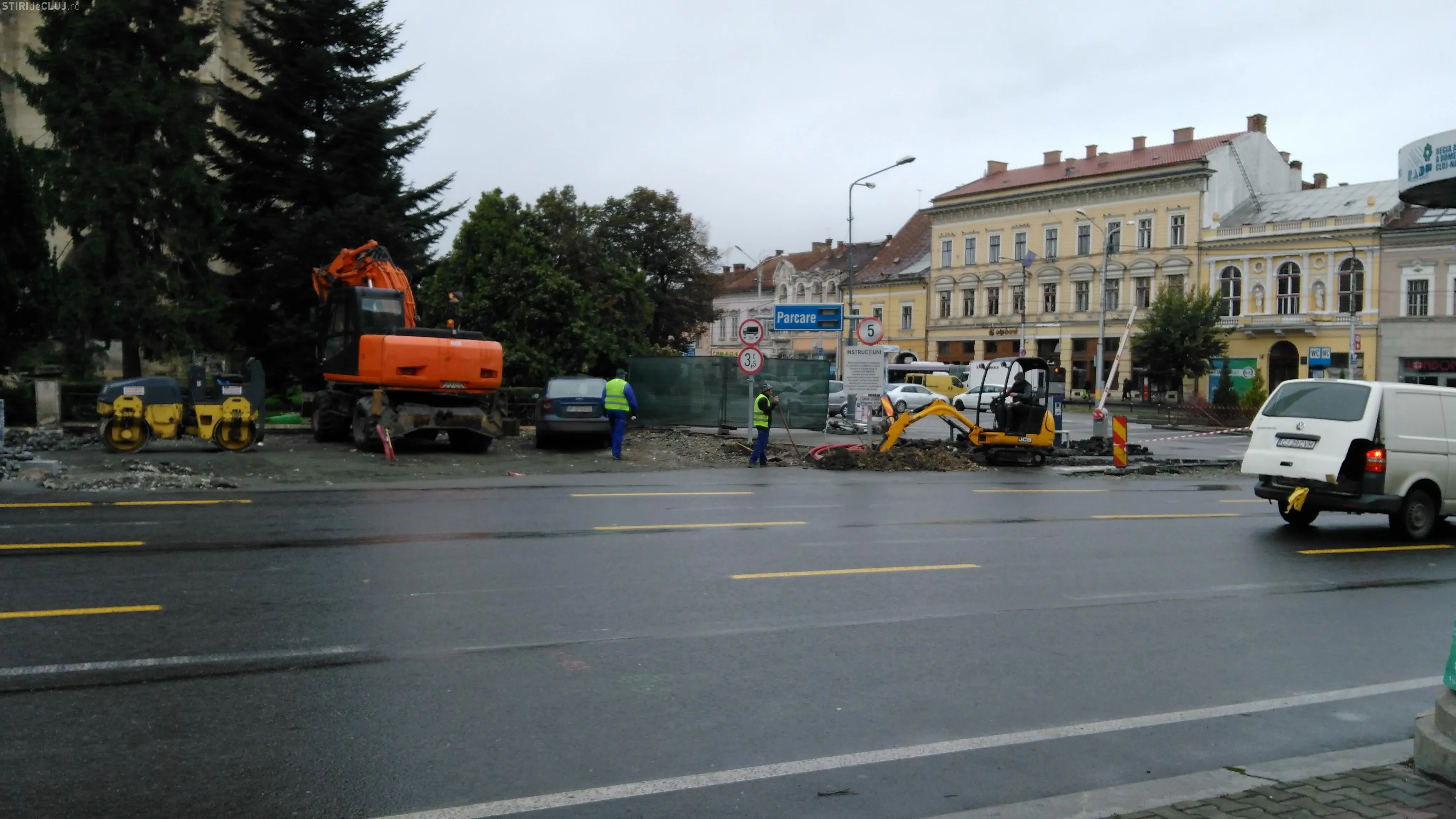 Primăria municipiului Cluj-Napoca lucrează la reabilitarea și modernizarea Pieței Unirii, iar joi dimineață s-au apucat de pavarea trotuarului din zona catedralei Sf. Mihail.