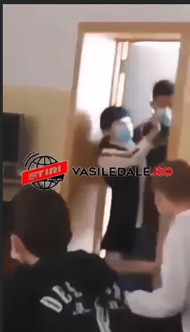 Într-o filmare apărută în mediul online se aude vocea profesoarei: „Măi, copile, nu mă împinge”.