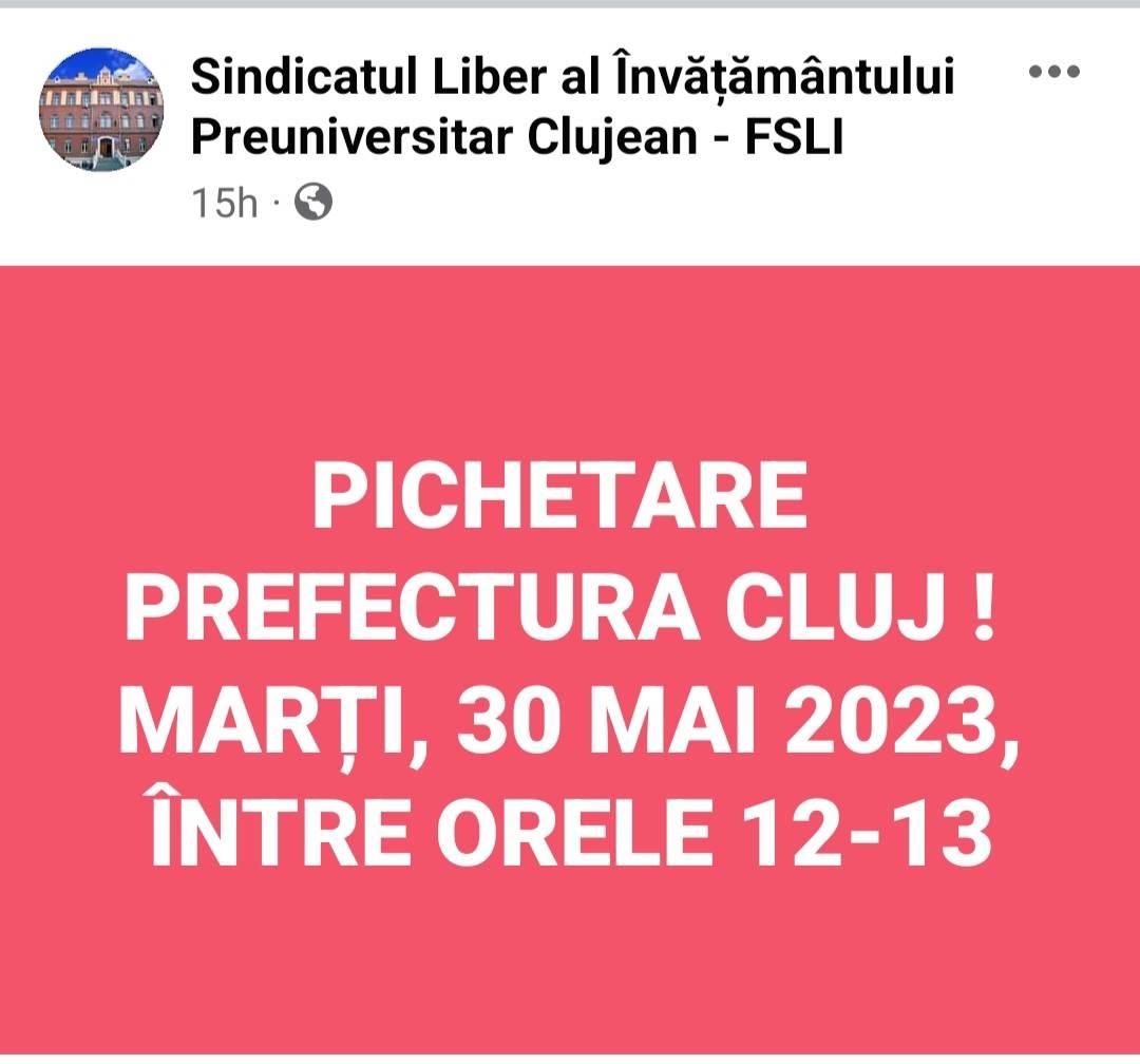 Profesorii clujeni vor picheta marți, din nou, Prefectura Cluj! Sindicaliştii din Educaţie, revoltaţi pe guvernanți