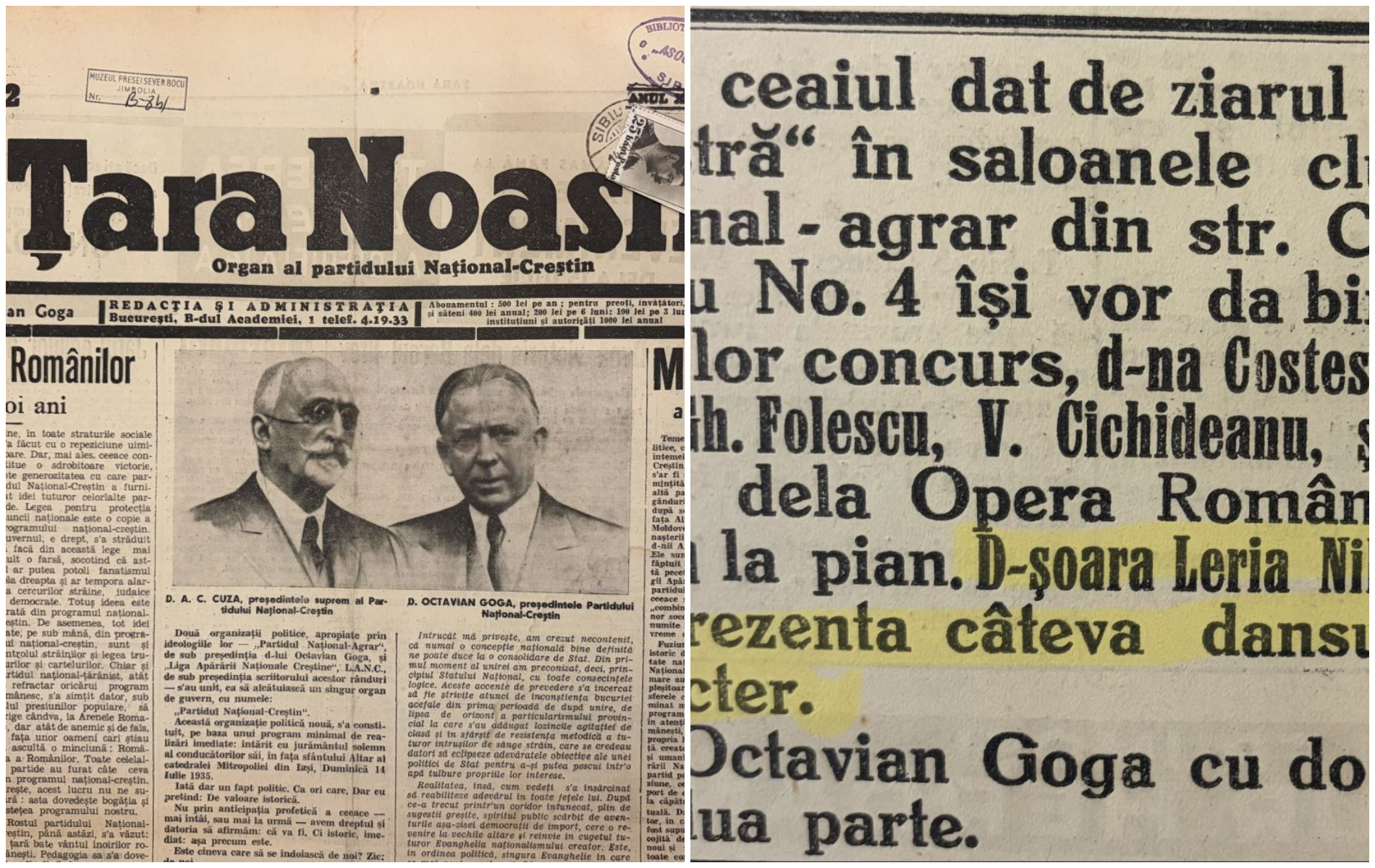 Papahagi pornește de la un exemplu concret din ziarul „Țara noastră”: „În 1937, domnișoara Leria Niki-Cucu dansa. Așa ne informează gazeta lui Octavian Goga, Țara noastră, care de o vreme arborase zvasticile lui Hitler pe frontispiciu”. El subliniază direct că presa respectivă adoptase simboluri naziste: „la noi și naționalismul sau suveranismul sunt mimetice și se iau după cine pot: ieri Hitler și Stalin, azi Putin sau Trump”.
