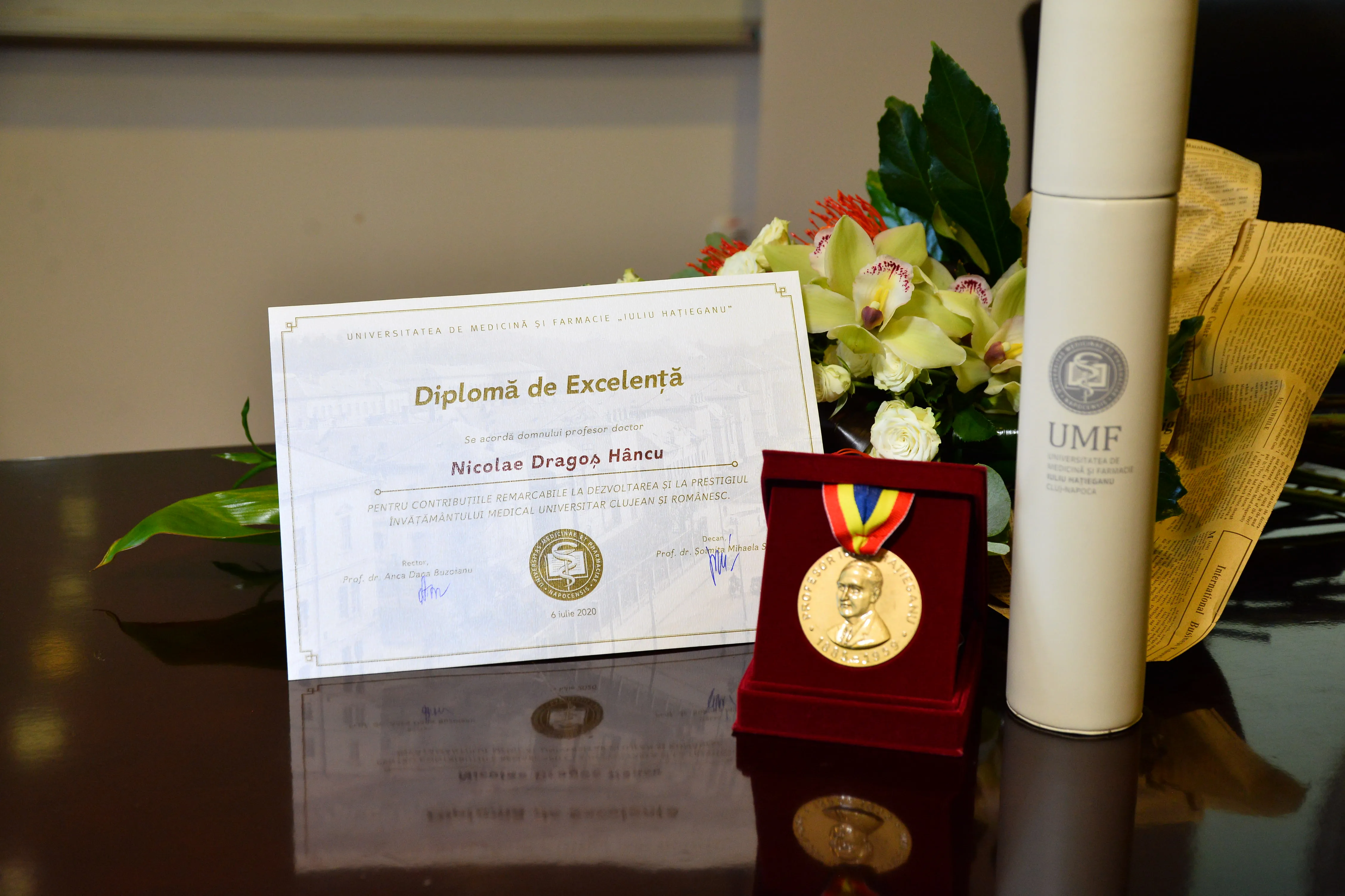 Ceremonia de decernare a Medaliei de onoare ”Iuliu Hațieganu”, pentru contribuţiile remarcabile la dezvoltarea și prestigiul învăţământului medical universitar clujean și românesc, a avut loc astăzi, 6 iulie 2020, în amfiteatrul Ion Aleman al Universității de Medicină și Farmacie ”Iuliu Hațieganu”. Ceremonia a fost prezidată de rectorul universității, prof. dr. Anca Dana Buzoianu și de prorectorul universității, prof. dr. Daniel Mureșan.