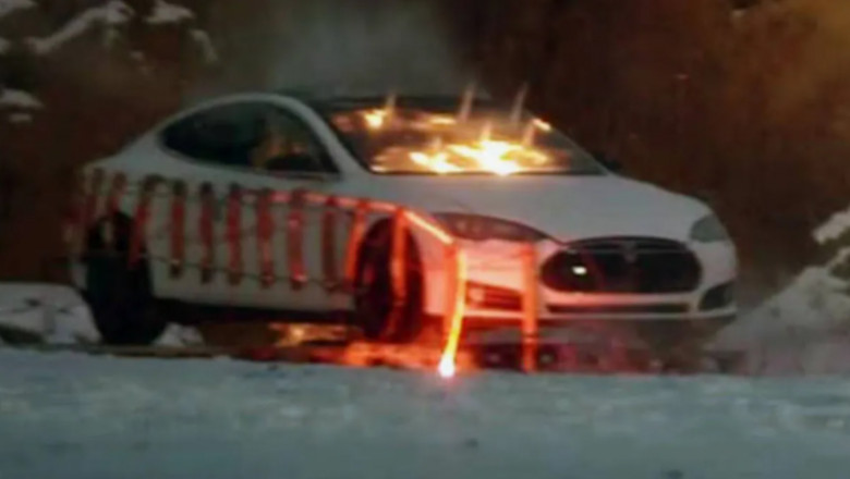 Proprietarul unei Tesla și-a aruncat mașina în aer - VIDEO