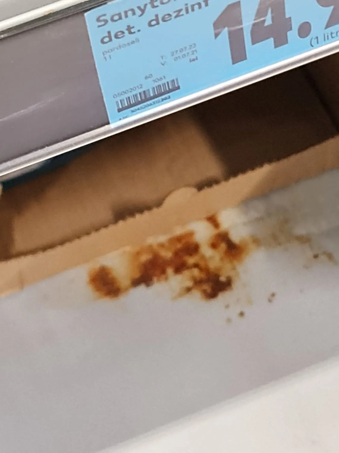 - Folosirea unor vitrine frigorifice neigienizate, cu scurgeri de conținut, aglomerări de praf, mâzgă, diverse lichide, improprii depozitării produselor alimentare.