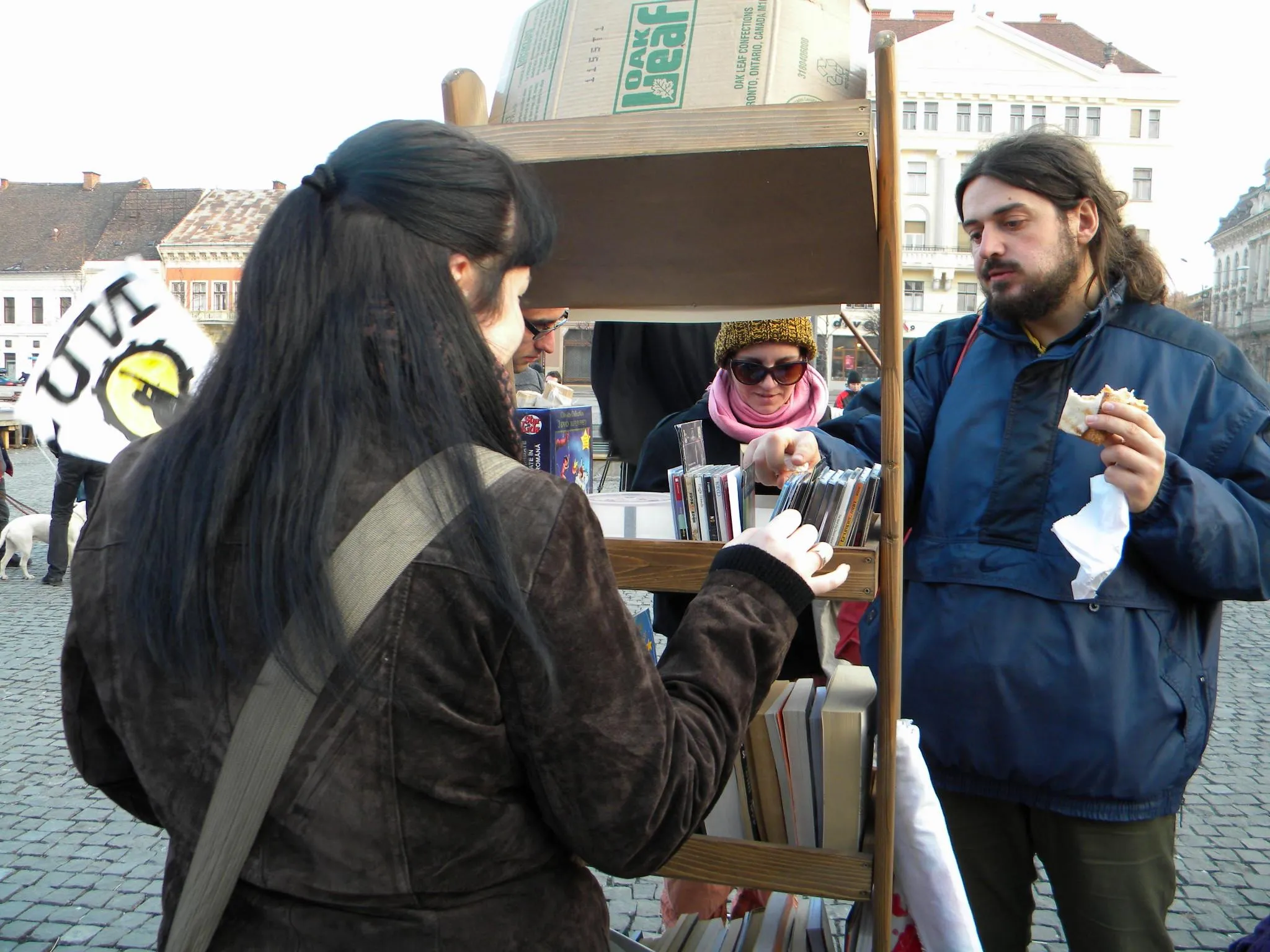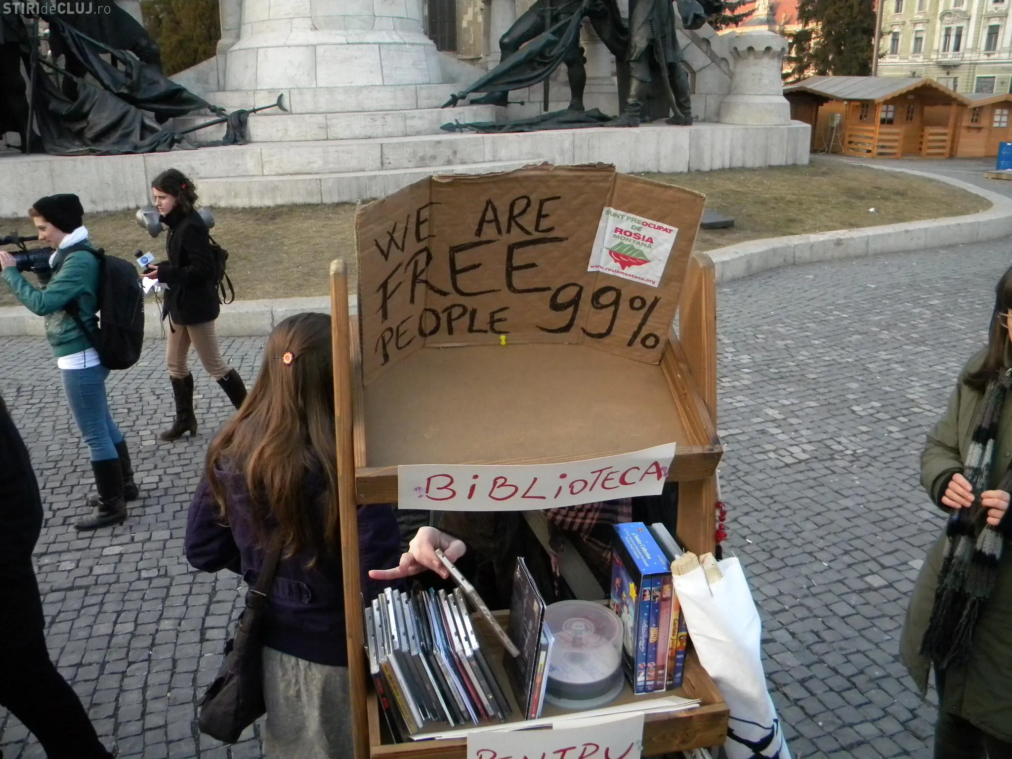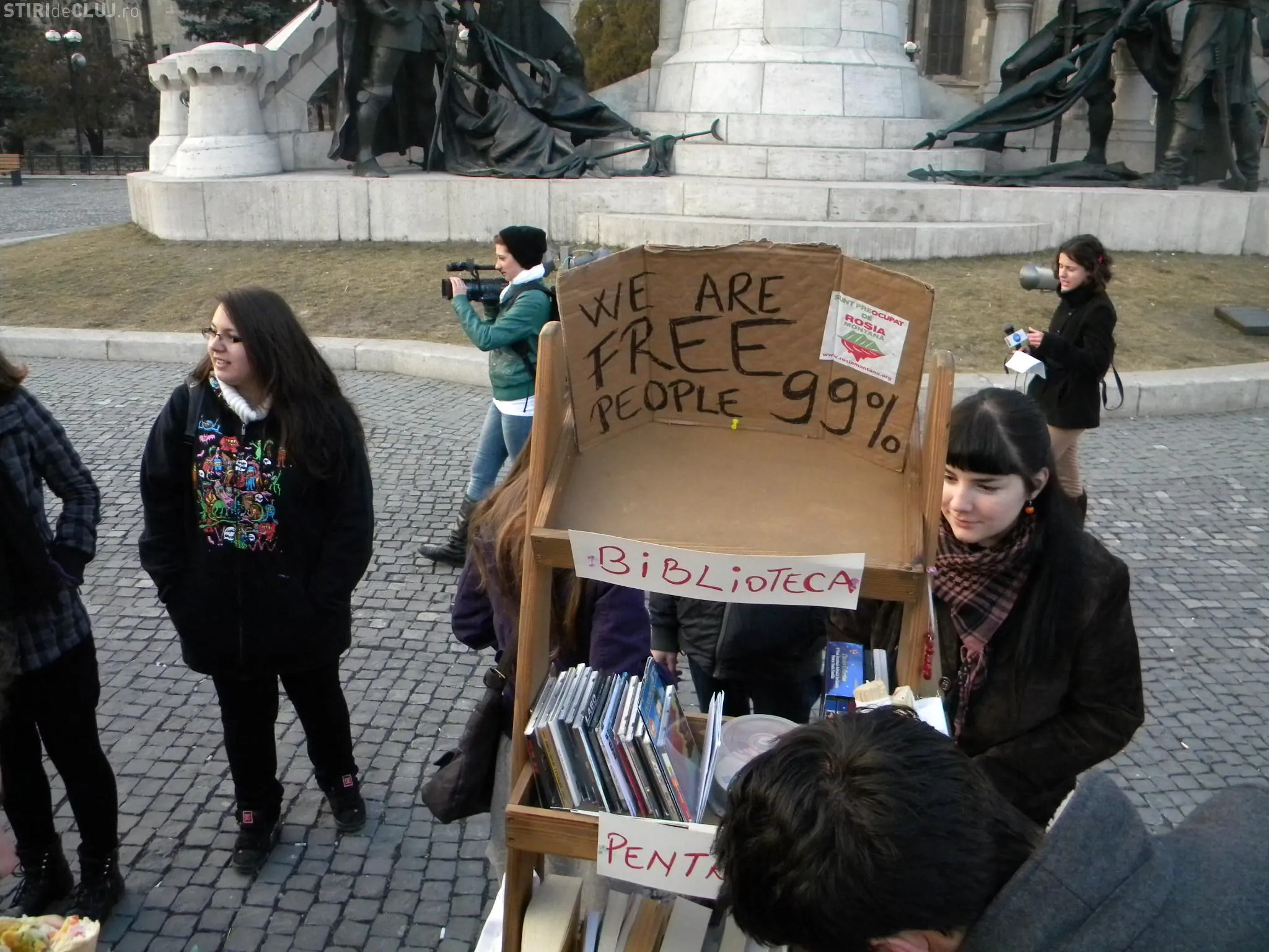 Protest ACTA in Piata Unirii! Tinerii au adus o mini biblioteca si au facut "book sharing" FOTO