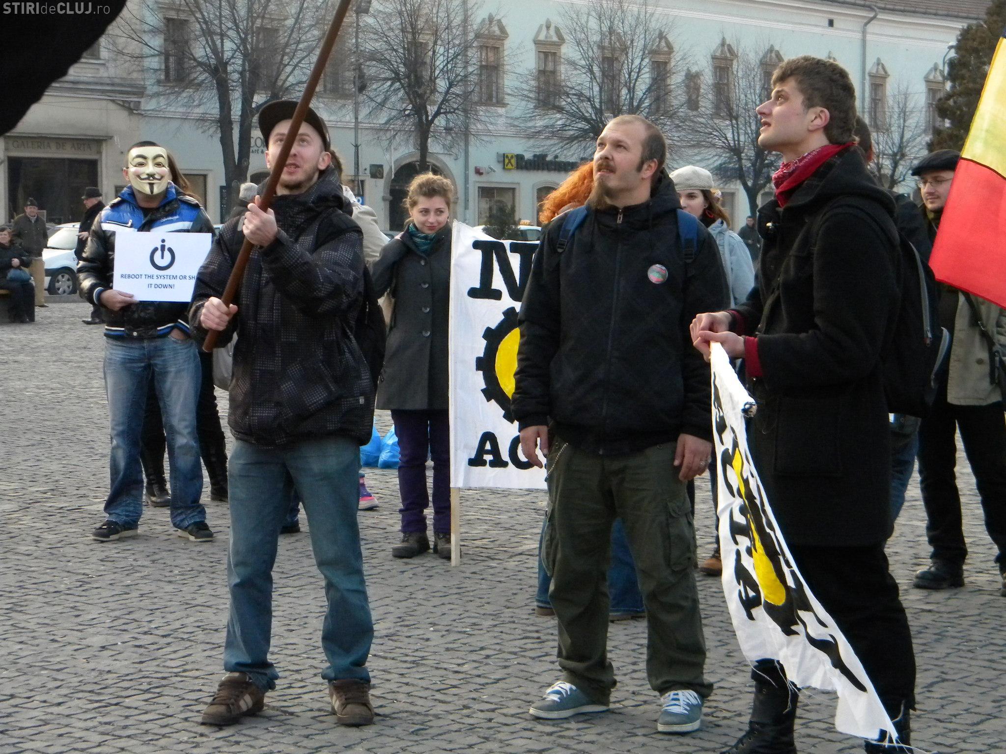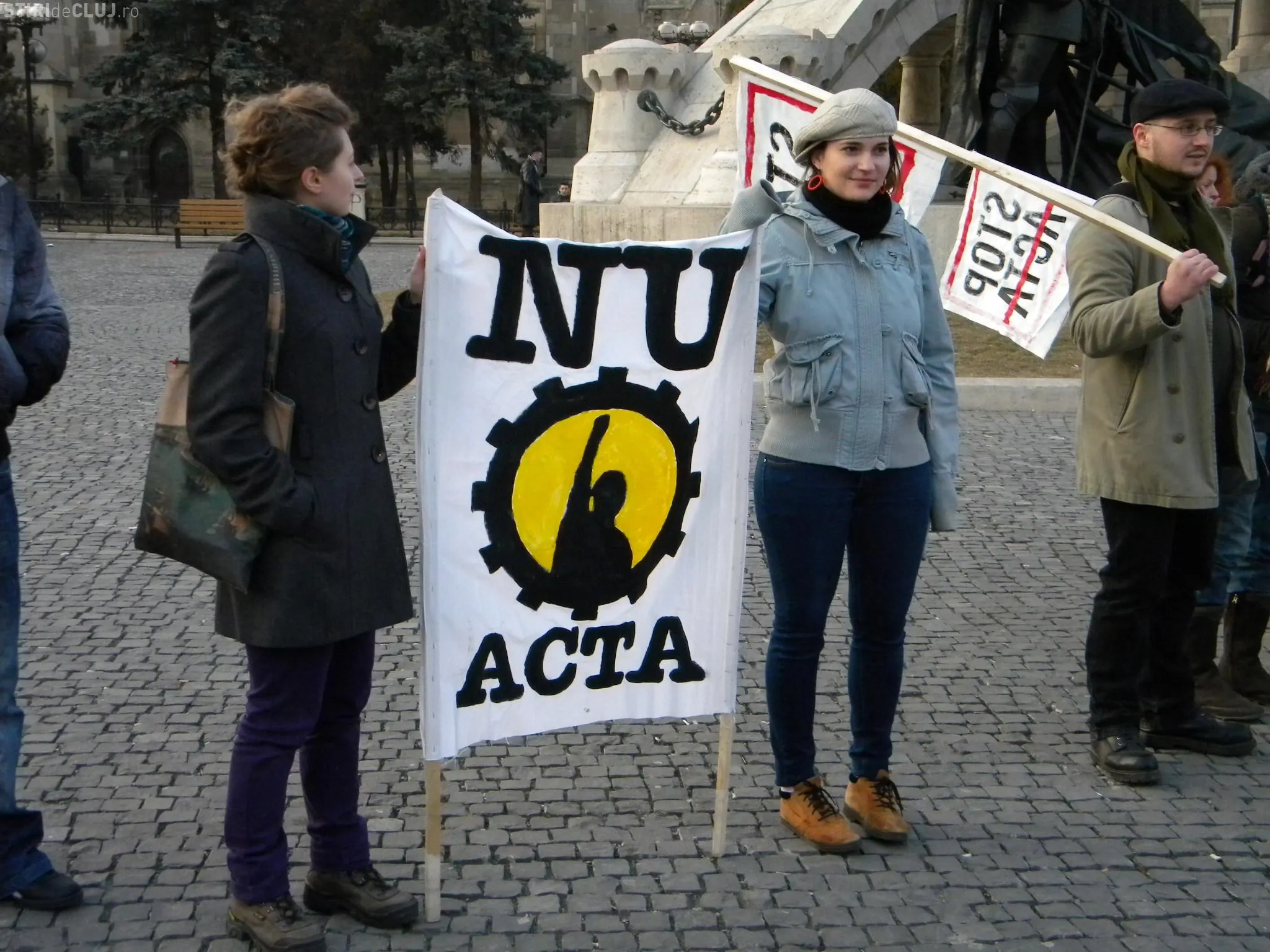 Tinerii au protestat impotriva ACTA, sambata, 10 martie, de la ora 17.00. Ei au adus in piata o mini biblioteca si au facut "book-sharing".