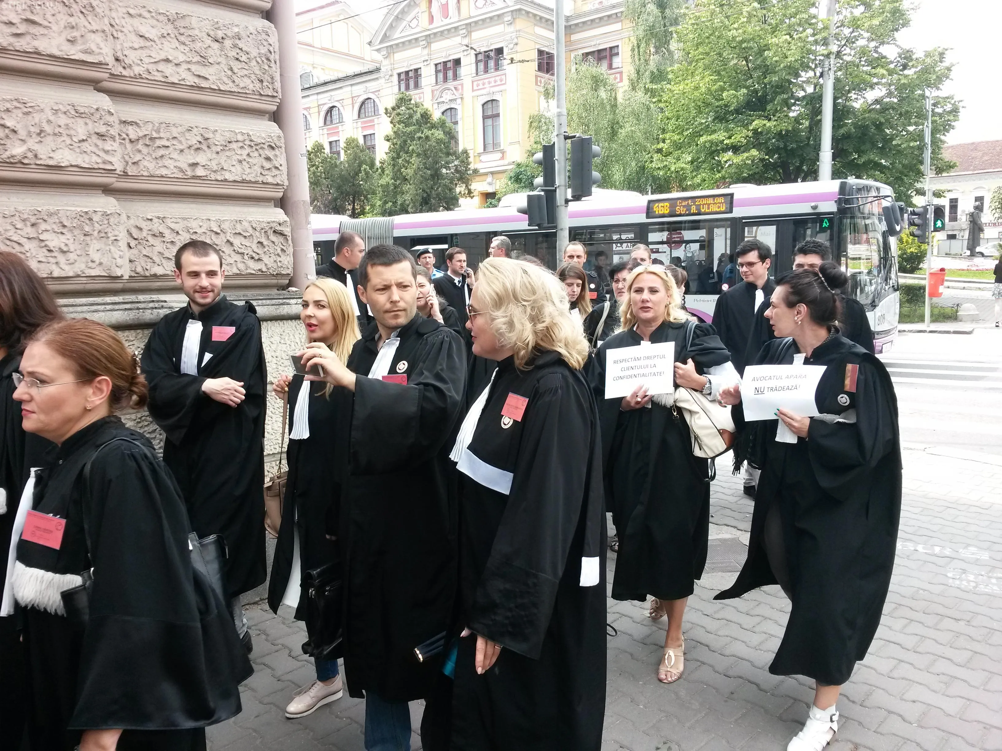 Avocații clujeni sunt primii care au ieșit în stradă, luni 30 mai, între orele 12.00 - 12.30.