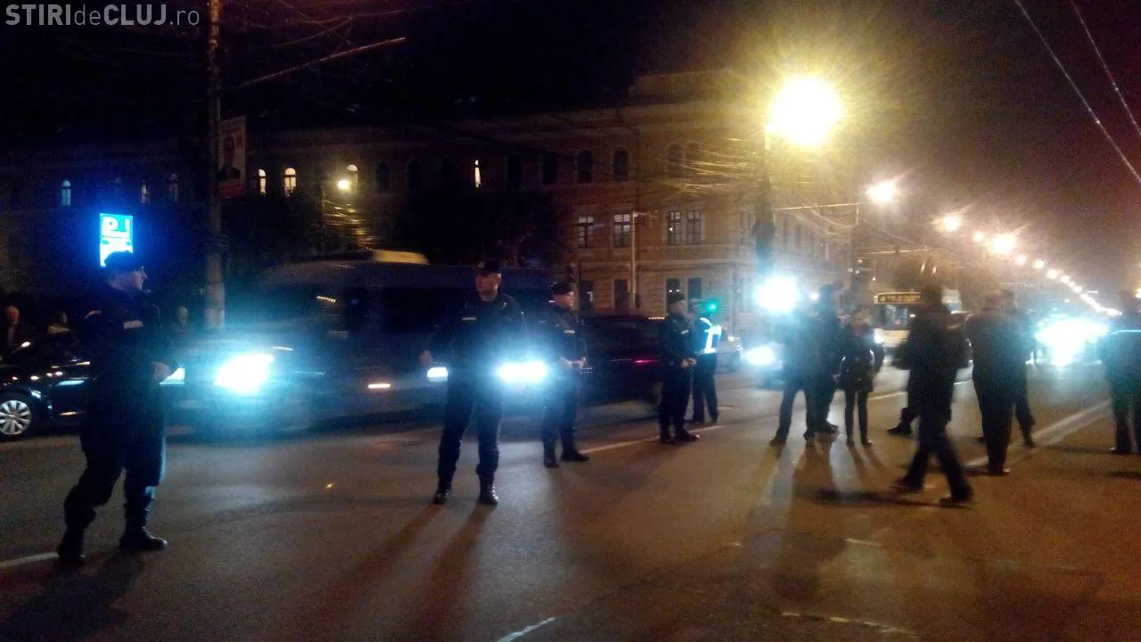 Mulțumea este păzită de un efective sporite de jandarmi și poliție, cu toate că nu s-au înregistrat incidente pe drumul spre Prefectura Cluj.