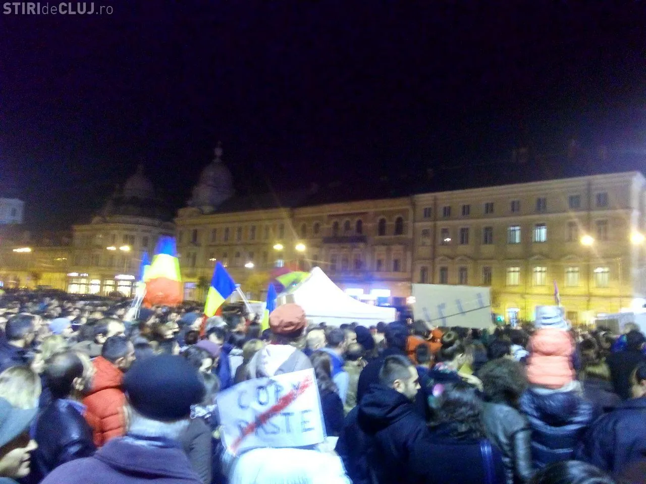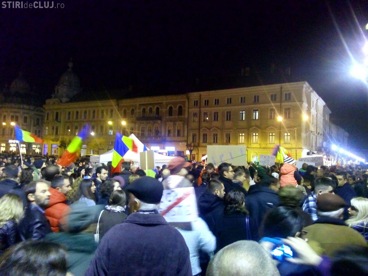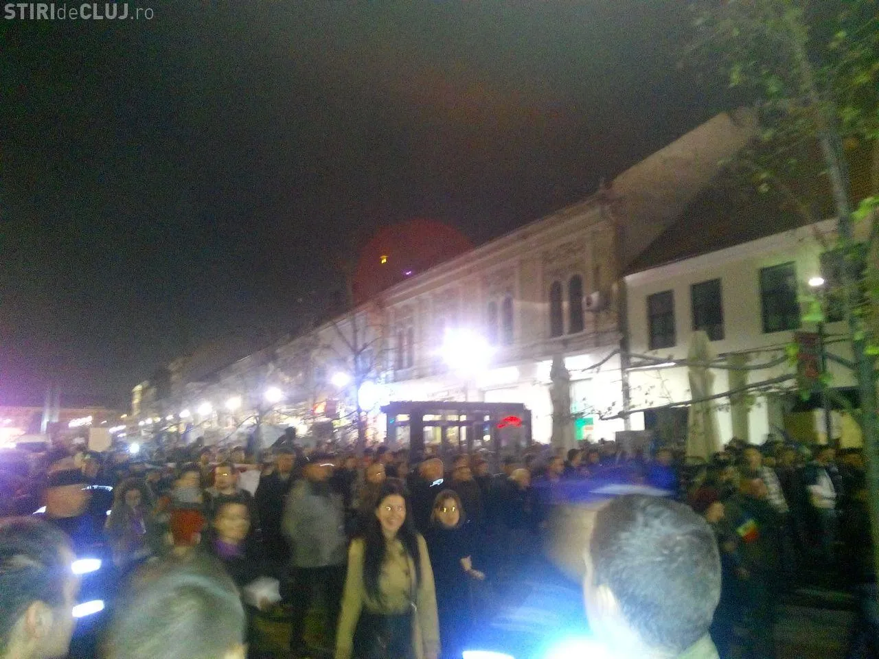 Oamenii s-au adunat în Piața Unirii la ora 18.00. Treptat mulțimea a ajuns la cifra de 10.000, conform jandarmilor. Din centrul Clujului manifestanții adunați în urma unei postări pe Facebook s-au dus pe Bulevardul Eroilor până la Prefectură, iar apoi vor reveni în centrul orașului.