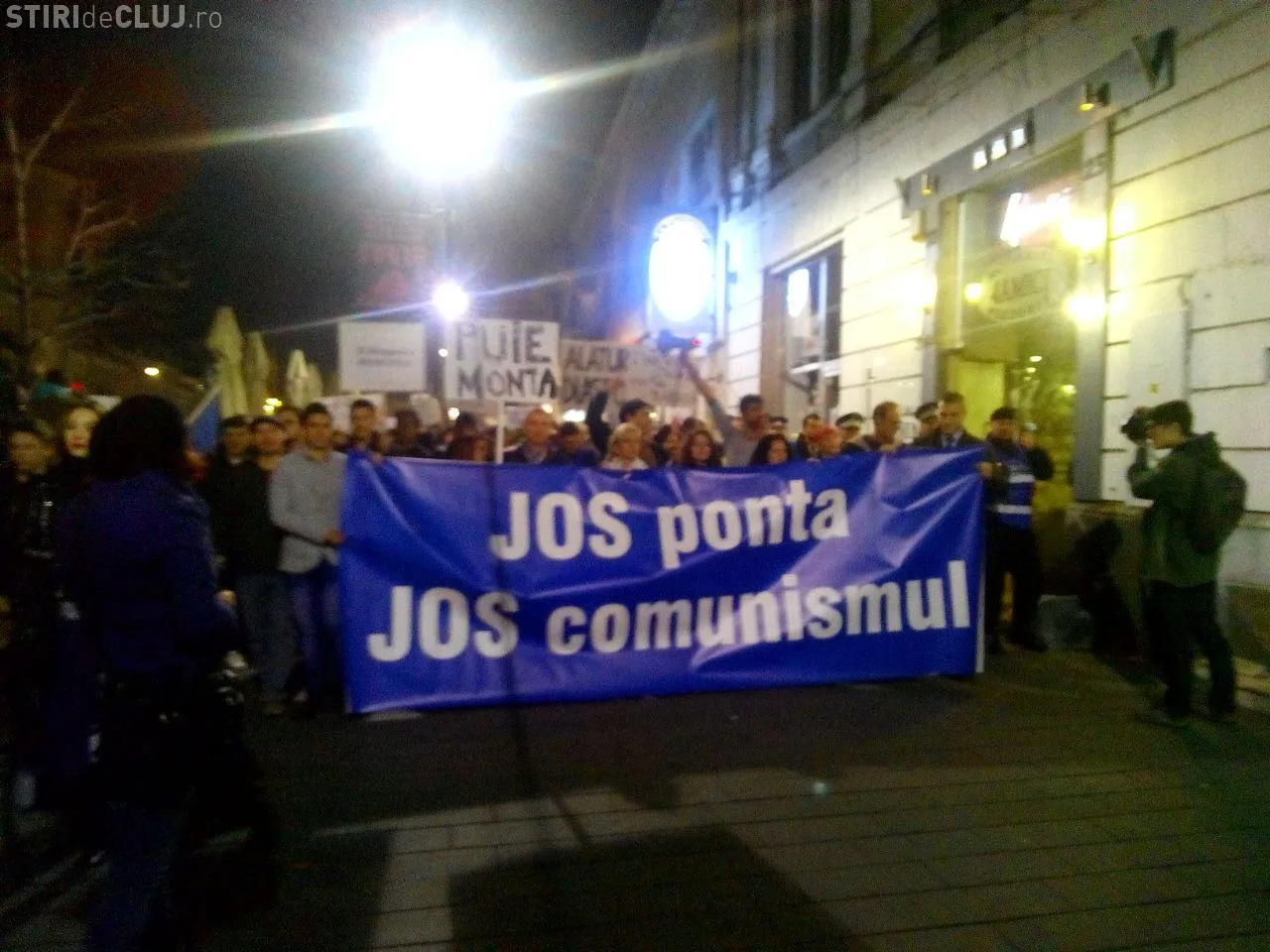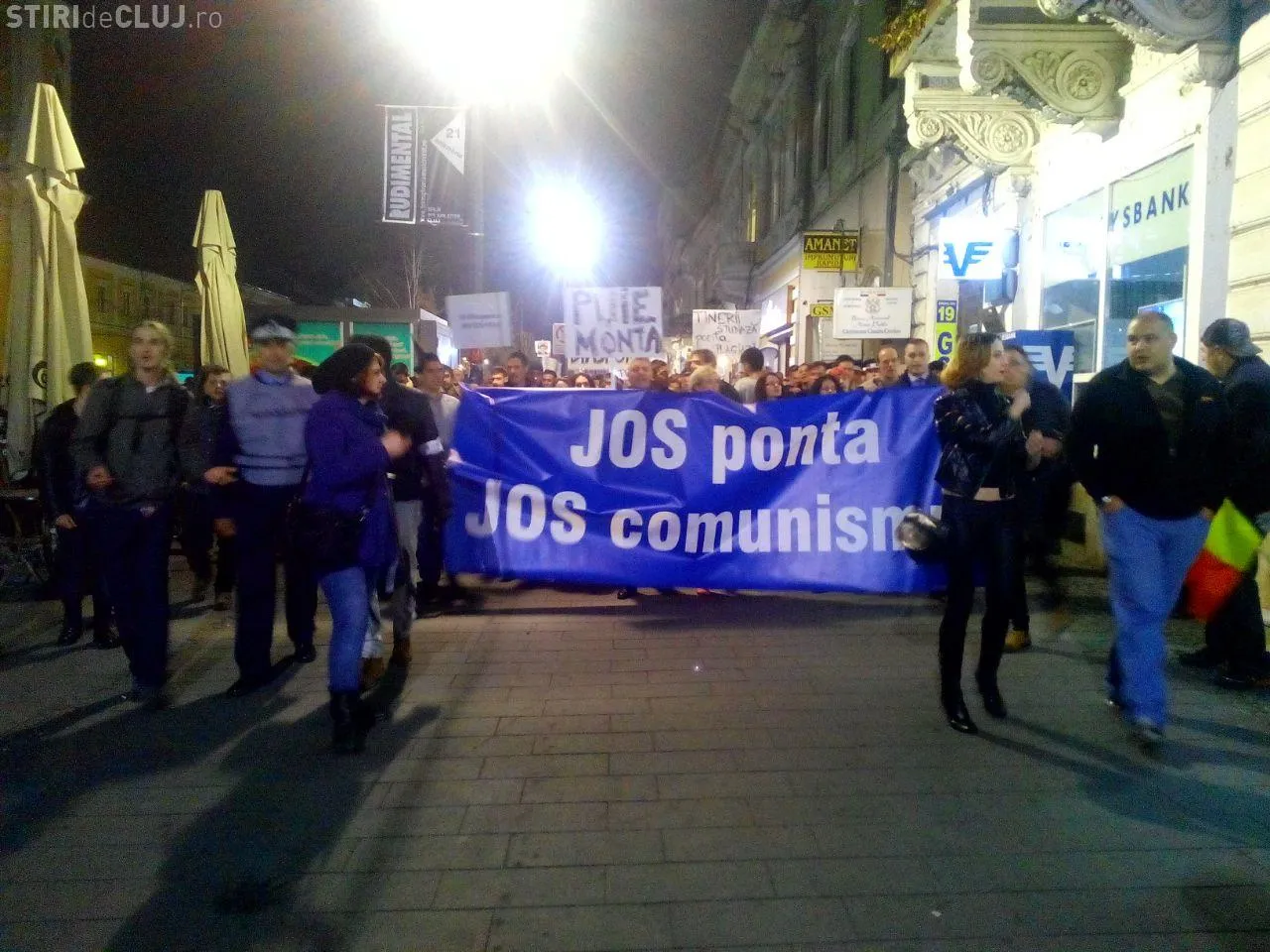 Circa 10.000 de clujeni au ieșit în stradă sâmbătă seara pentru a protesta împotriva lui Victor Ponta.
