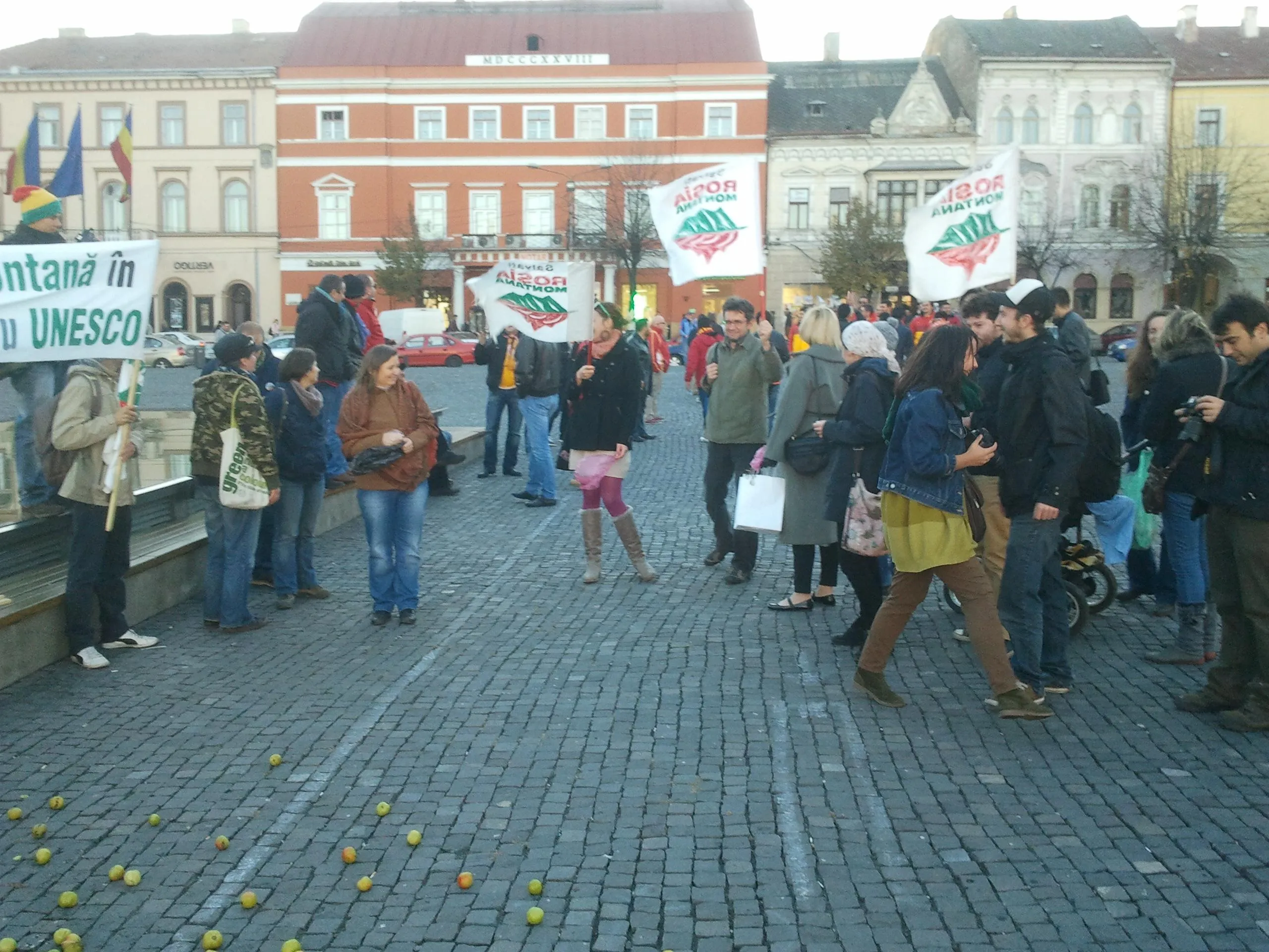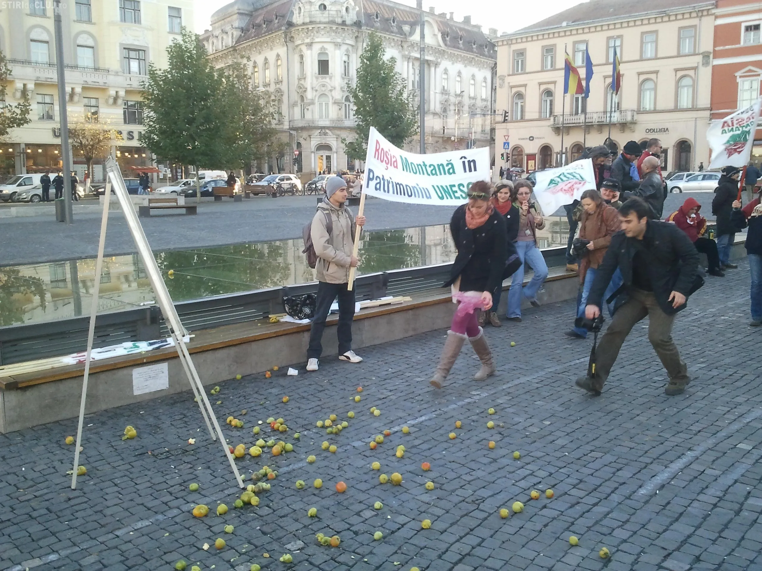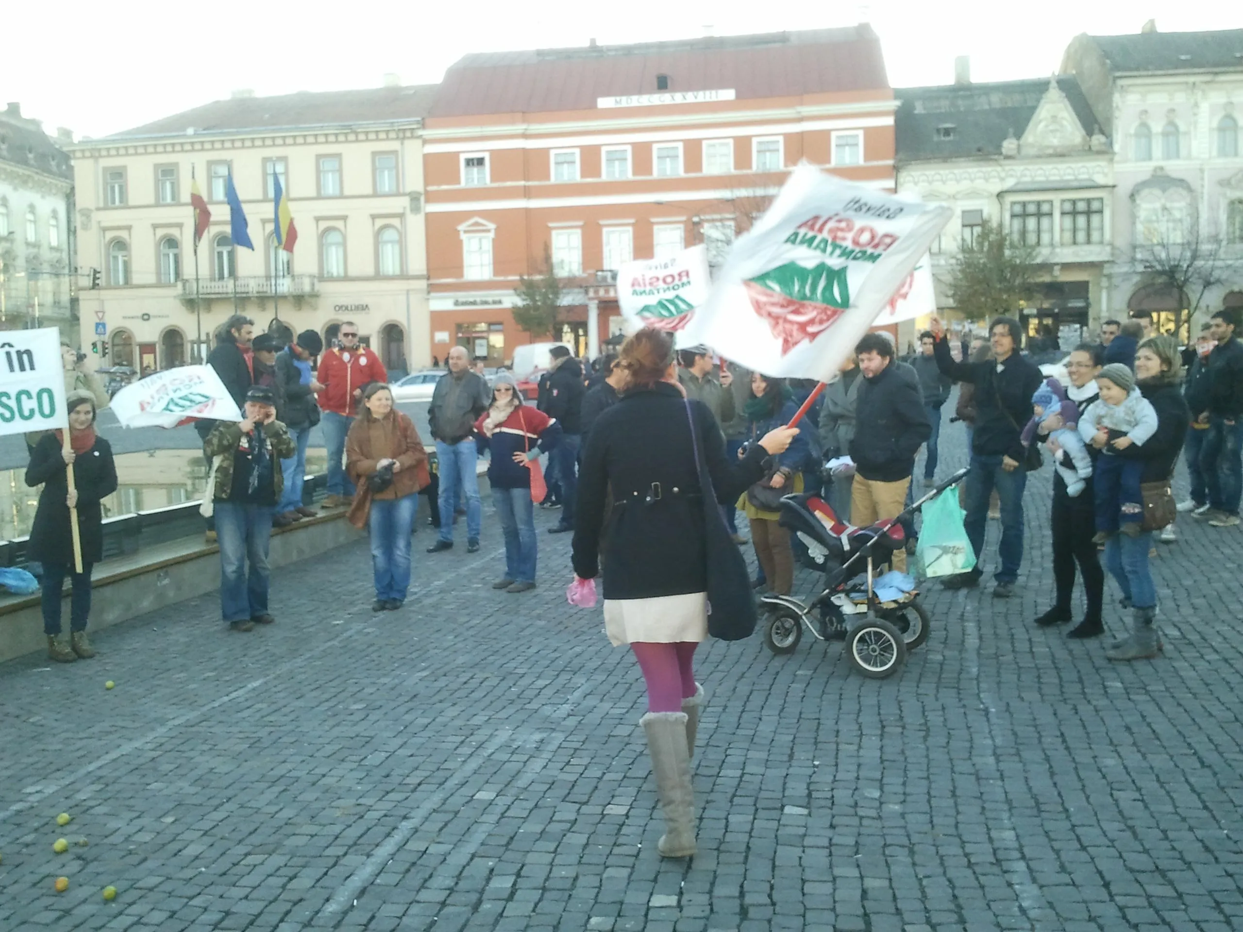 Suporterii echipei Galatasaray Istanbul s-au alăturat protestului făcut, miercuri, de la ora 15.00, în Piața Unirii, de ecologiștii care militează împotriva exploatării de la Roșia Montană.