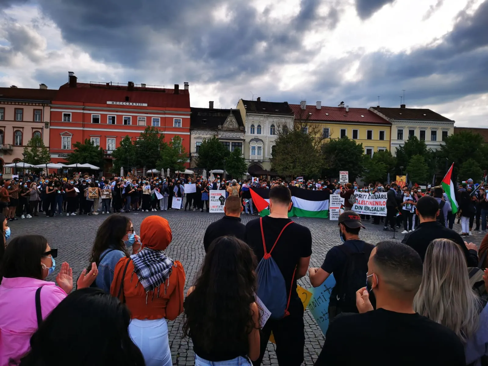 Protest de solidaritate cu Palestina la Cluj! ”Salvați Palestina!” și ”Opriți crimele din Gaza!” - VIDEO