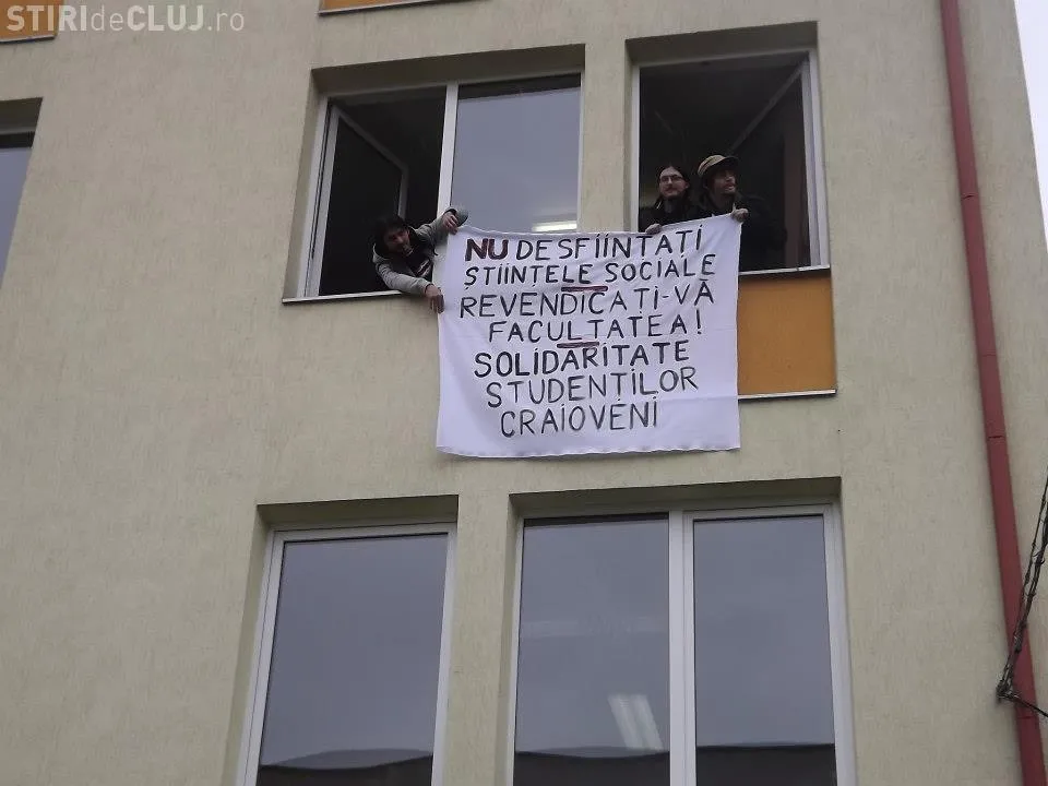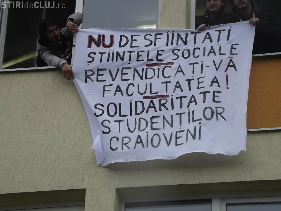 ”Considerăm decizia conducerii Universităţii din Craiova cu privire la desfiinţarea Facultăţii de Ştiinţe Sociale ca fiind una iraţională şi pripită. Faptul că decizia a fost luată în ultimele minute ale şedinţei Senatului (iar studenţii şi cadrele didactice nu doar că nu au fost consultate dar nici anunţate în prealabil) dovedeşte clar dezinteresul conducerii privind formarea academică a tinerilor şi activatea didactică prestată până în momentul actual. Având în vedere stabilitatea economică a Facultăţii dar şi aportul financiar adus Universităţii, suntem de părere că argumentele oficiale sunt nefondate. Problemele prezentate de către conducere pot fi rezolvate şi în alt mod decât prin restructurarea şi mutarea departamentelor în cadrul altor Facultăţi. Ba mai mult, ni se pare absurdă mutarea departamentelor de Sociologie, Filosofie şi Ştiinţe Politice în cadrul Facultăţii de Drept. Această soluţie nu este viabilă viitorului studenţilor. Susţinem poziţia pro-activă de protest a grupului de studenţi şi profesori şi, prin intermediul acestui comunicat, dorim să atragem atenţia studenţilor şi din alte centre universitare cu privire la situaţia prezentată mai sus. Trebuie să subliniem şi faptul că problemele nu sunt izolate, ci sunt prezente la nivel naţional. De la încălcările autonomiei universitare, până la încălcări ale unor legi şi drepturi fundamentale, studenţii din România resimt o largă varietate de piedici în drumul lor în viaţă. Considerăm necesară solidarizarea la nivel naţional, când studenţii şi cadrele didactice îşi vor uni forţele spre a lupta împotriva nedreptăţilor resimţite în fiecare zi. Studenţi din România, uniţi-vă!”, au scris studenții clujeni pe Facebook.