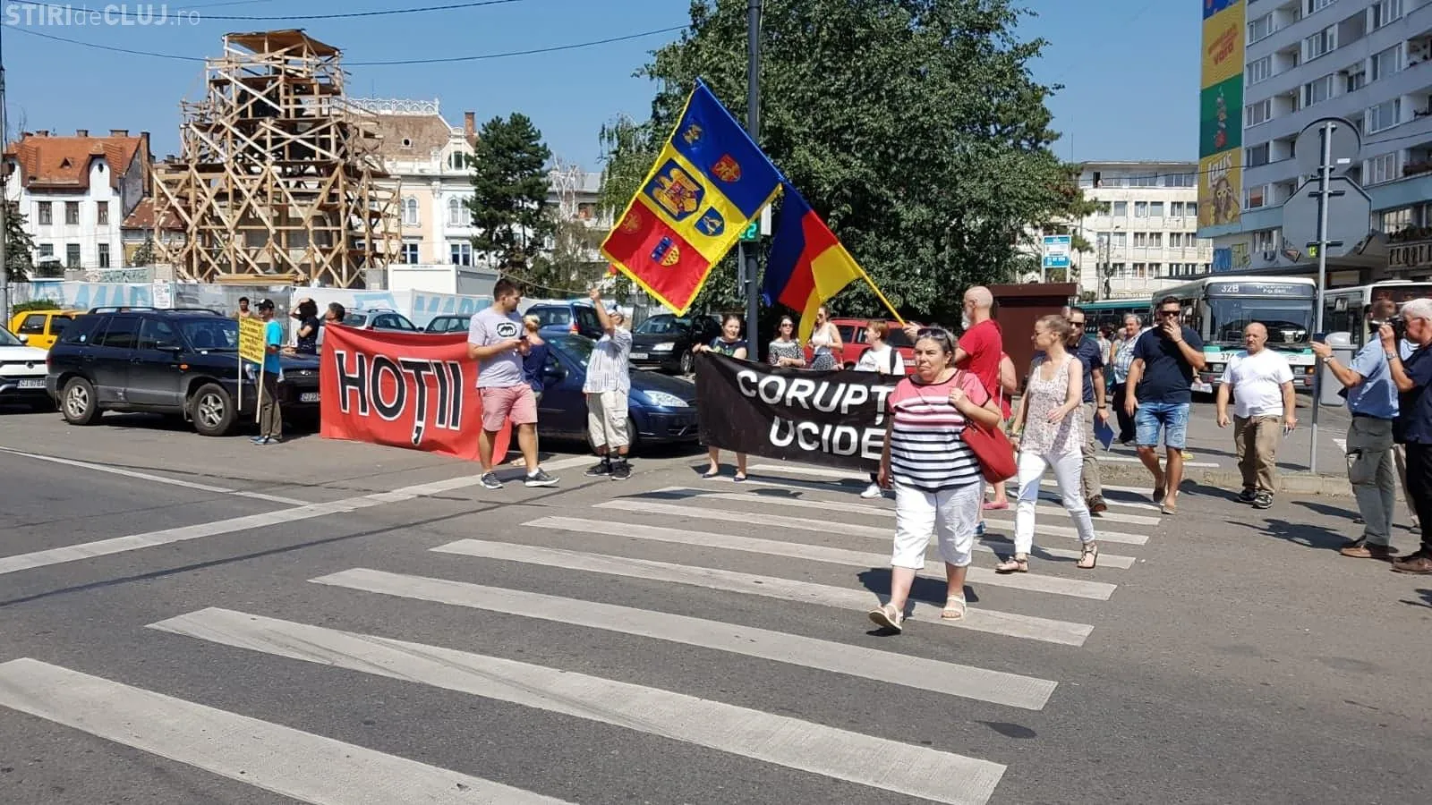 Manifestanții s-au strâns în Piața Mihai Viteazu, pentru a nu perturba ceremonia funerară a taragotistului Dumitru Fărcaș, ce are loc în zona Pieței Unirii.
