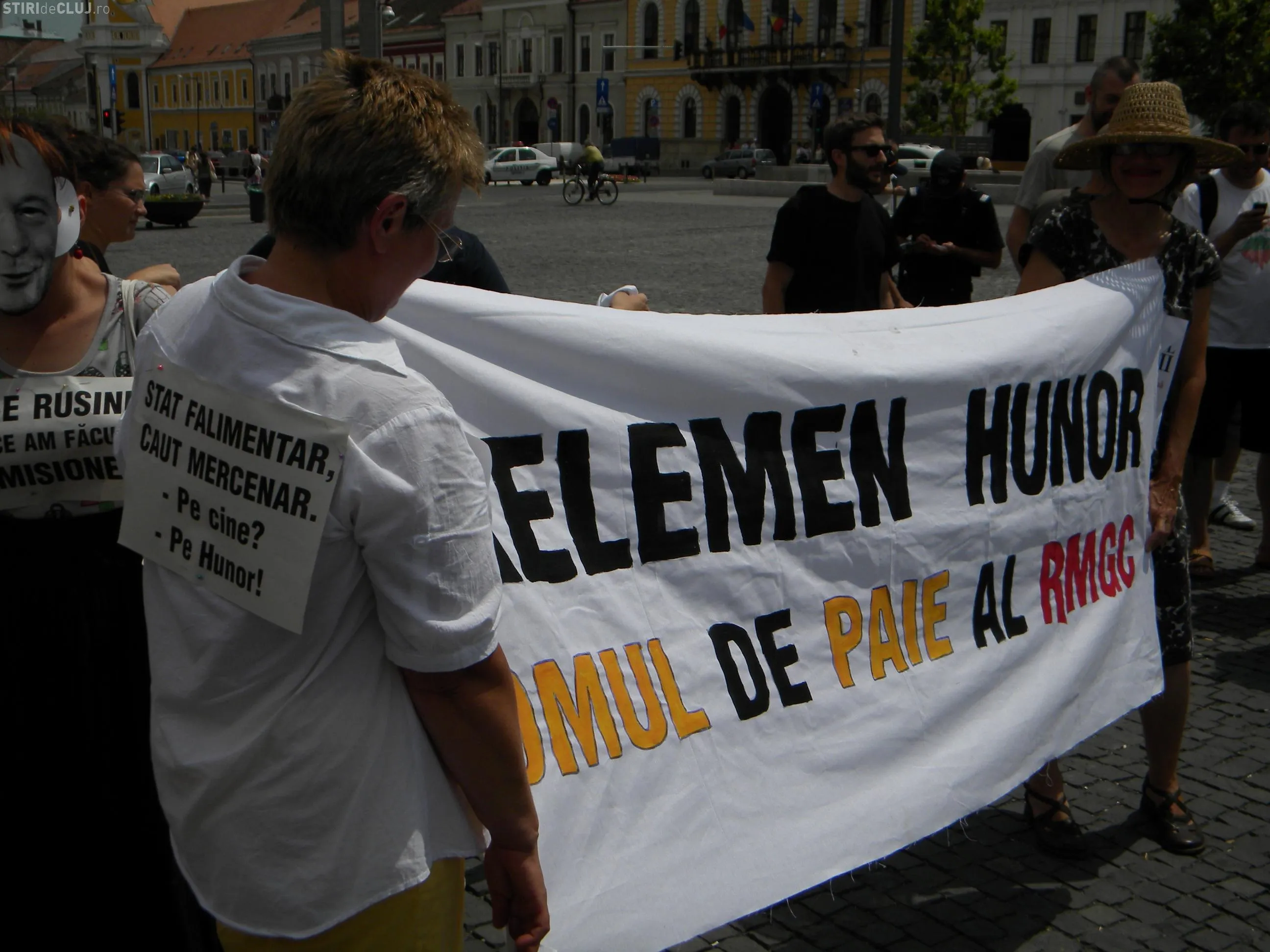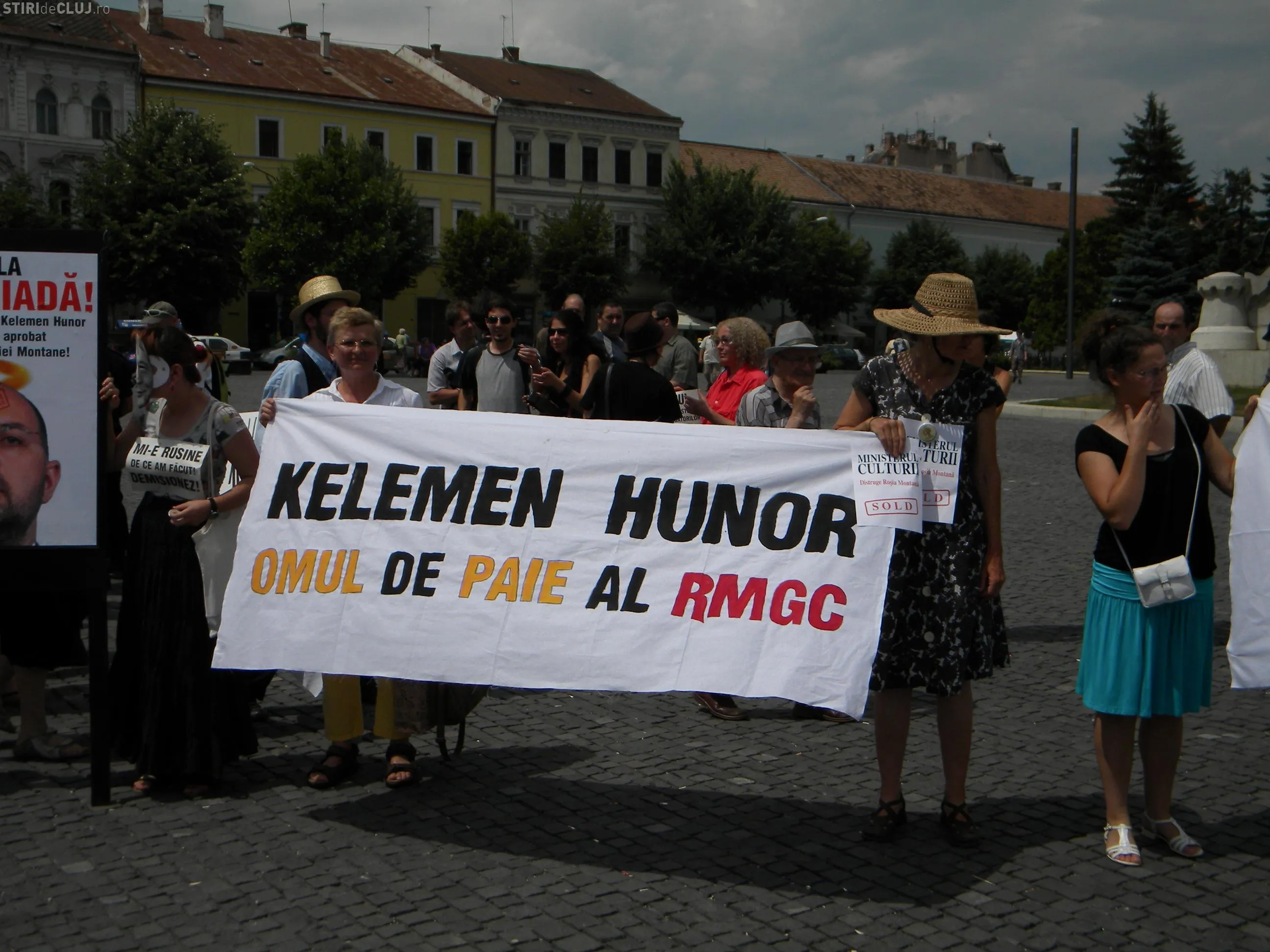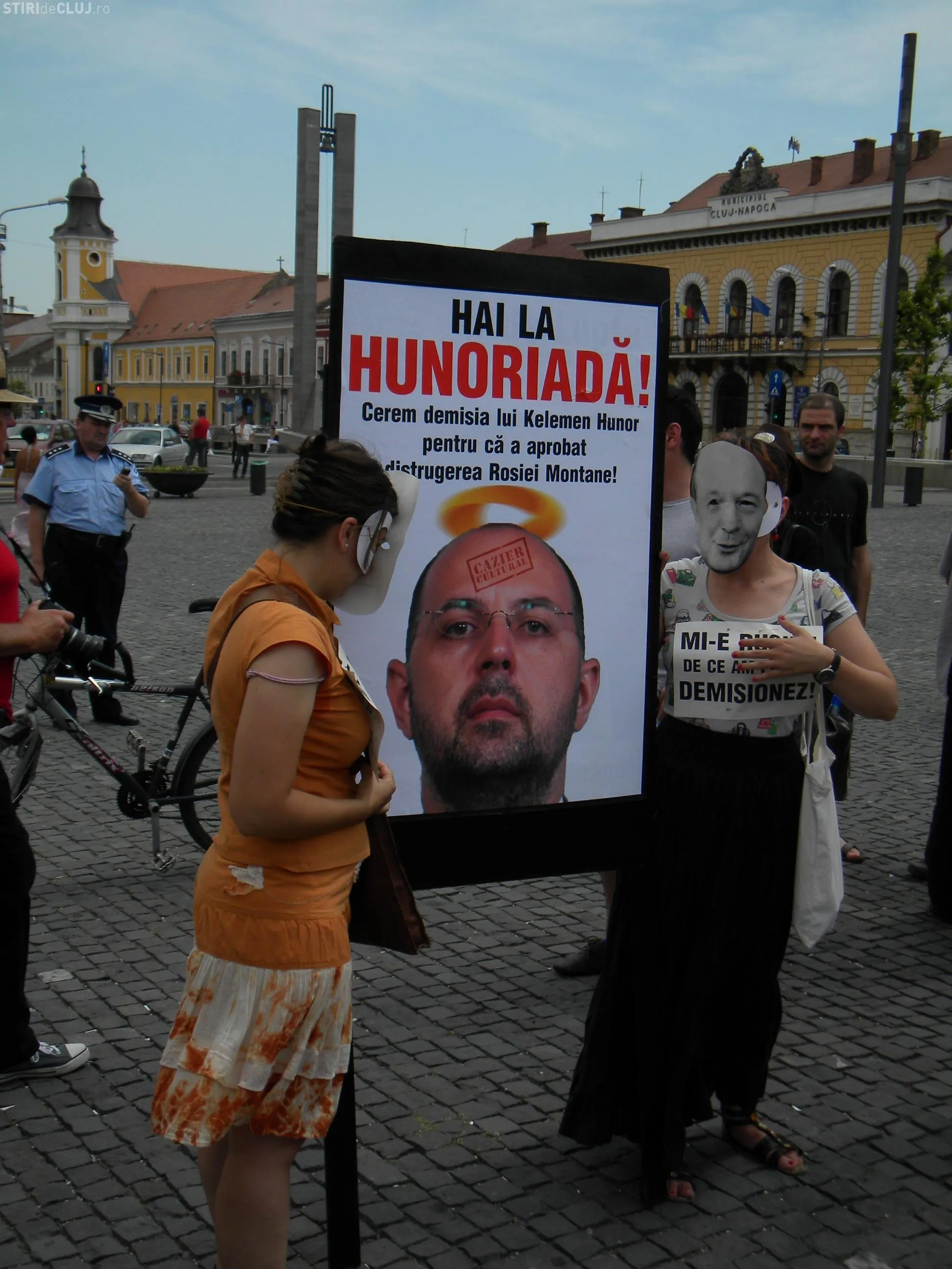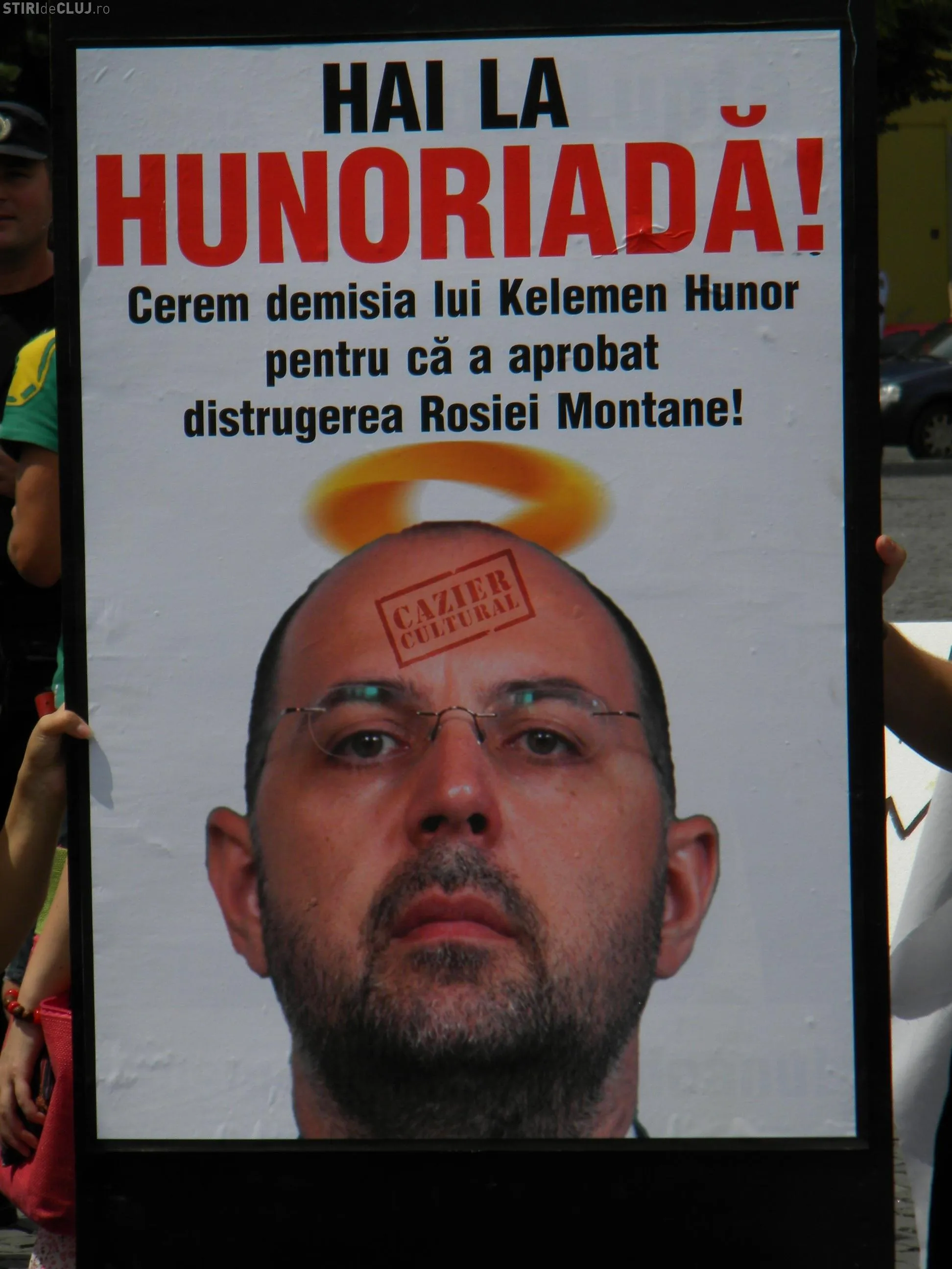 Manifestarea a inceput de la ora 13.00 si a durat circa 20 de minute. Protestatarii au adus si bannere pe care au scris: "Kelemen Hunor, omul de paie al RMGC", "Coalitia de guvernare: PDL + UDMR = LOVE". Nu a lipsit nici un panou cu poza ministrului Culturii, Kelemen Hunor, pe care au scris "Hai la Hunoriada! Cerem demisia lui Kelemen Hunor pentru ca a aprobat distrugerea Rosiei Montane!".
