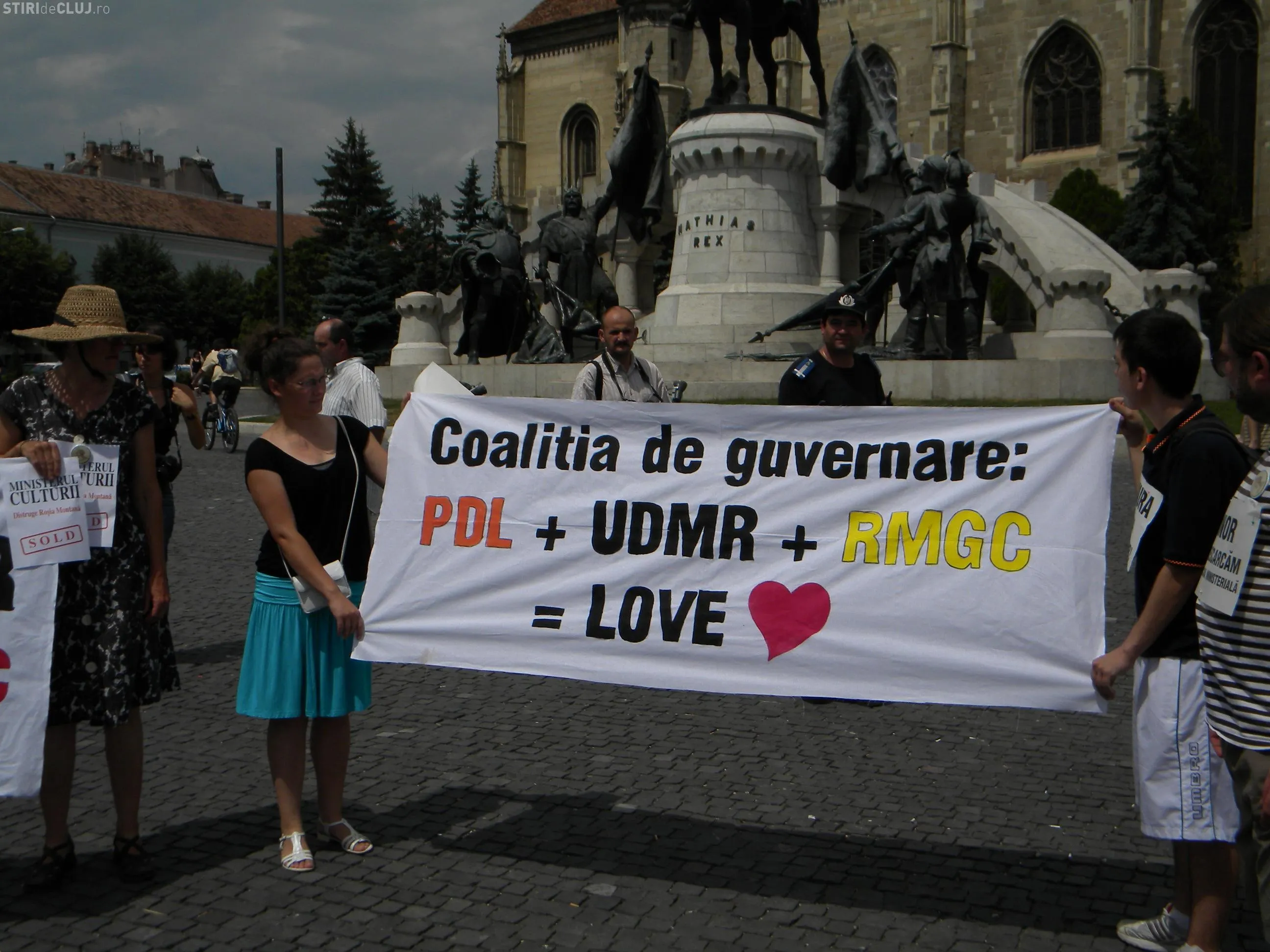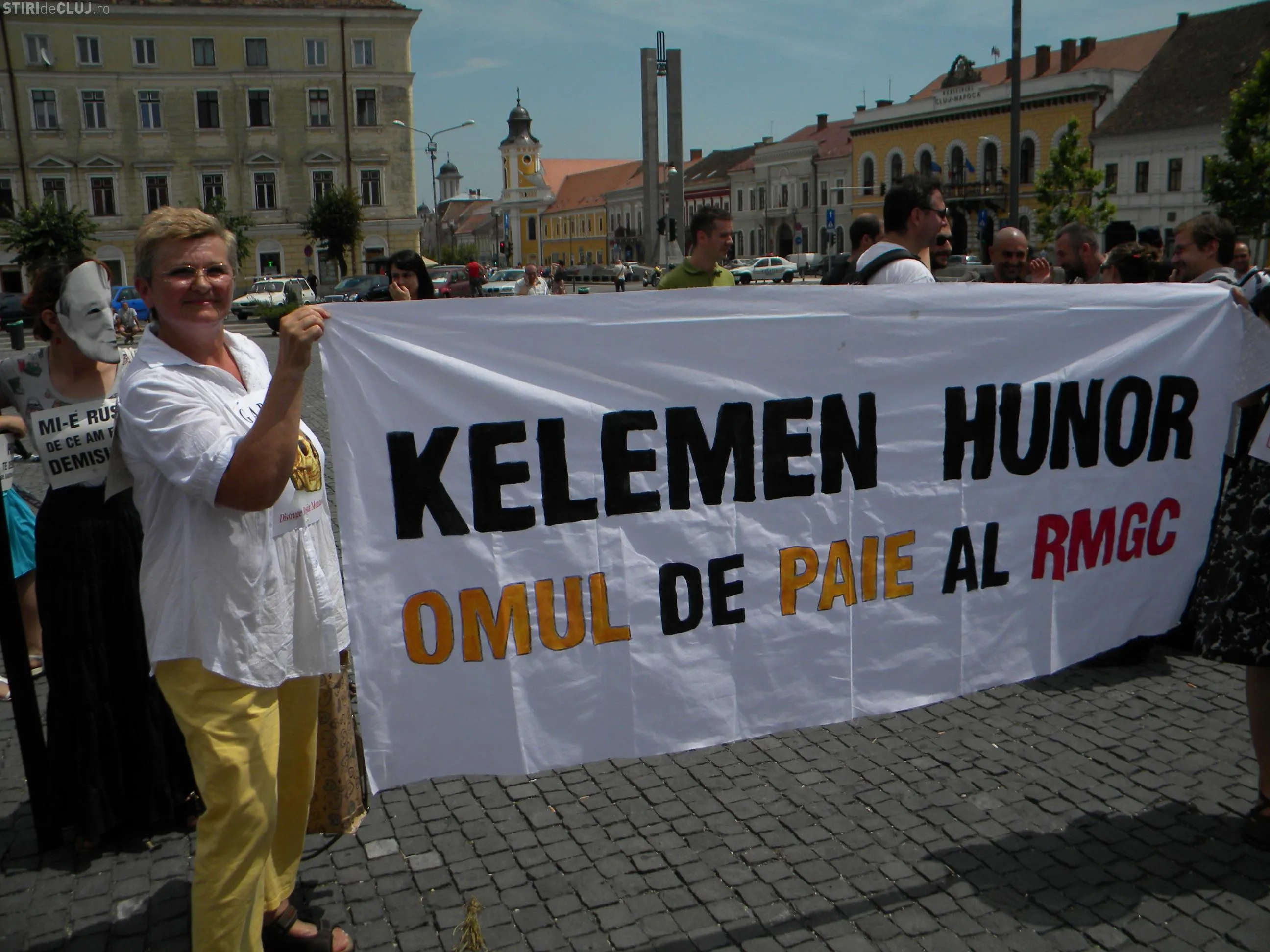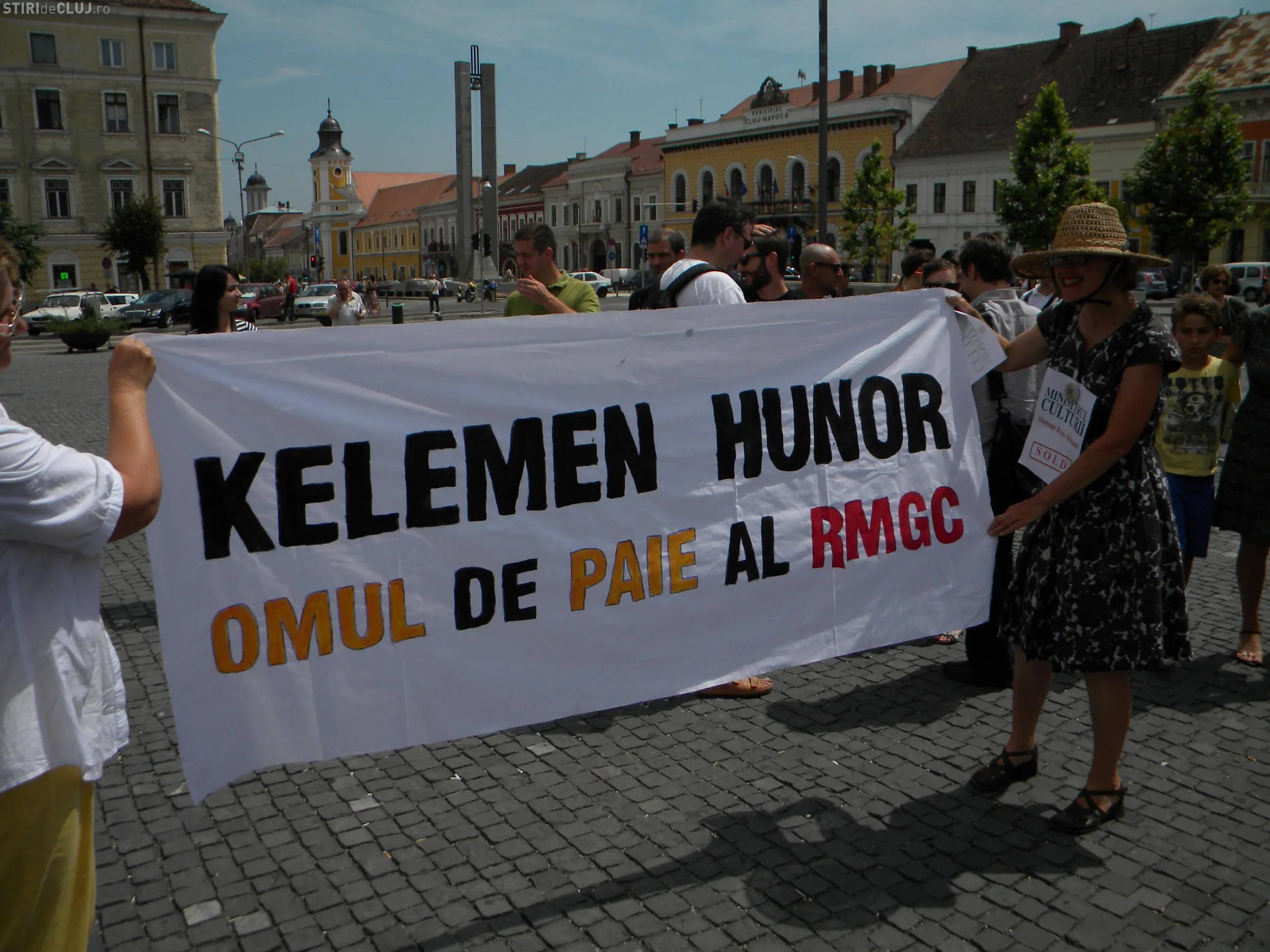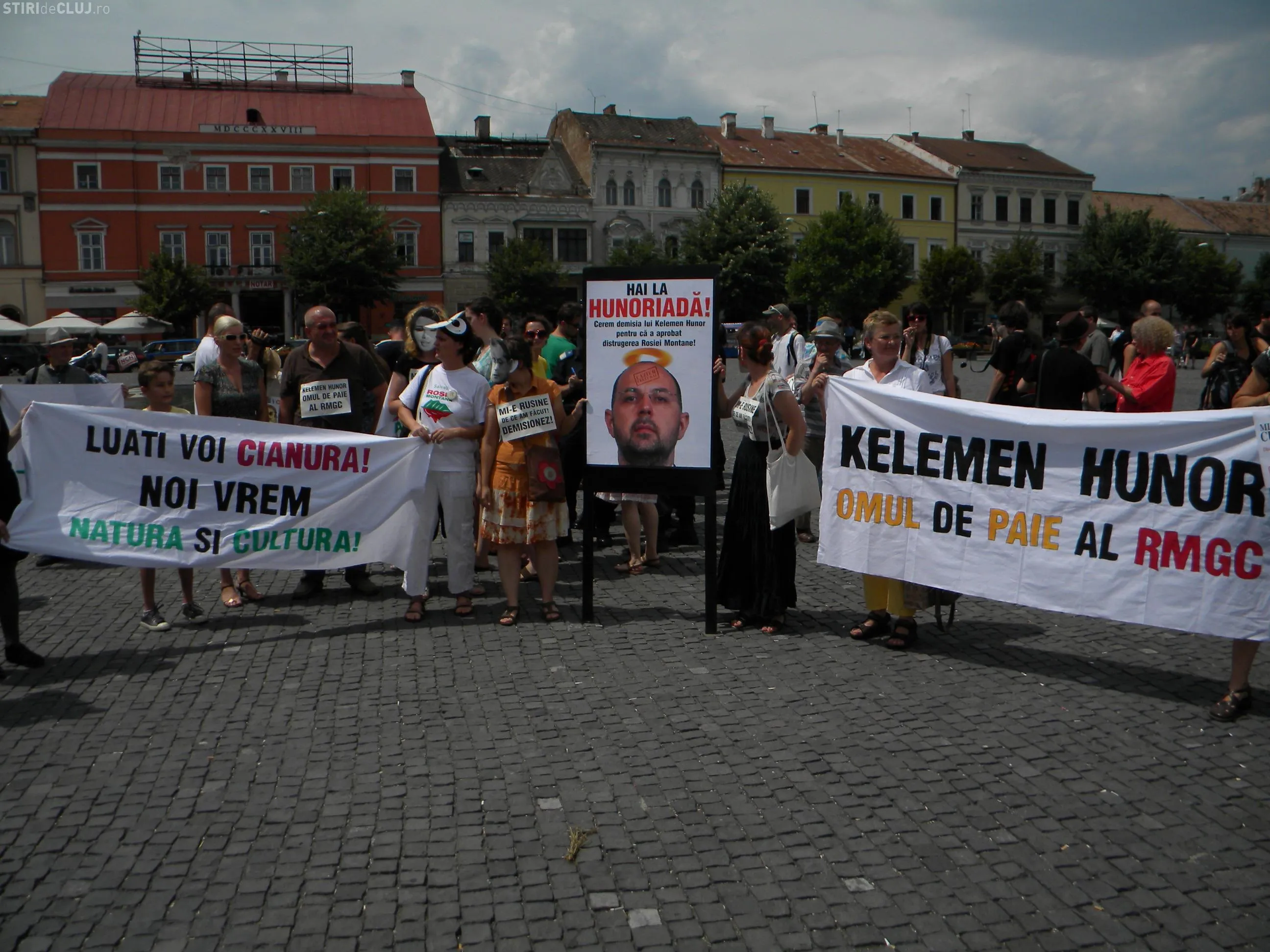 Manifestarea a inceput de la ora 13.00 si a durat circa 20 de minute. Protestatarii au adus si bannere pe care au scris: "Kelemen Hunor, omul de paie al RMGC", "Coalitia de guvernare: PDL + UDMR = LOVE". Nu a lipsit nici un panou cu poza ministrului Culturii, Kelemen Hunor, pe care au scris "Hai la Hunoriada! Cerem demisia lui Kelemen Hunor pentru ca a aprobat distrugerea Rosiei Montane!".