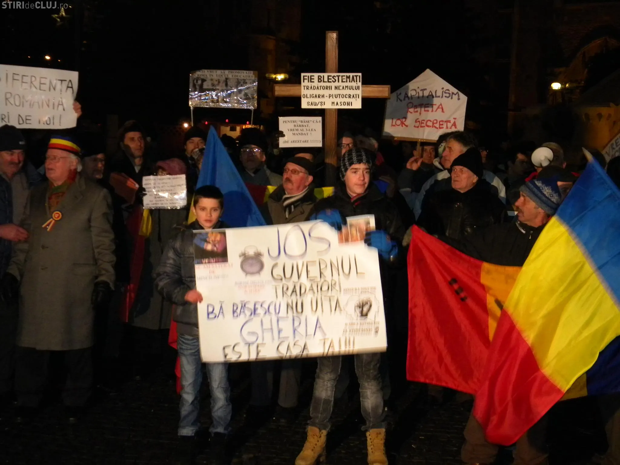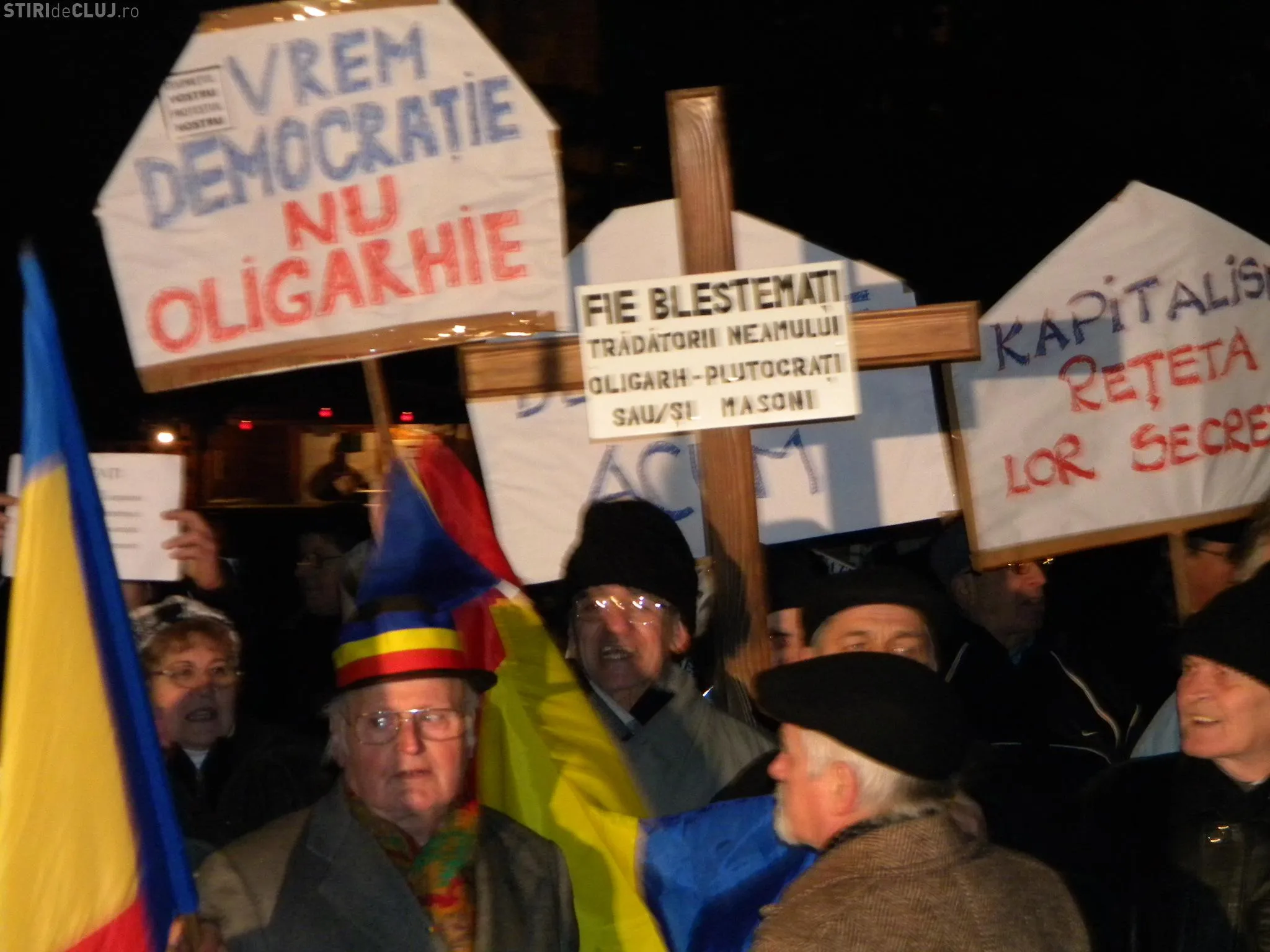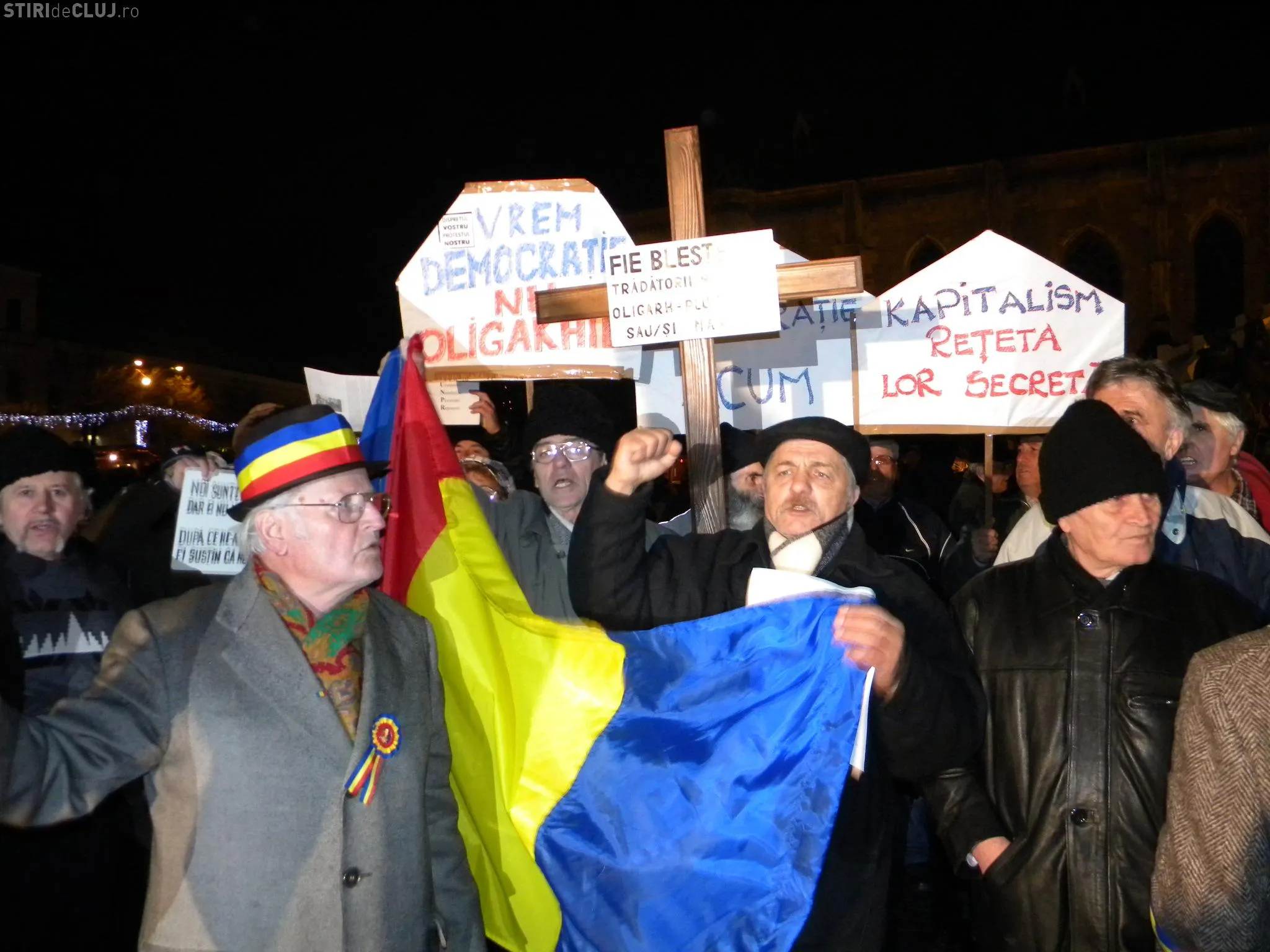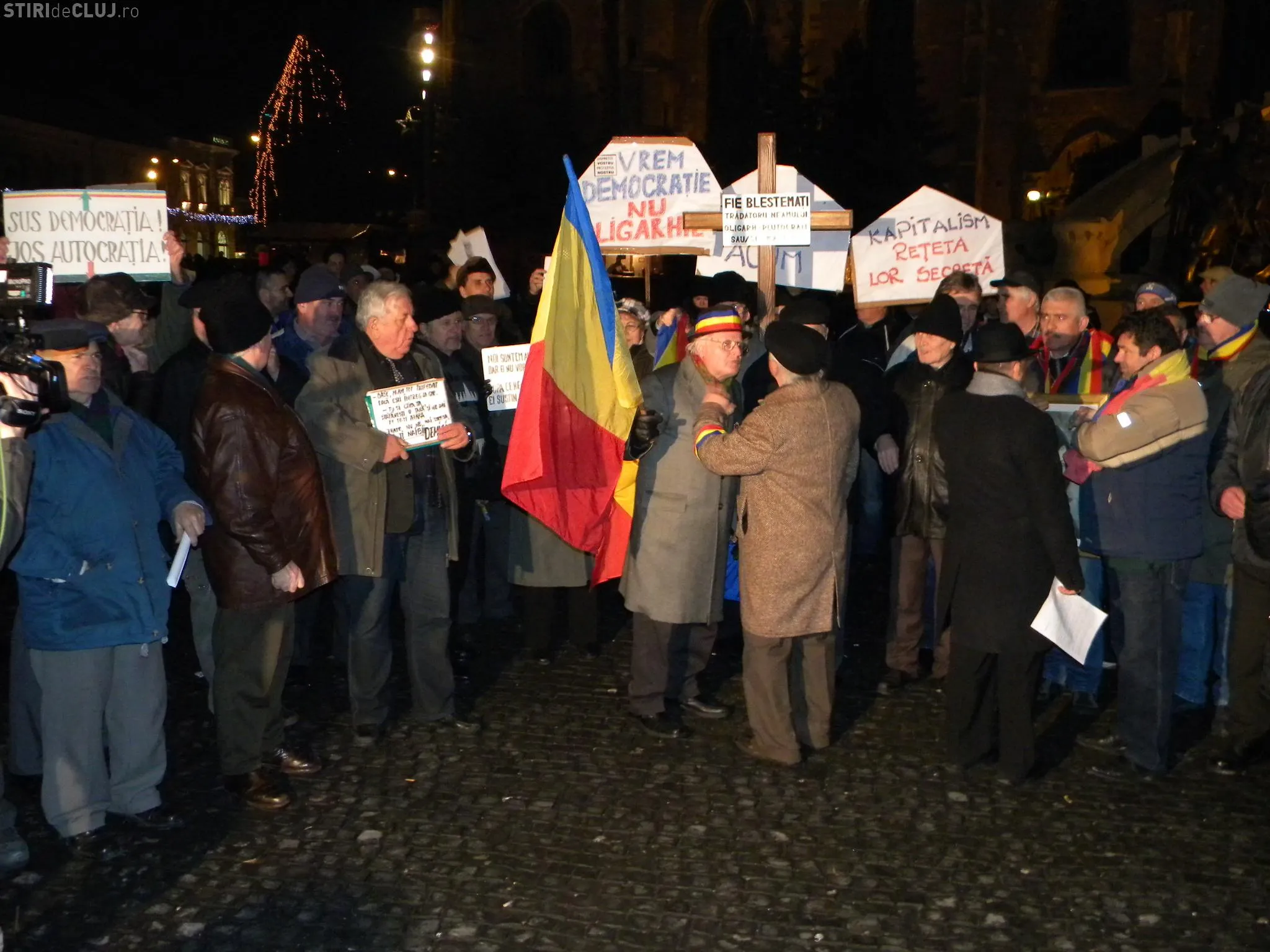 Circa 100 de clujeni s-au adunat de la ora 17.00 in Piata Unirii si protesteaza fata de presedintele Traian Basescu si Guvern.