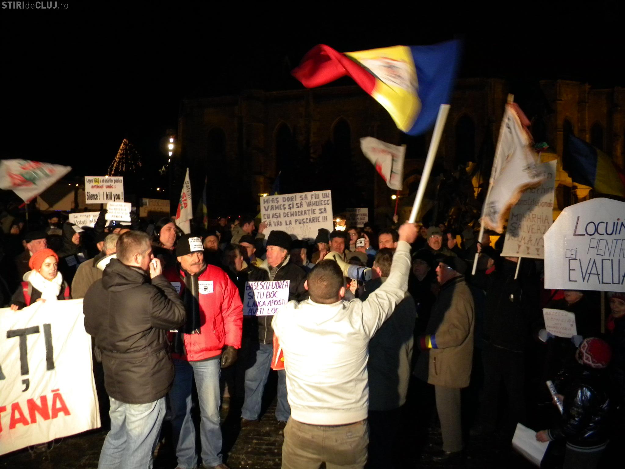 Circa 300 de persoane protesteaza in Piata Unirii, din Cluj-Napoca, si cer demisia presedintelui Traian Basescu.