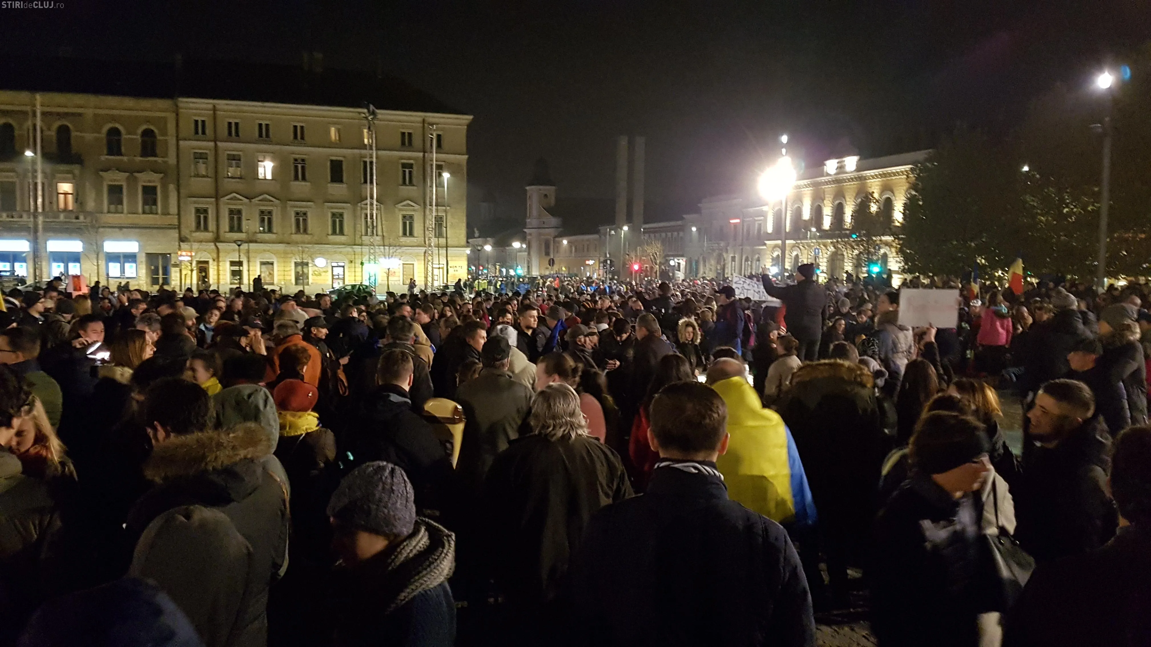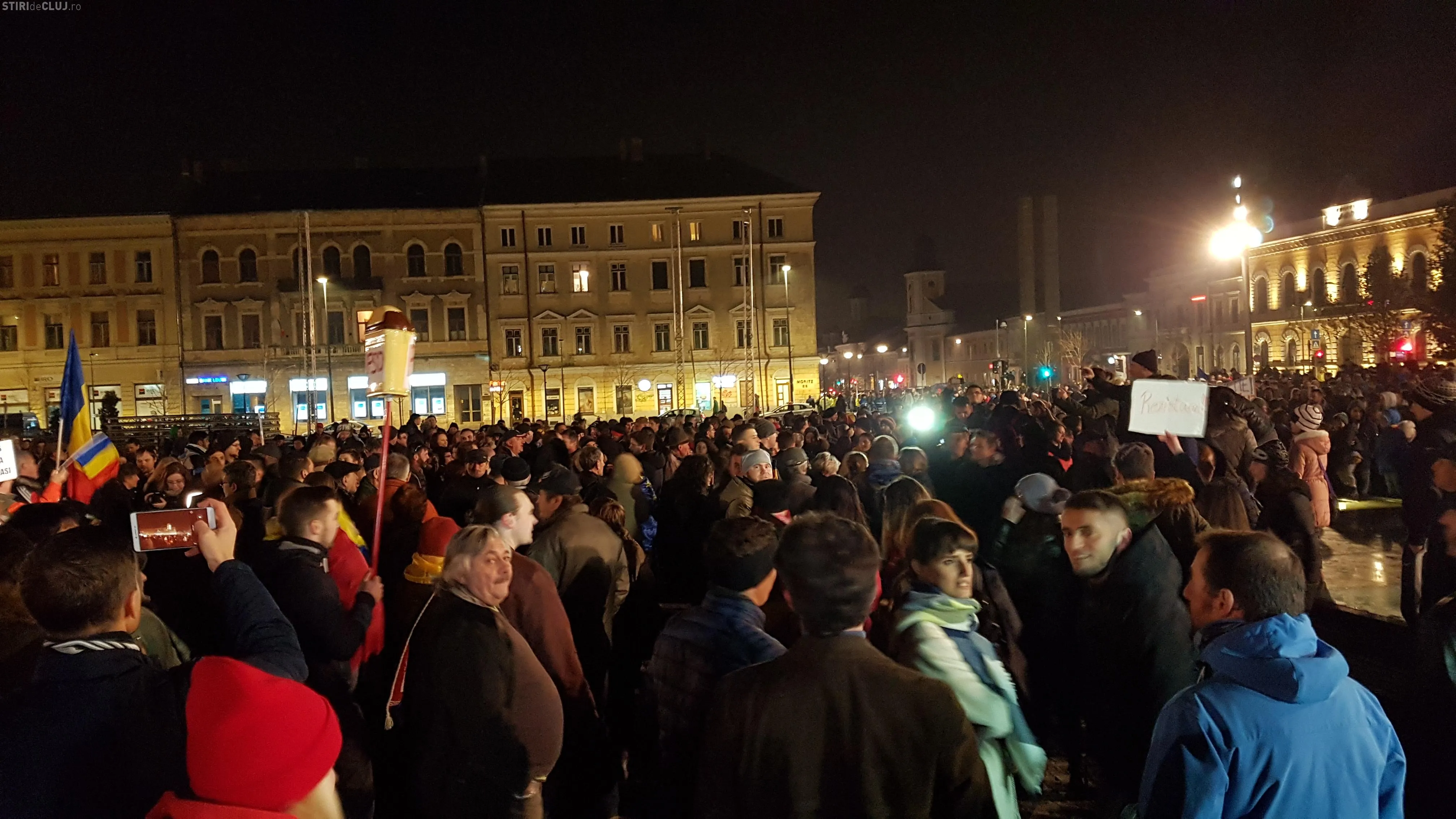 Peste 5.000 de clujeni au ieșit în stradă duminică după-amiaza, pentru a protesta față de ”înrobirea” justiției de către actuala alianță de guvernare, PSD + ALDE.