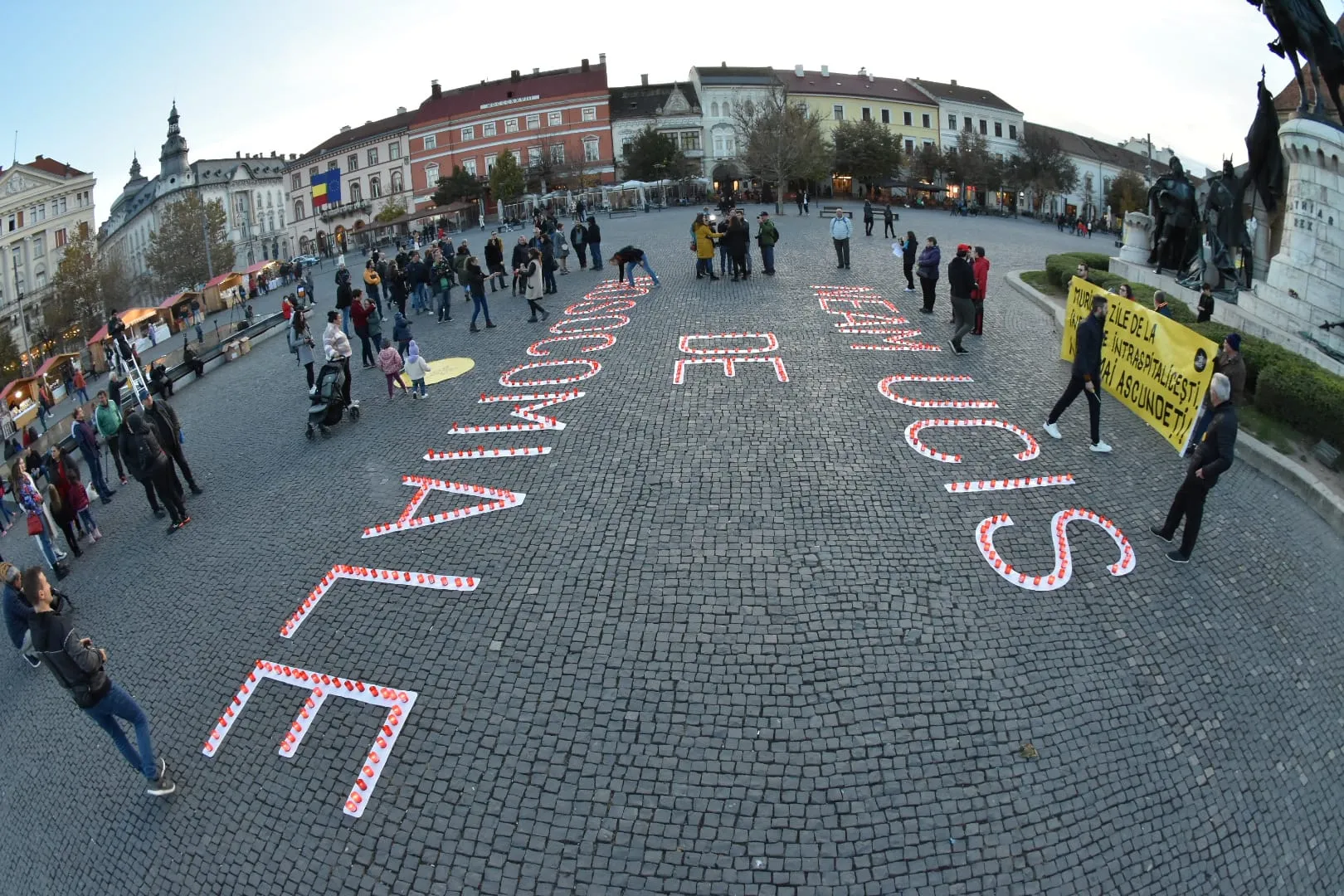 Clujenii s-au adunat in Piata Unirii, vineri seara, pentru a protesta fata de decesele celor patru copii de la Cluj, in urma infecțiilor nosocomiale.