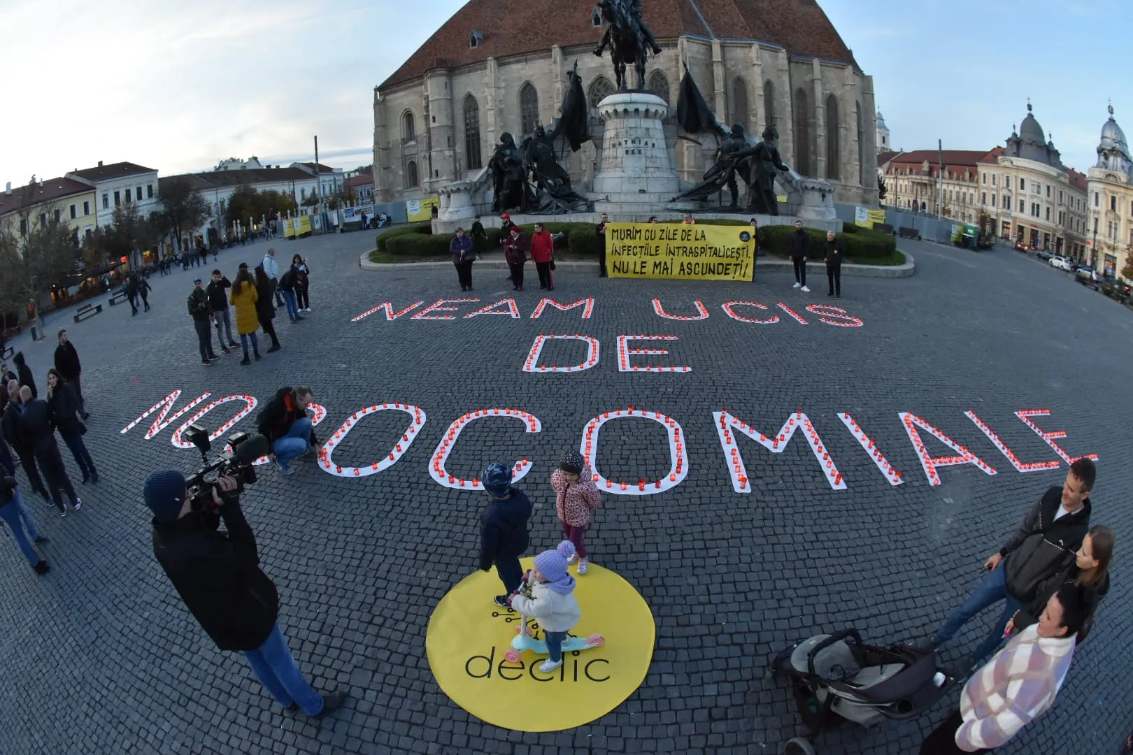 „Cerem Ministerului Sănătății să demareze urgent o ANCHETĂ la maternitatea din Cluj-Napoca, unde 8 bebeluși au murit în ultimul an din cauza infecțiilor nosocomiale. Este nevoie de recoltare de probe (studiu de prevalență de moment), pentru a determina exact situația infectărilor cu bacterii ucigașe, în spitale. La ora 17:30 ne întâlnim în Piața Unirii. Vom aprinde lumânări în memoria bebelușilor care au murit din cauza infecțiilor nosocomiale la maternitatea din Cluj. Vom rămâne acolo până după ce apune soarele”, spun cei de la Declic.