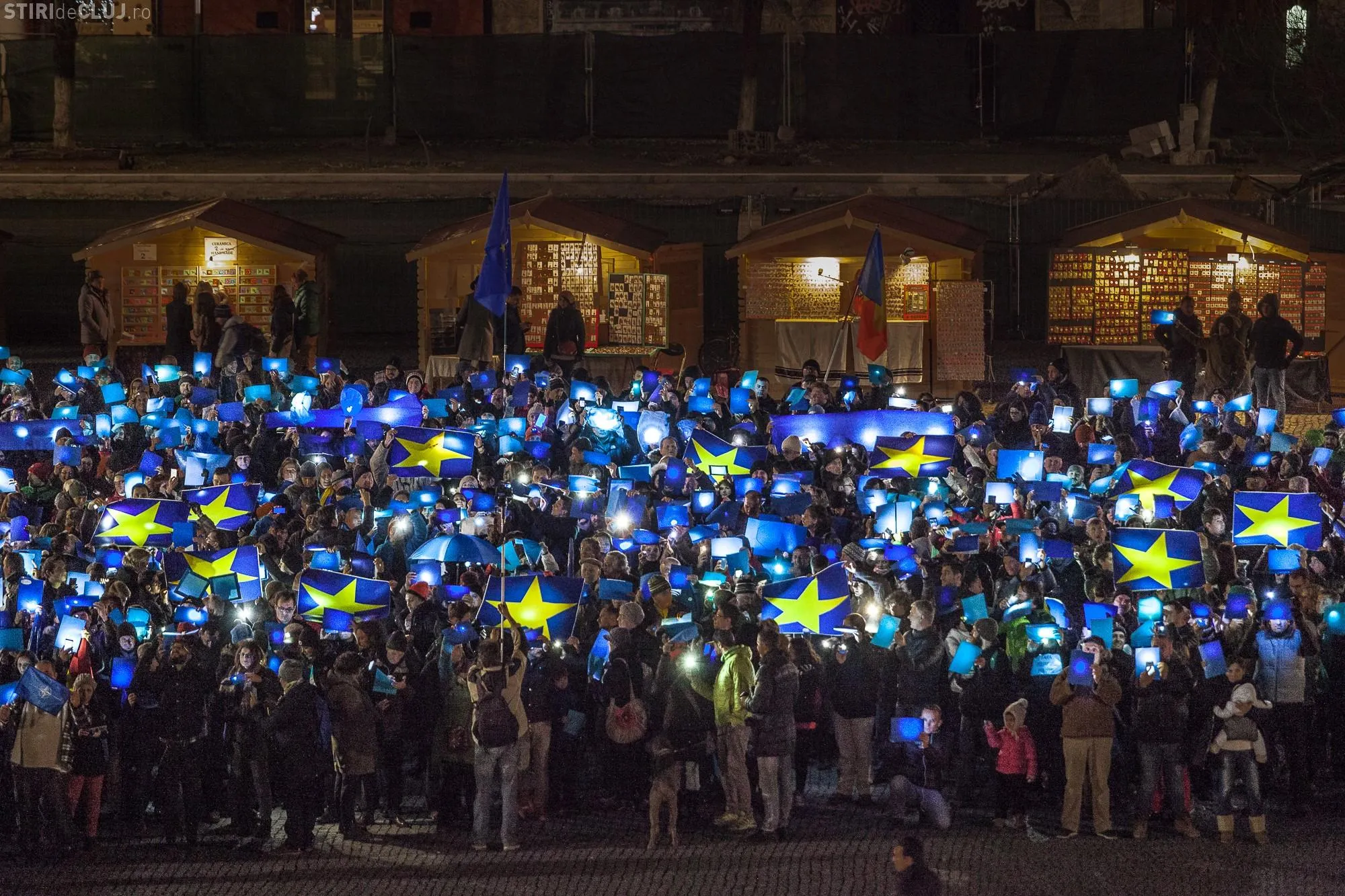 Protest la Cluj! Steagul UE desenat de clujeni în Piața Unirii - FOTO/VIDEO