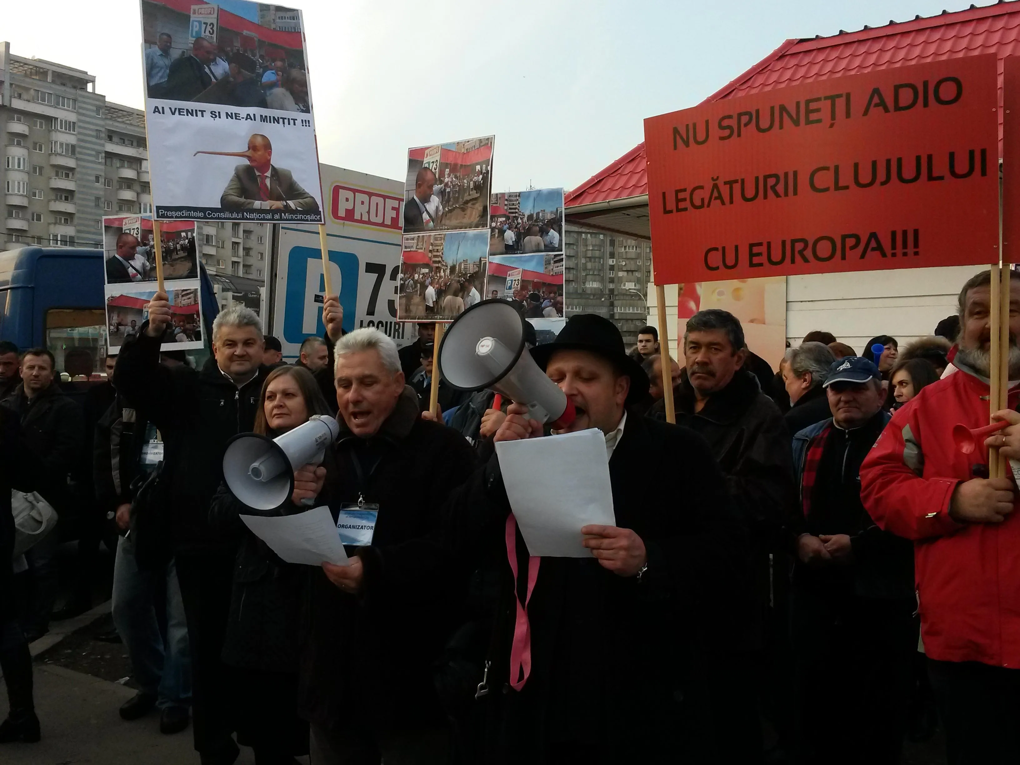 Angajații de la Aeroportul Cluj au cerut bani pentru investiții, spunând că de câțiva ani nu s-a mai alocat niciun ban pentru al doilea aeroport al României, cel de la Cluj-Napoca. Protestatarii l-au ironizat pe președintele CJ Cluj, Mihai Seplecan, care în 2014 protesta alături de ei și cerea rezolvarea proiectului de intermodal, pentru care Clujul putea obține 80 de milioane de euro din fonduri europene. Acel proiect a fost ”îngropat” de lipsa de reacție a celor de la CJ Cluj.