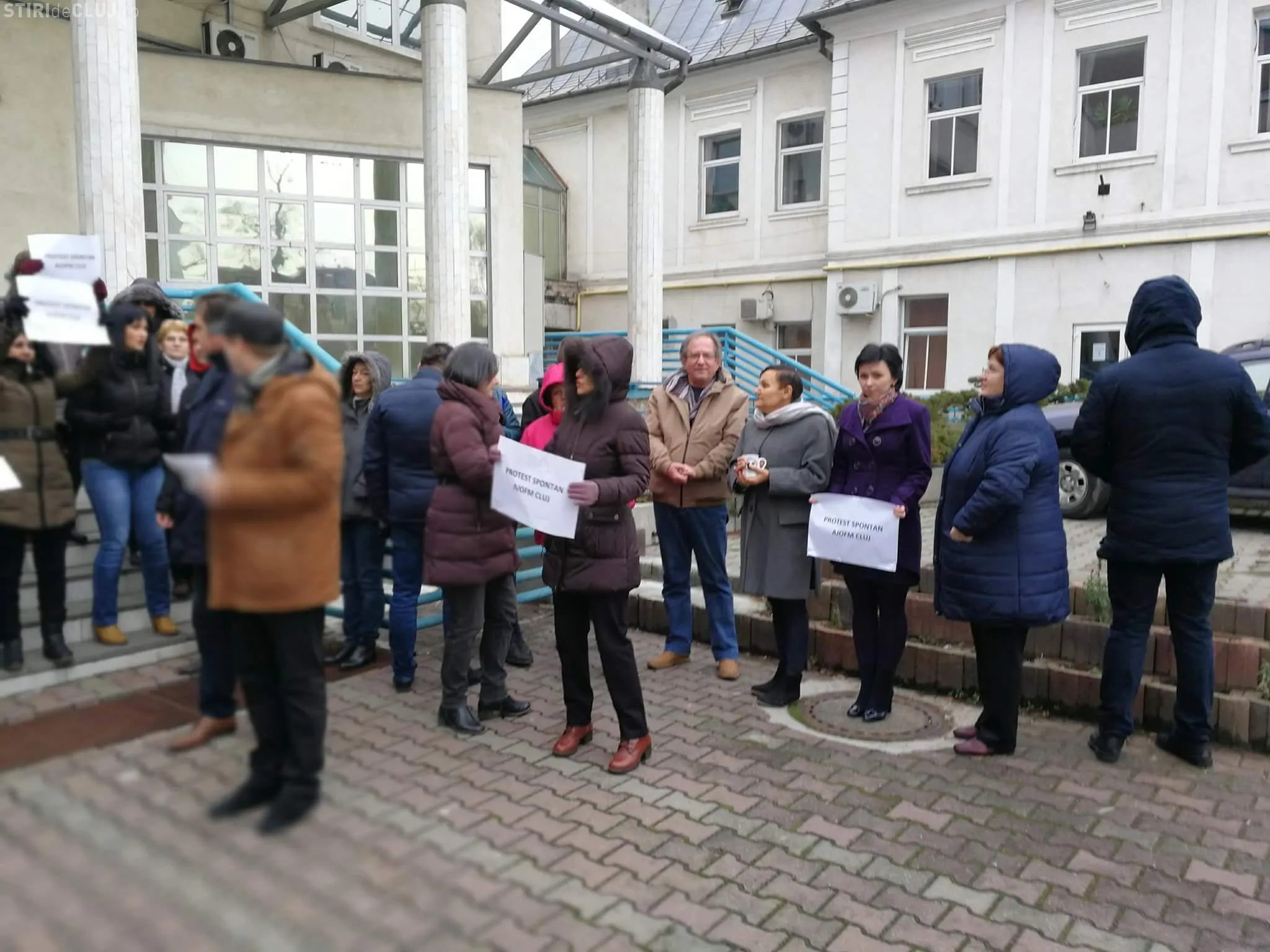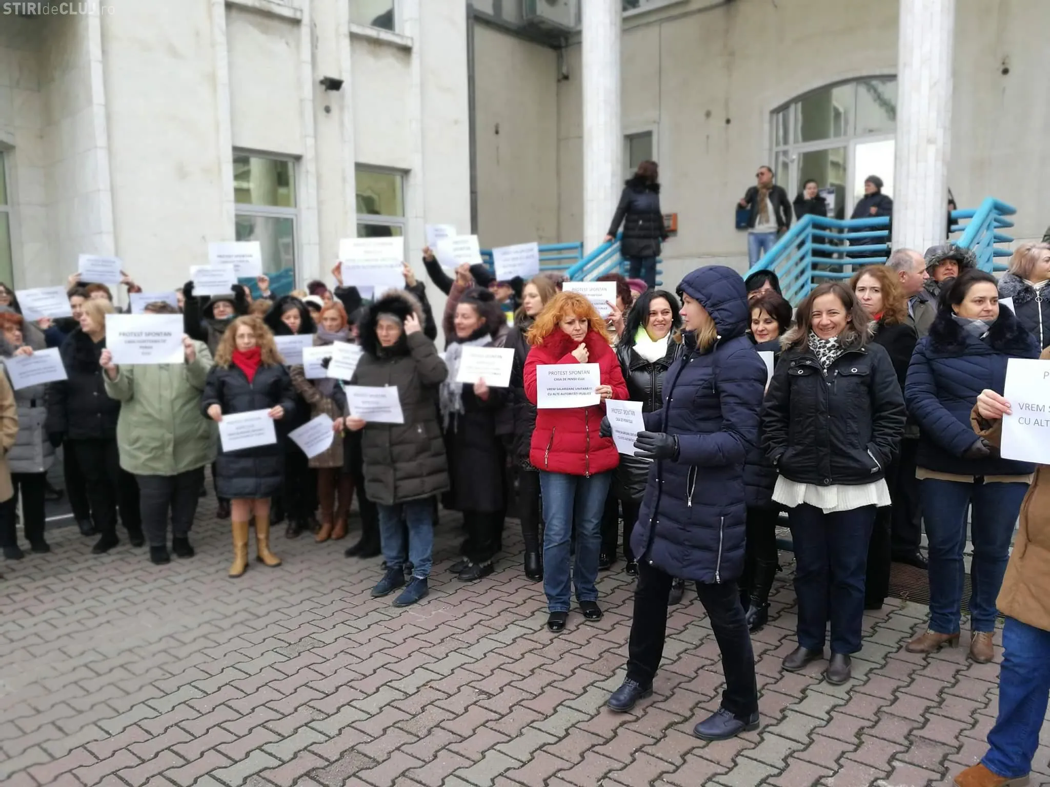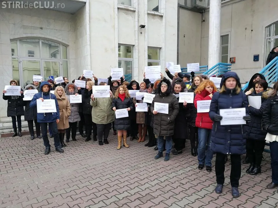 Angajații de la ITM Cluj, AJOFM și Casa de Pensii au ieșit în fața instituției și protestează.