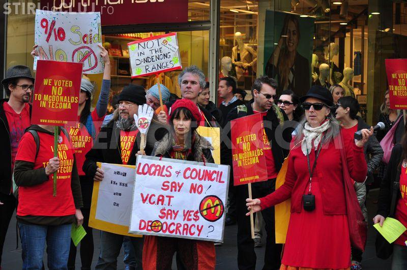 Un grup de 70 de manifestanţi, din diverse ţări, s-a adunat miercuri în faţa unui restaurant McDonald's din Manhattan pentru a face anunțul.