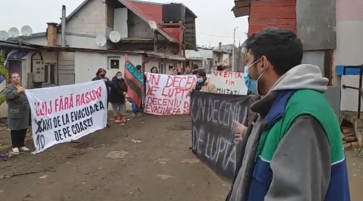 La zece ani de la evacuarea de evacuarea forțată a sute de romi la Pata Rât, de pe strada Coastei, din Mărăști, unde mulți locuiau fără acte și în colibe, a fost organizat un protest.