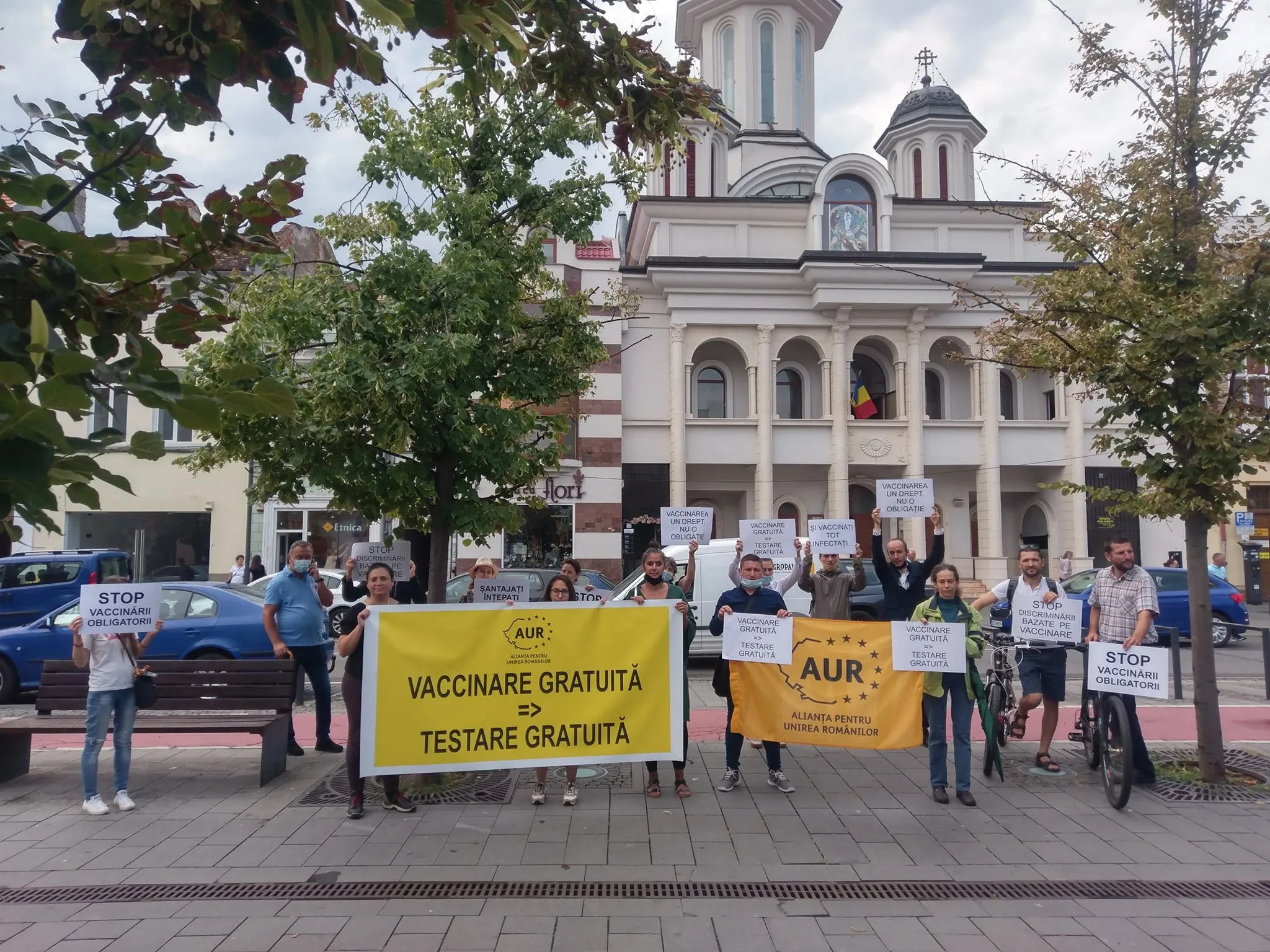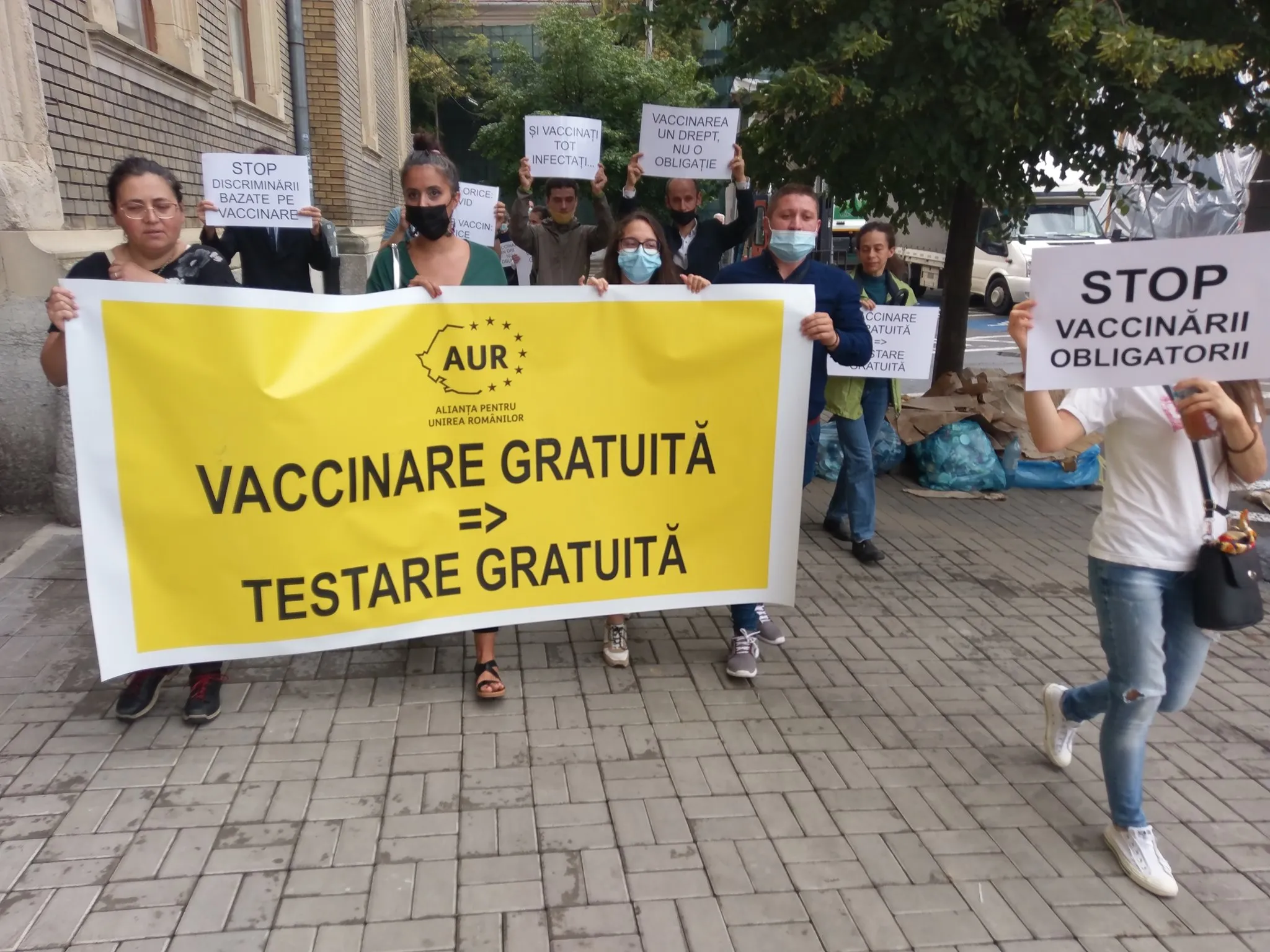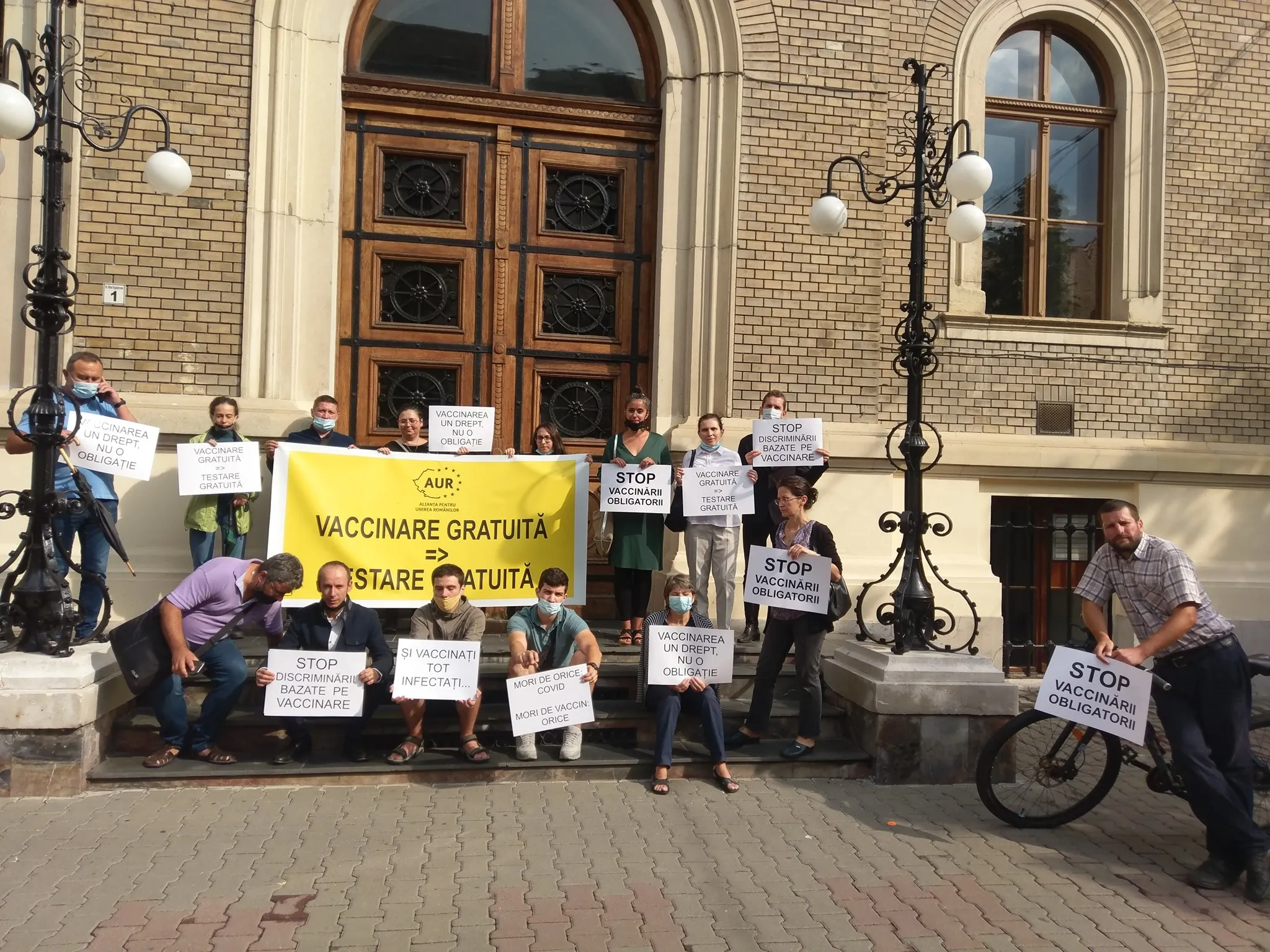 AUR (Alianţa pentru Unirea Românilor Cluj) organizat un protest în fața UBB Cluj, pe tema vaccinării obligatorii.