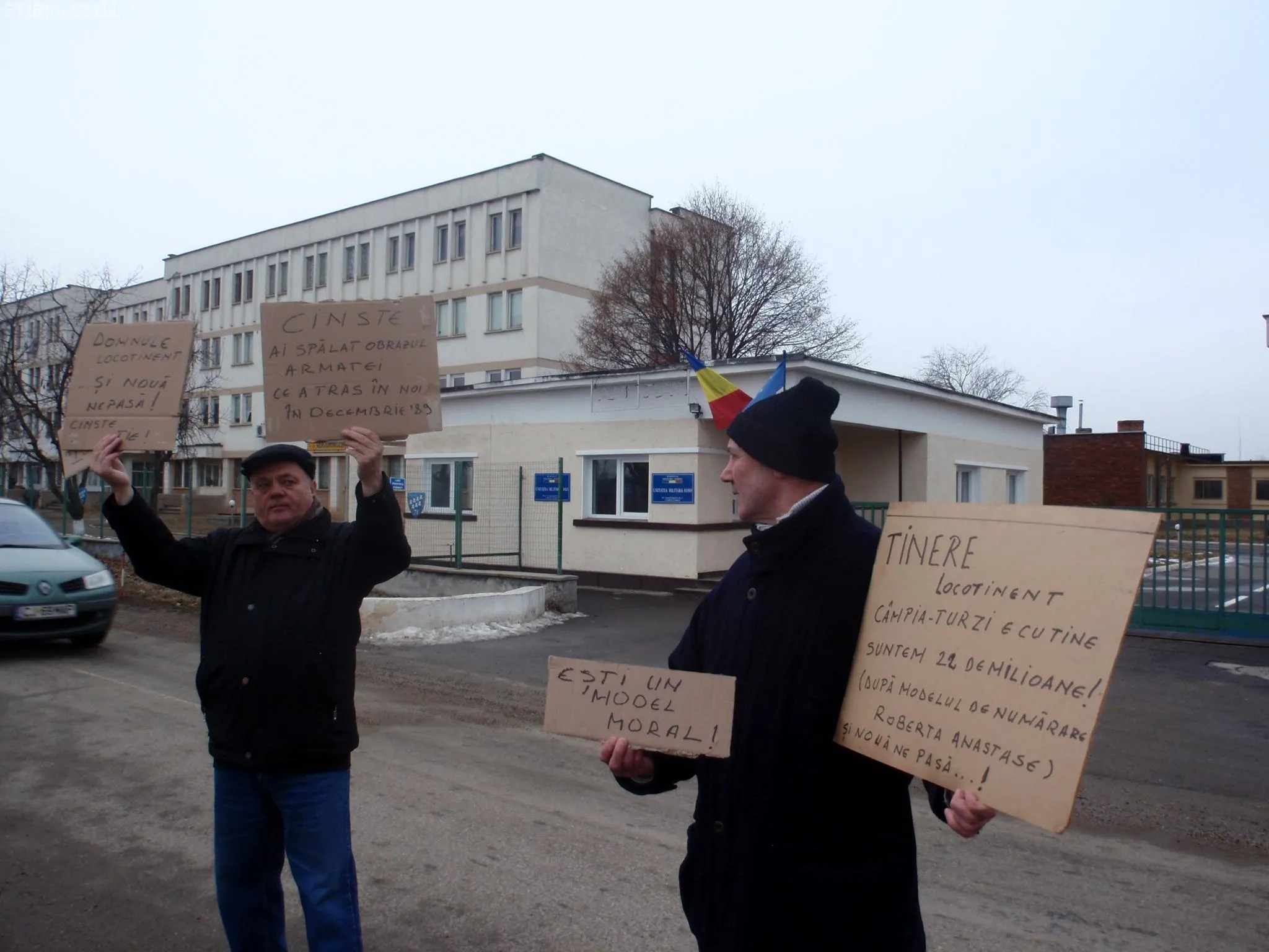 Doua persoane au protestat intre orele 15.00 si 16.00 in fata unitatii militare de la Luna, Campia Turzii. Manifestatia a fost una de sustinere a ofiterului Alexandru Gheorghe.