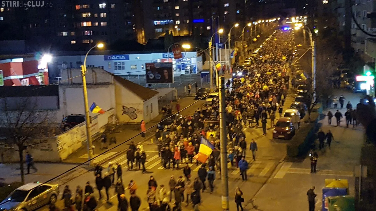 La Cluj, aproximativ 15.000 de persoane s-au prezentat la protest. Manifestanții au pornit în marș, de pe Bulevardul Eroilor, până la Iulius Mall, urmând să revină înapoi în centru, pe Bulevardul Nicolae Titulescu.