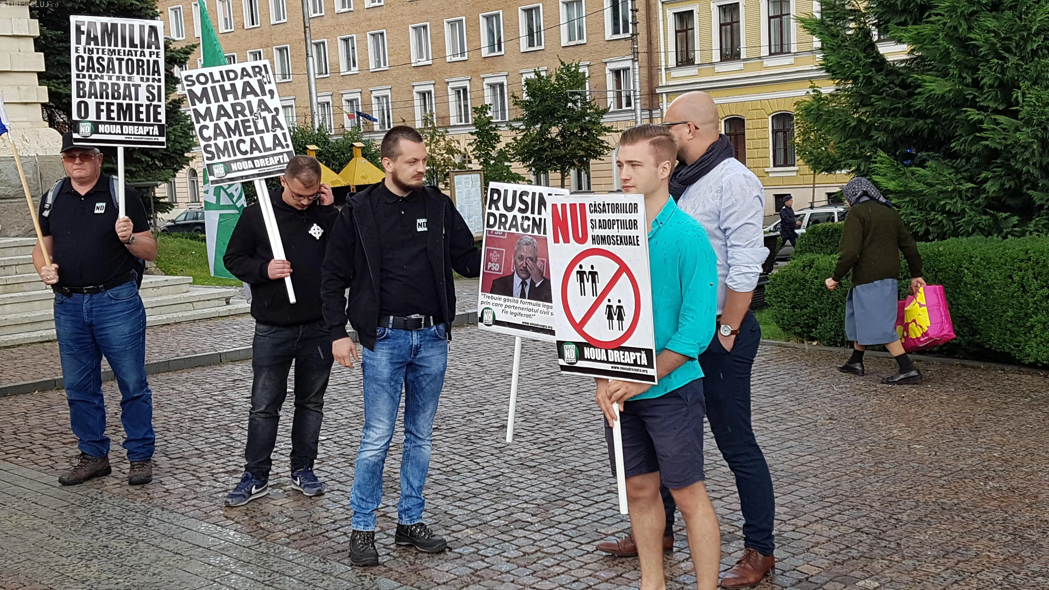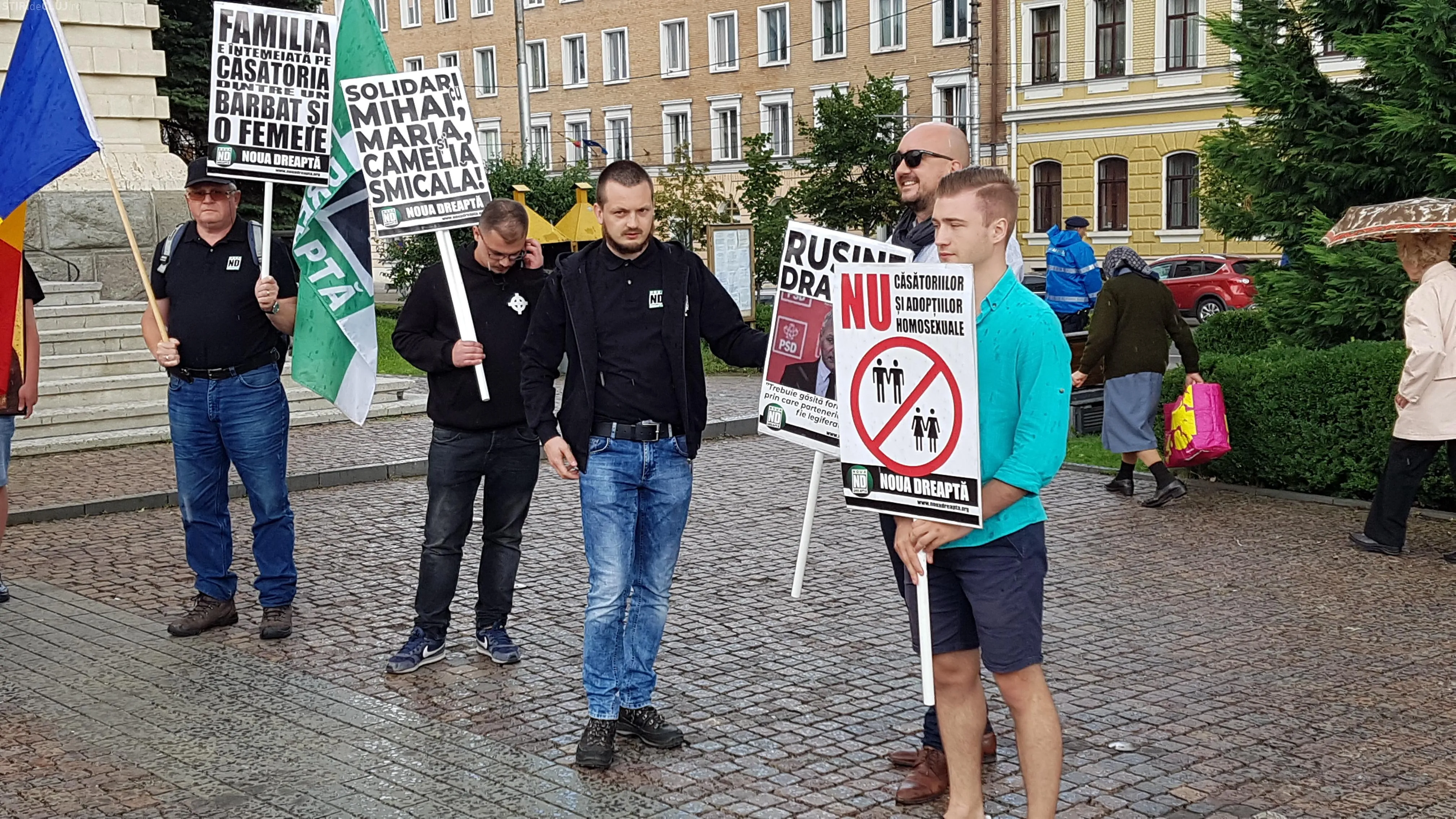 Un grup de aproximativ 50 de membri și simpatizanți ai grupării Noua Dreaptă au organizat, sâmbătă, o manifestație pentru susținerea ”familiei tradiționale”.