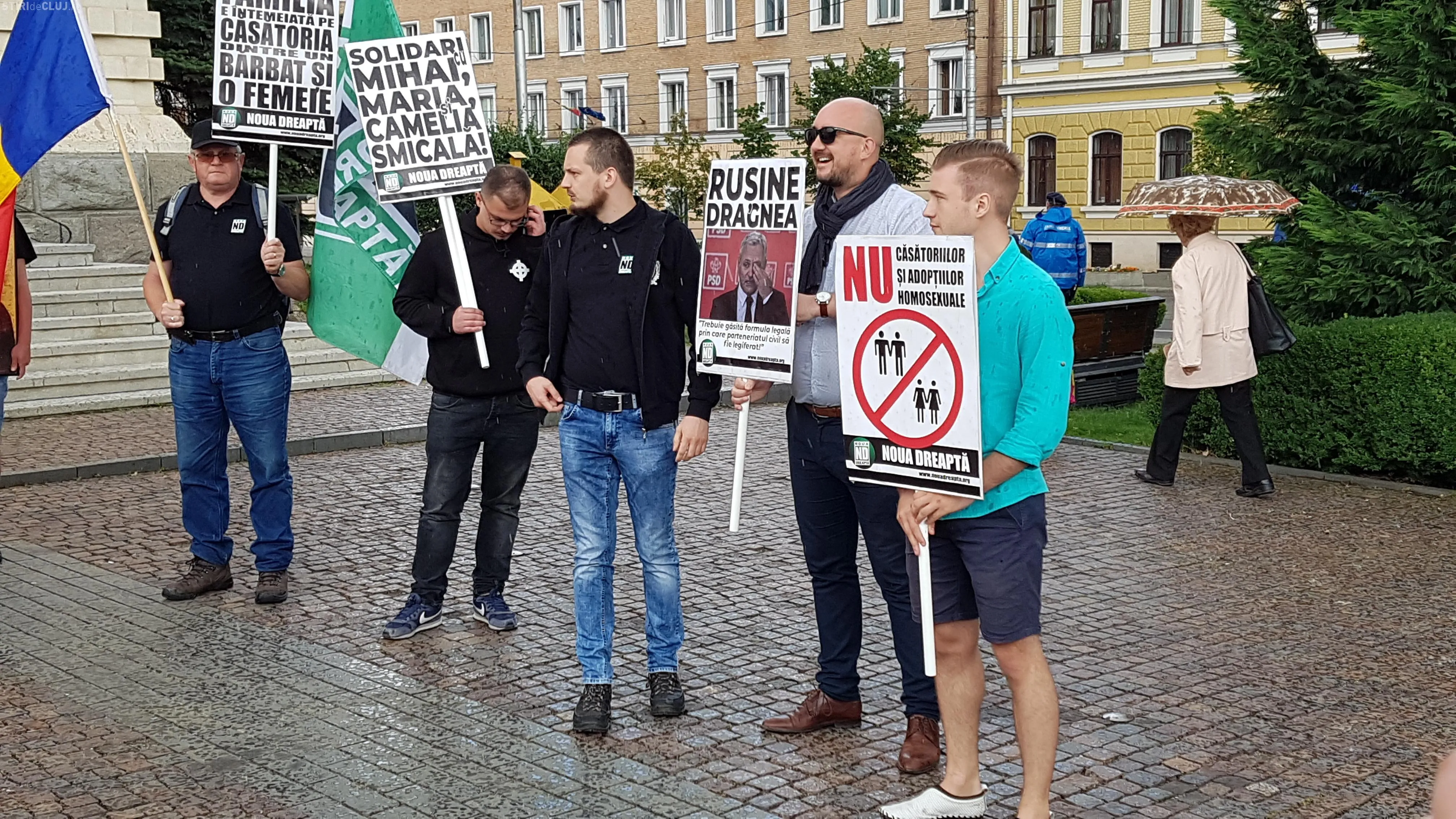 Liderii manifestanților au condamnat faptul că Primăria Cluj-Napoca a autorizat marșul comunității LBGT. ”Condamnăm inițiativa Primăriei de a autoriza această paradă a homosexualilor. S-a consultat domnul primar, Emil Boc, sau cineva din primărie, cu clujenii? Au fost niște discuții libere? Să fie măcar întrebați cetățenii acestui oraș, dacă doresc marșuri ale homosexualilor pe străzile noastre, în fața copiilor noștri, a familiilor noastre. Din nou, anul acesta, parada are loc în zona Sălii Sporturilor ”Horia Demian”, pe lângă parc, dar s-au plâns că nu sunt lăsați în centrul orașului. Unde doresc să facă anul viitor parada homosexualilor? Aici, în fața Catedralei Ortodoxe? În fața statuii lui Avram Iancu? Pe străzile noastre, în mijlocul orașului? Așa ceva nu putem tolera în orașul nostru. Cerem domnului primar Emil Boc să organizeze un referendum pe plan local în care să ceară opinia clujenilor, dacă doresc pe viitor astfel de parade în orașul nostru. Așa este democratic să votăm acest lucru. Cum este democratic să votăm și dacă dorim sau nu căsători între homosexuali, în România”, a spus Codrin Goia, președintele Noua Dreaptă Cluj.