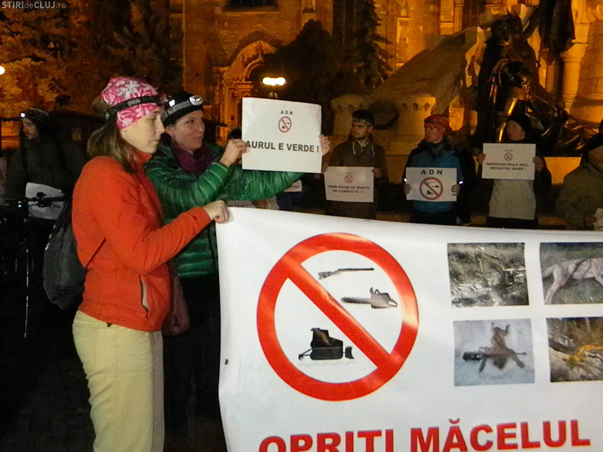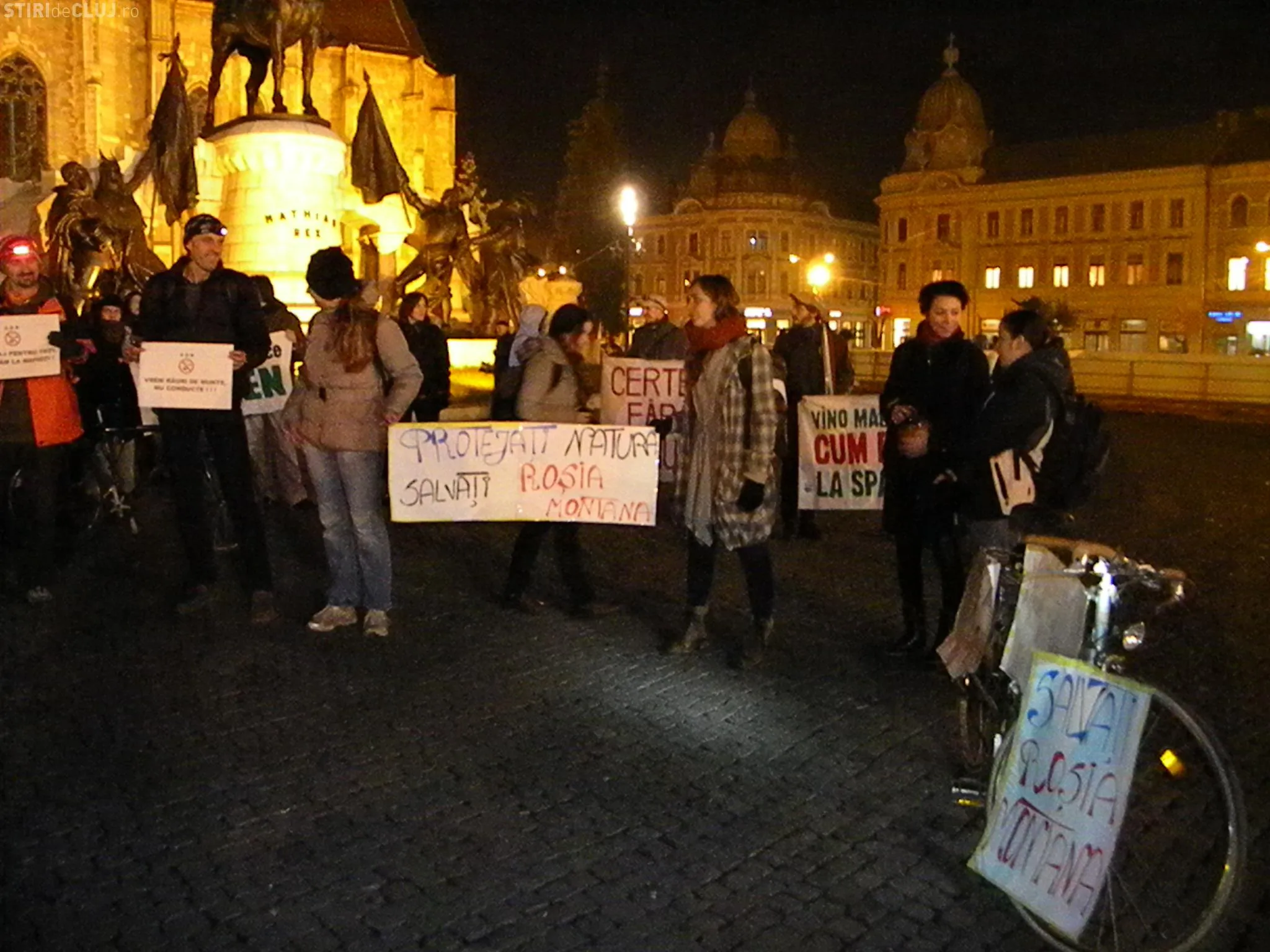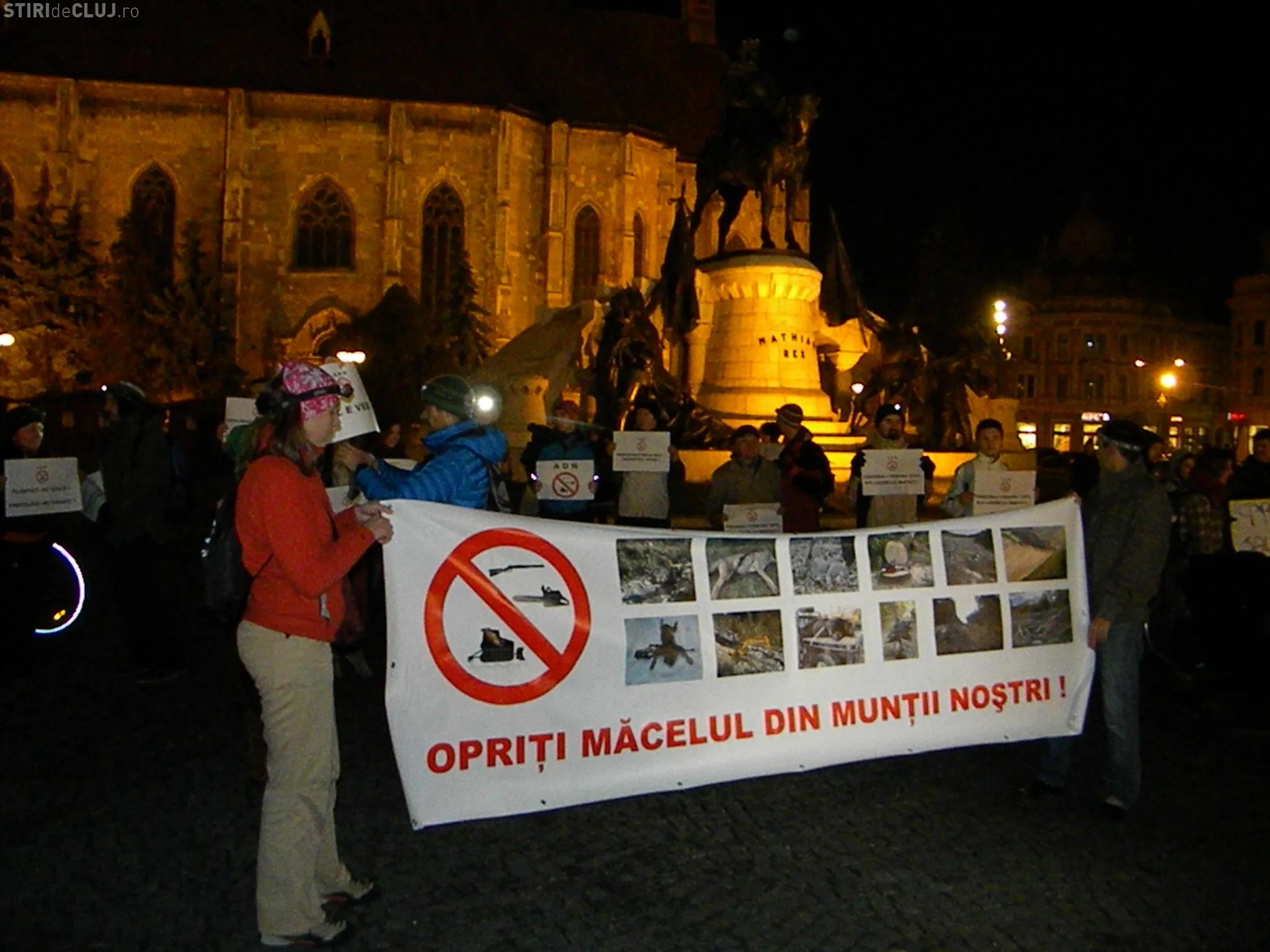 Circa 100 de persoane au protestat în Piața Unirii din Cluj-Napoca, miercuri seara, de la ora 19.00, cerând Guvernului și Ministerului Mediului și al Pădurilor să oprească defrișările.
