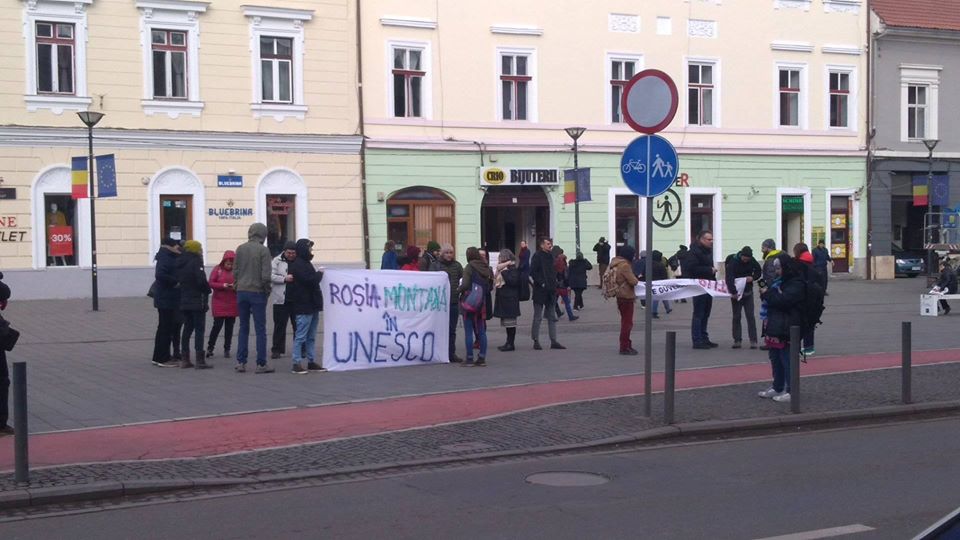 Clujenii au ieșit în stradă joi, 30 ianuarie, de la ora 13.30, și au protestat, cerând includerea Roșiei Montane în UNESCO.