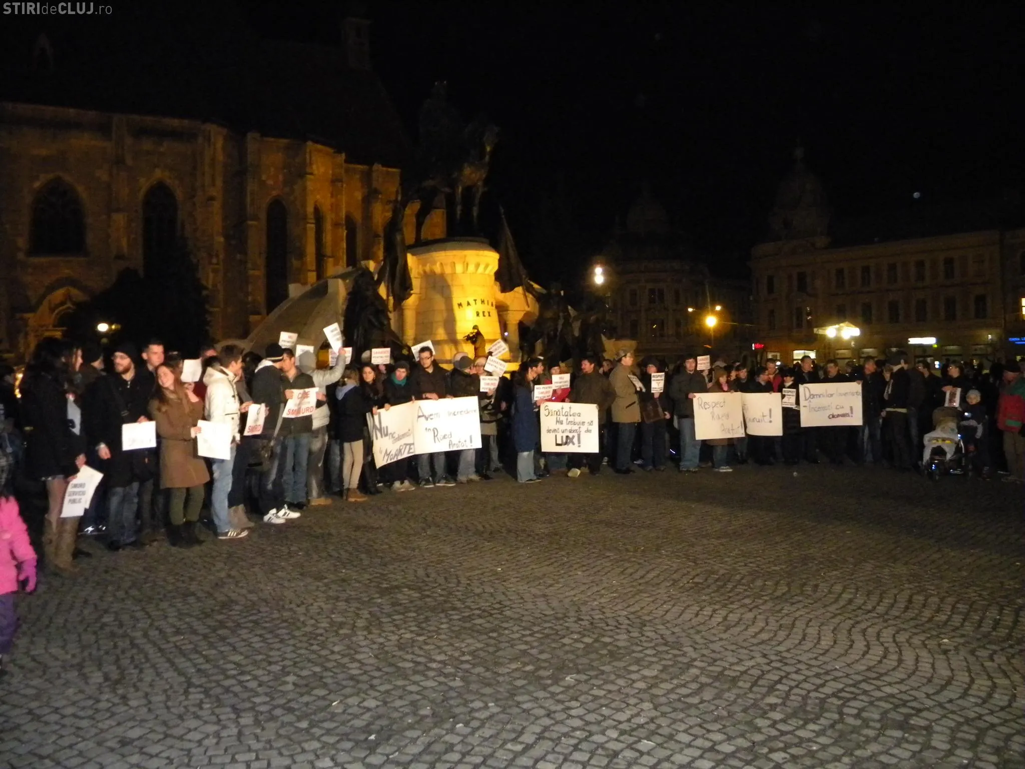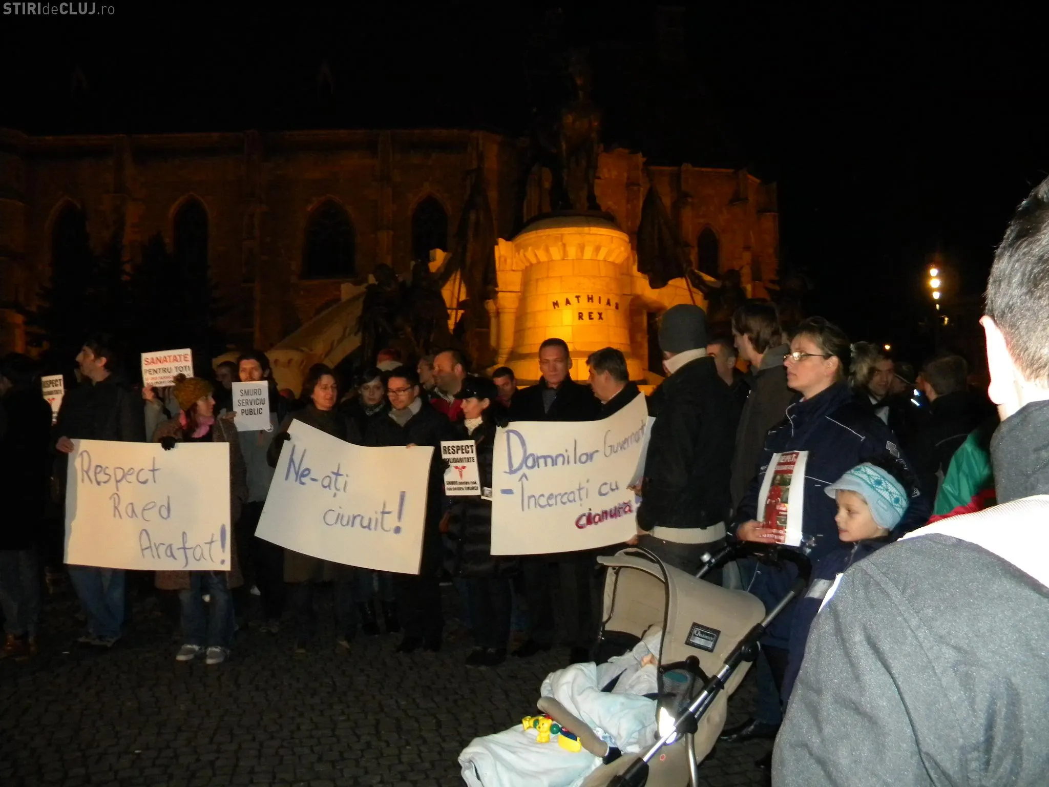 Circa 150 de clujeni s-au adunat in Piata Unirii la ora 19.00, pentru a-l sustine pe Raed Arafat.