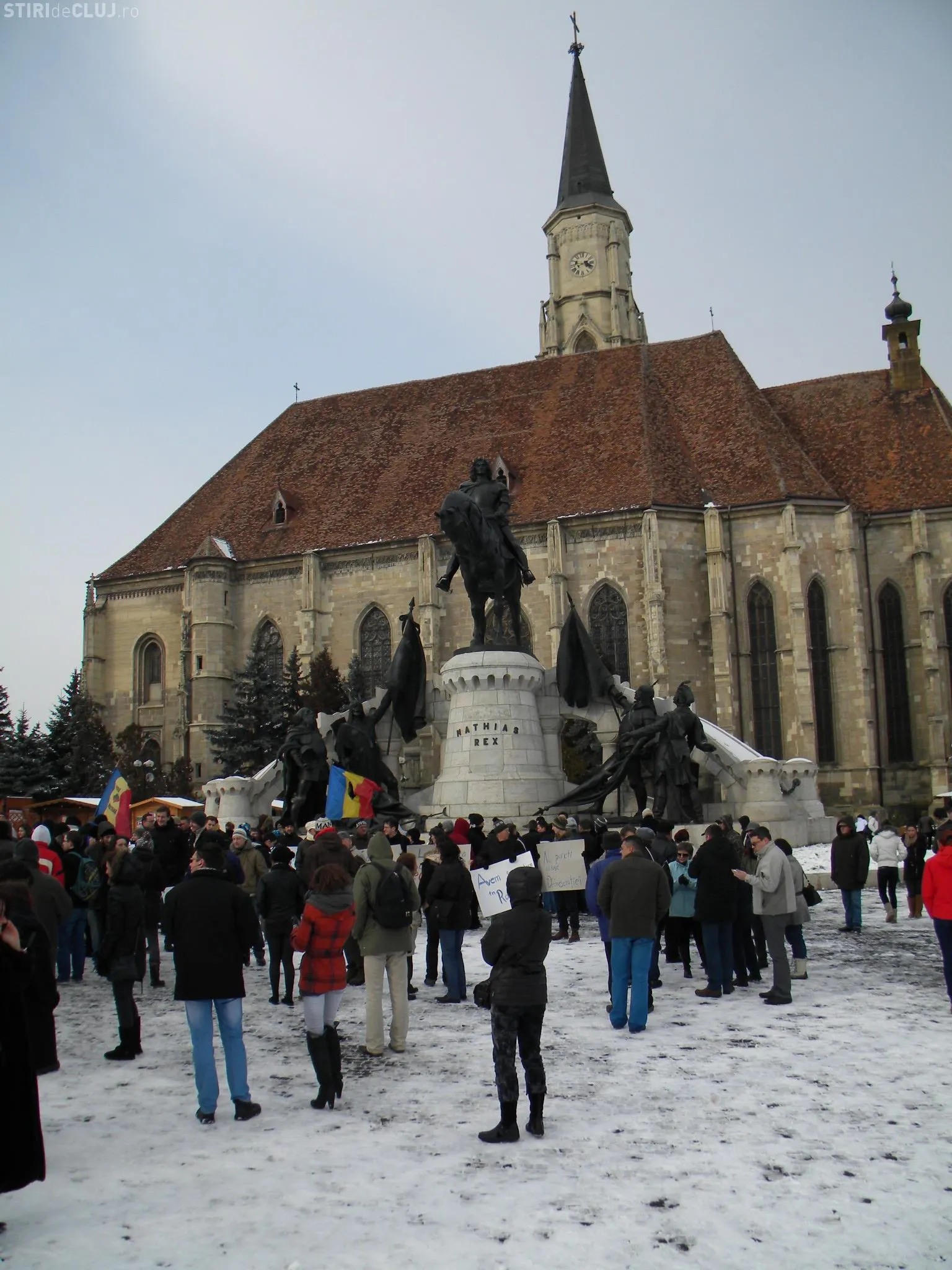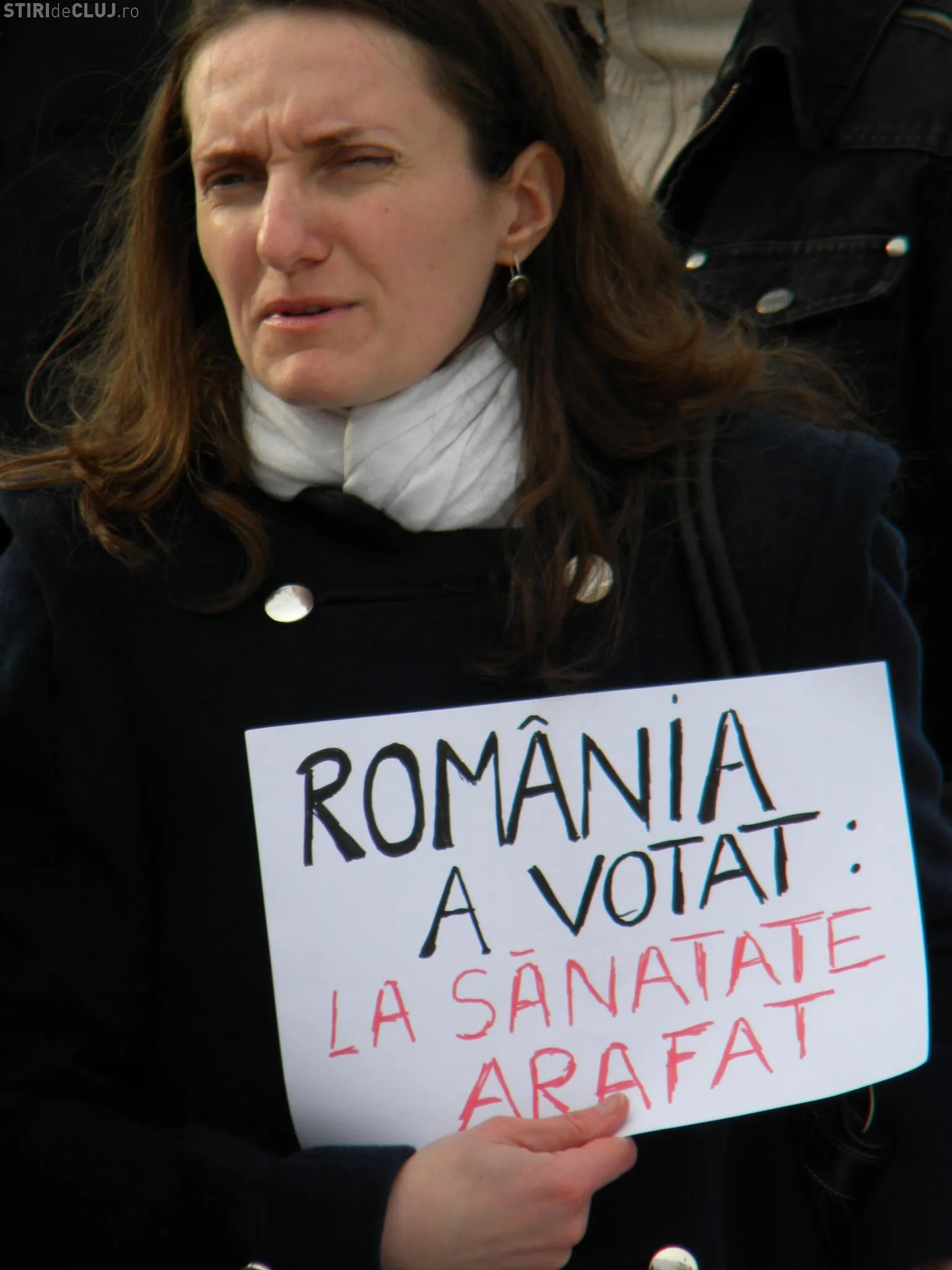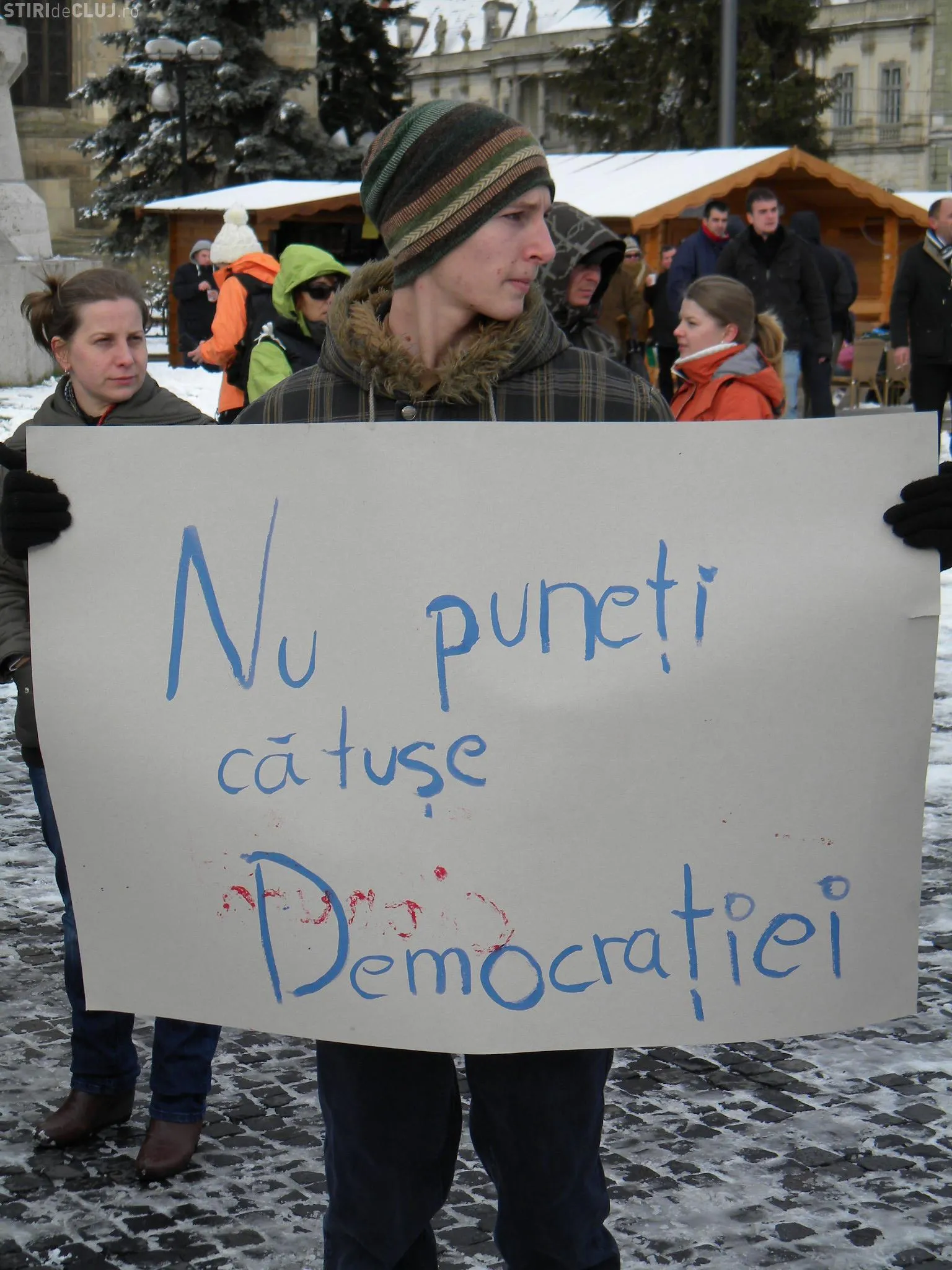 De asemenea, intre cei 100 de protestatari s-a aflat si Alice Rotta, cea care in ianuarie 2011 a protestat timp de cateva zile, pe Bulevardul Eroilor, in fata sediului PDL Cluj, cerand demisia lui Traian Basescu si Emil Boc. Vezi AICI detalii.