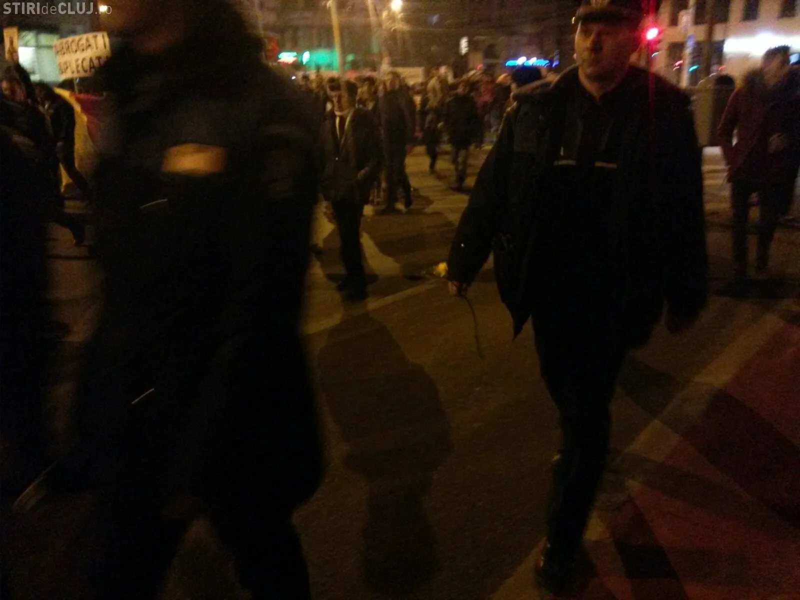 Protest și flori la Cluj! Gesturi de solidaritate cu Poliția și Jandarmeria FOTO VIDEO