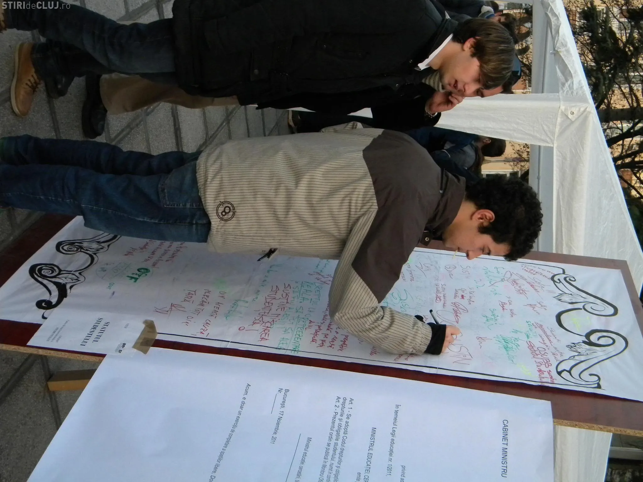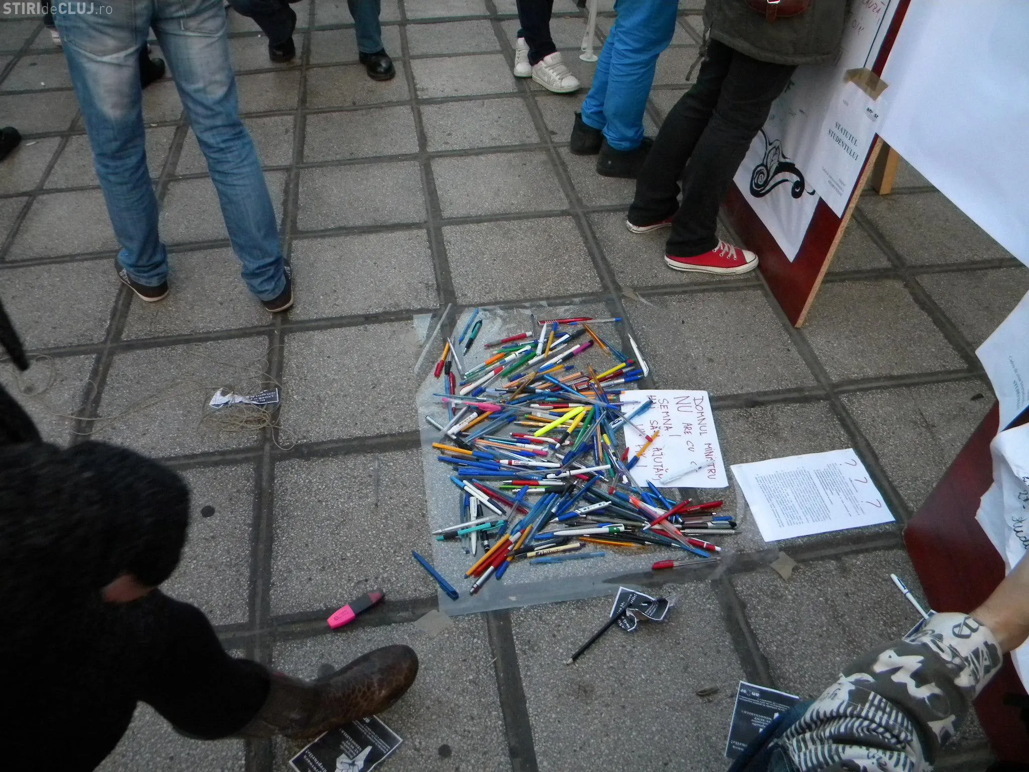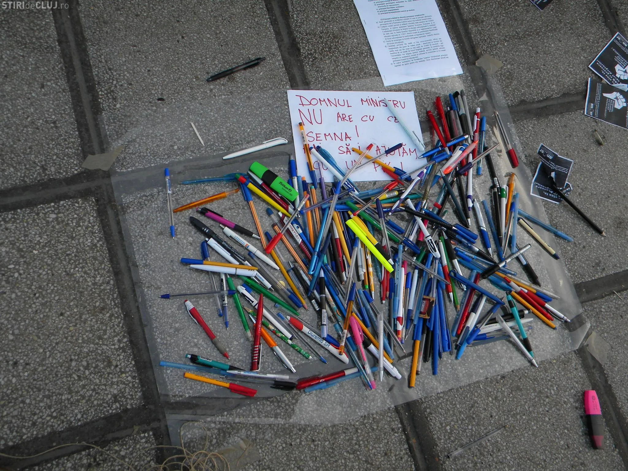Protest studentesc in Piata Lucian Blaga! Tinerii au strans sute de pixuri pentru ministrul Educatiei, Daniel Funeriu VIDEO si FOTO