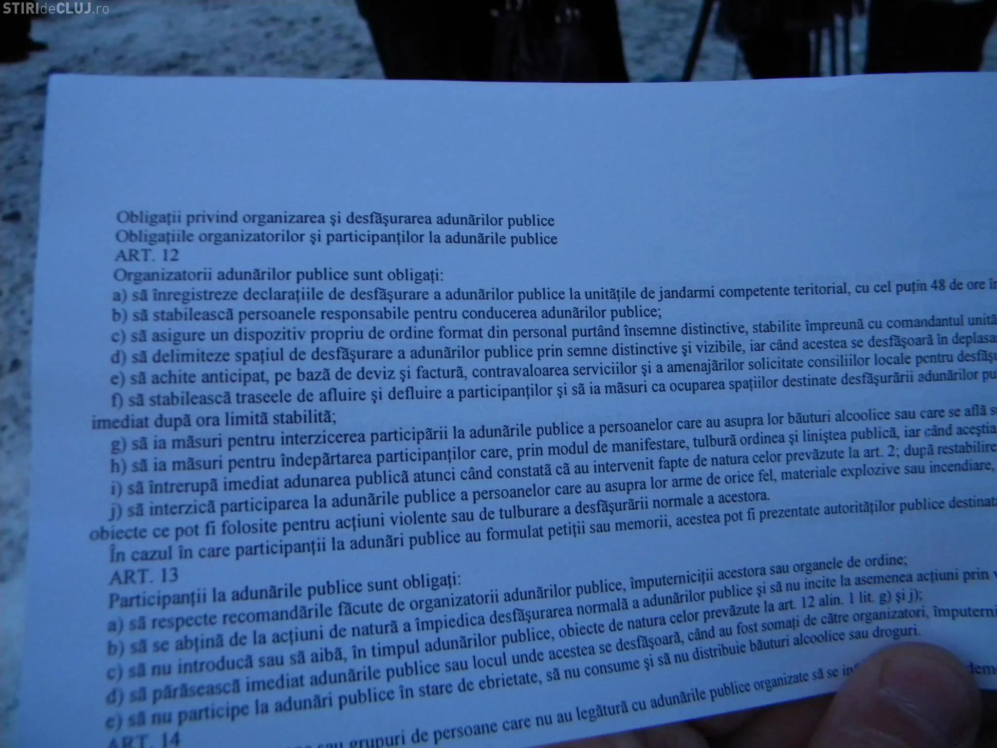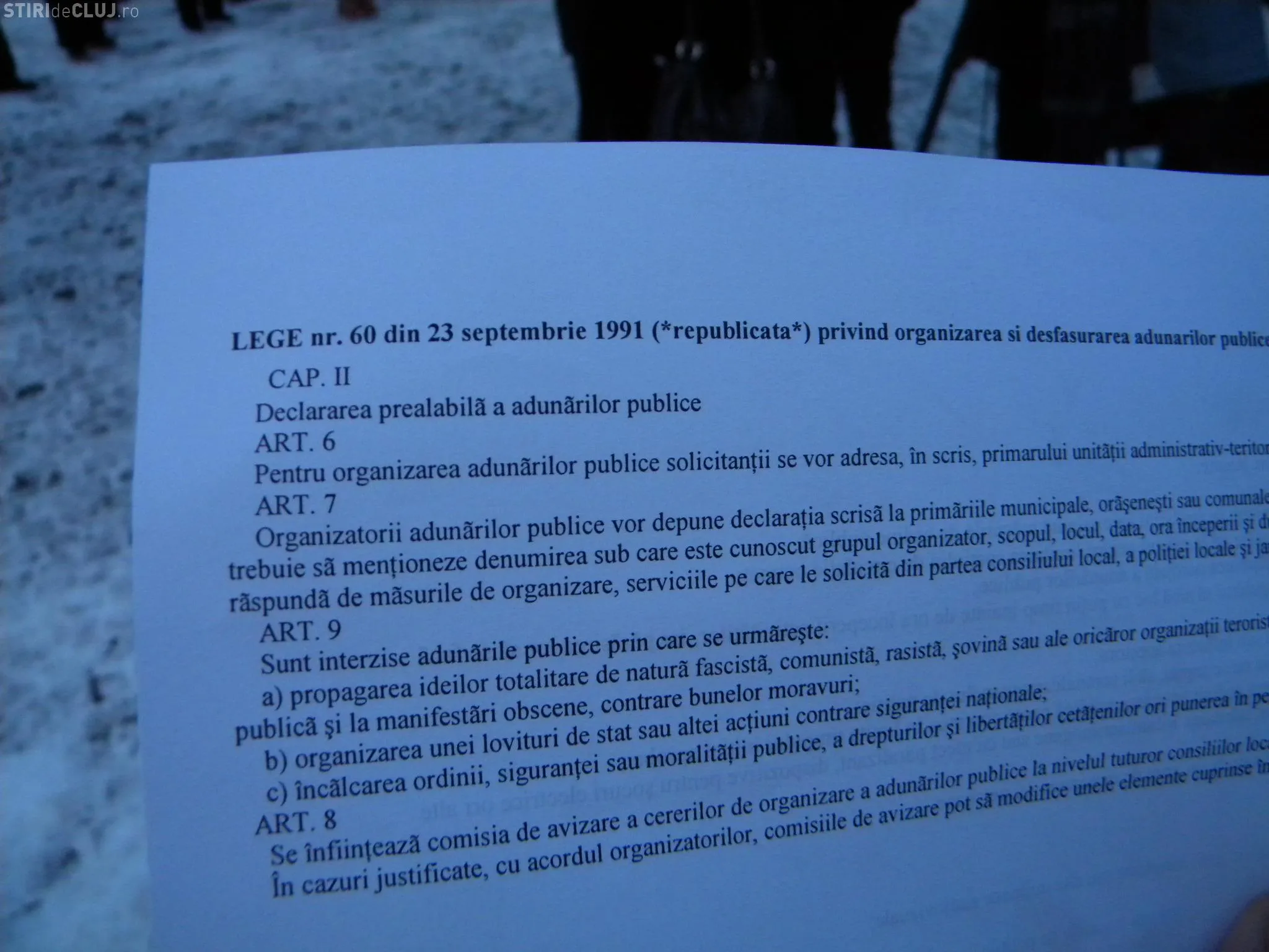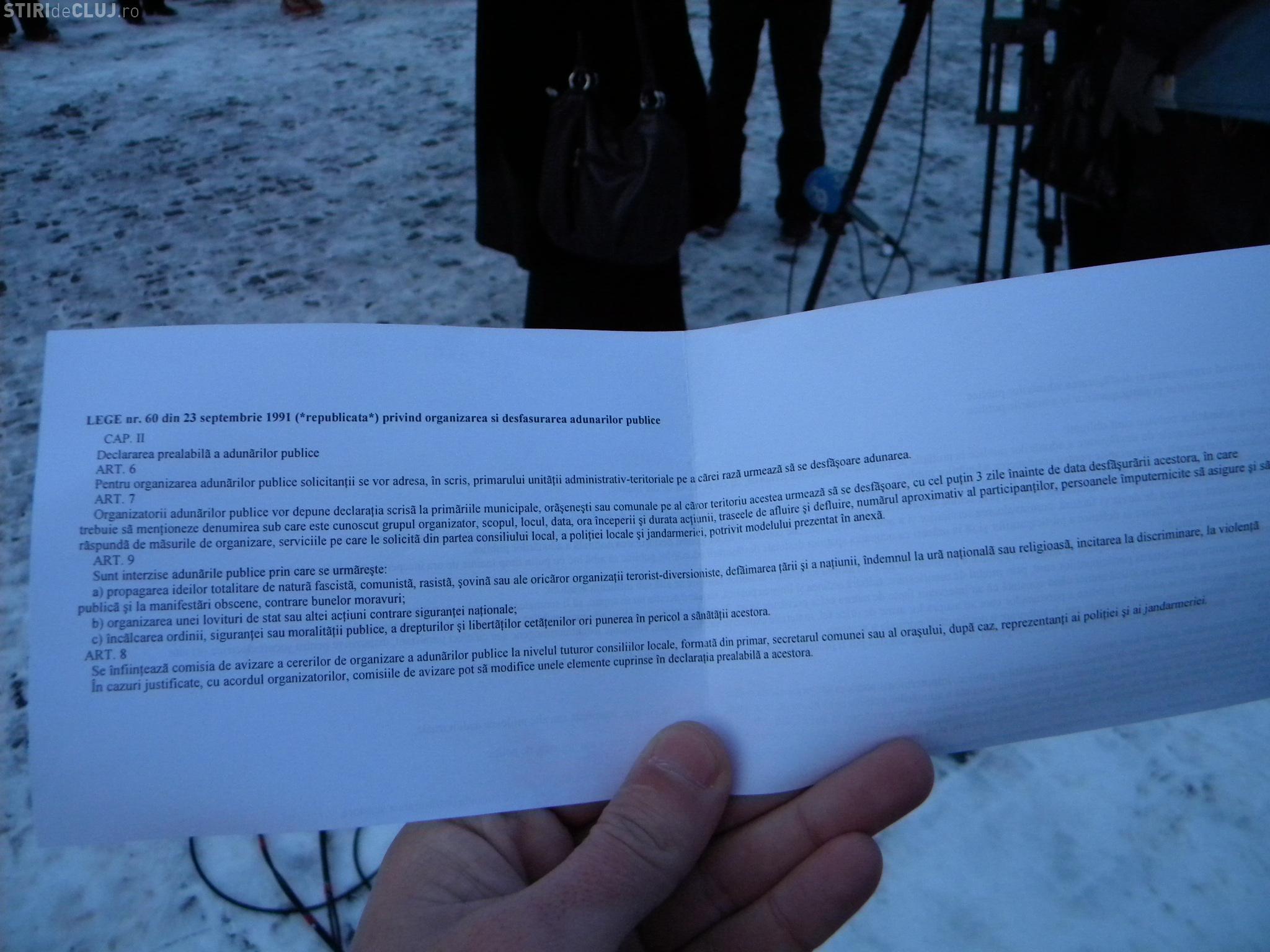 Jandarmii le-au impartit menifestantilor hartii in care erau trecute prevederile legii 60/1991, legea ordinii si linistii publice.