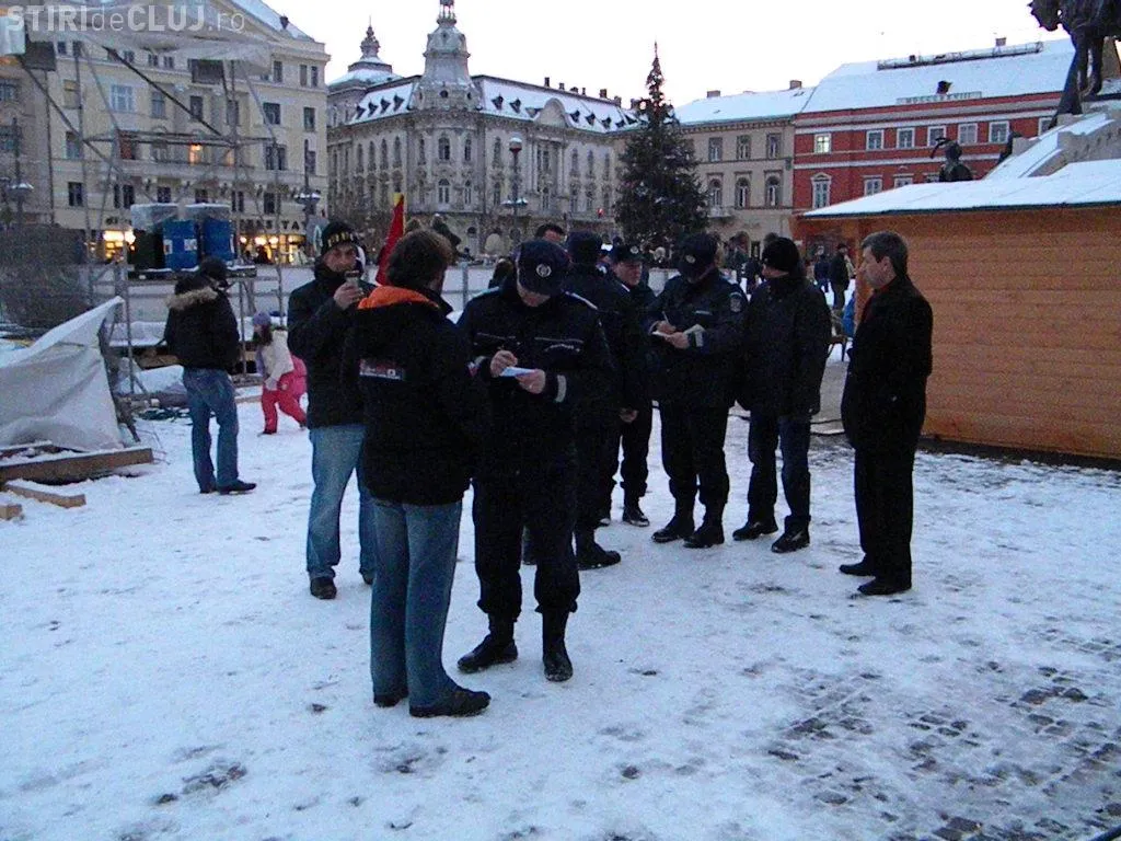 O parte dintre cei 100 de protestatari care si-au exprimat nemultumirea fata de Traian Basescu, sambata, 14 ianuarie, in Piata Unirii din Cluj-Napoca au primit hartii de "intimidare".