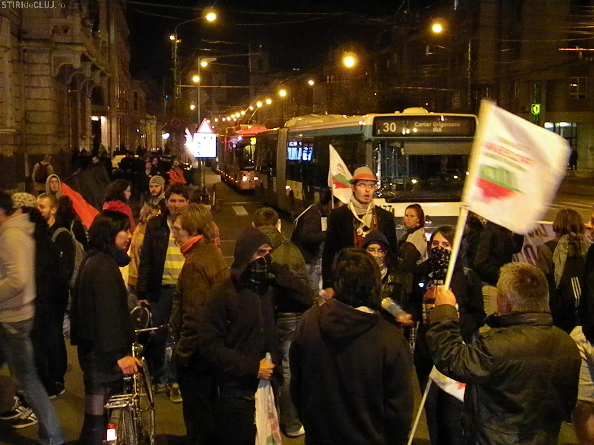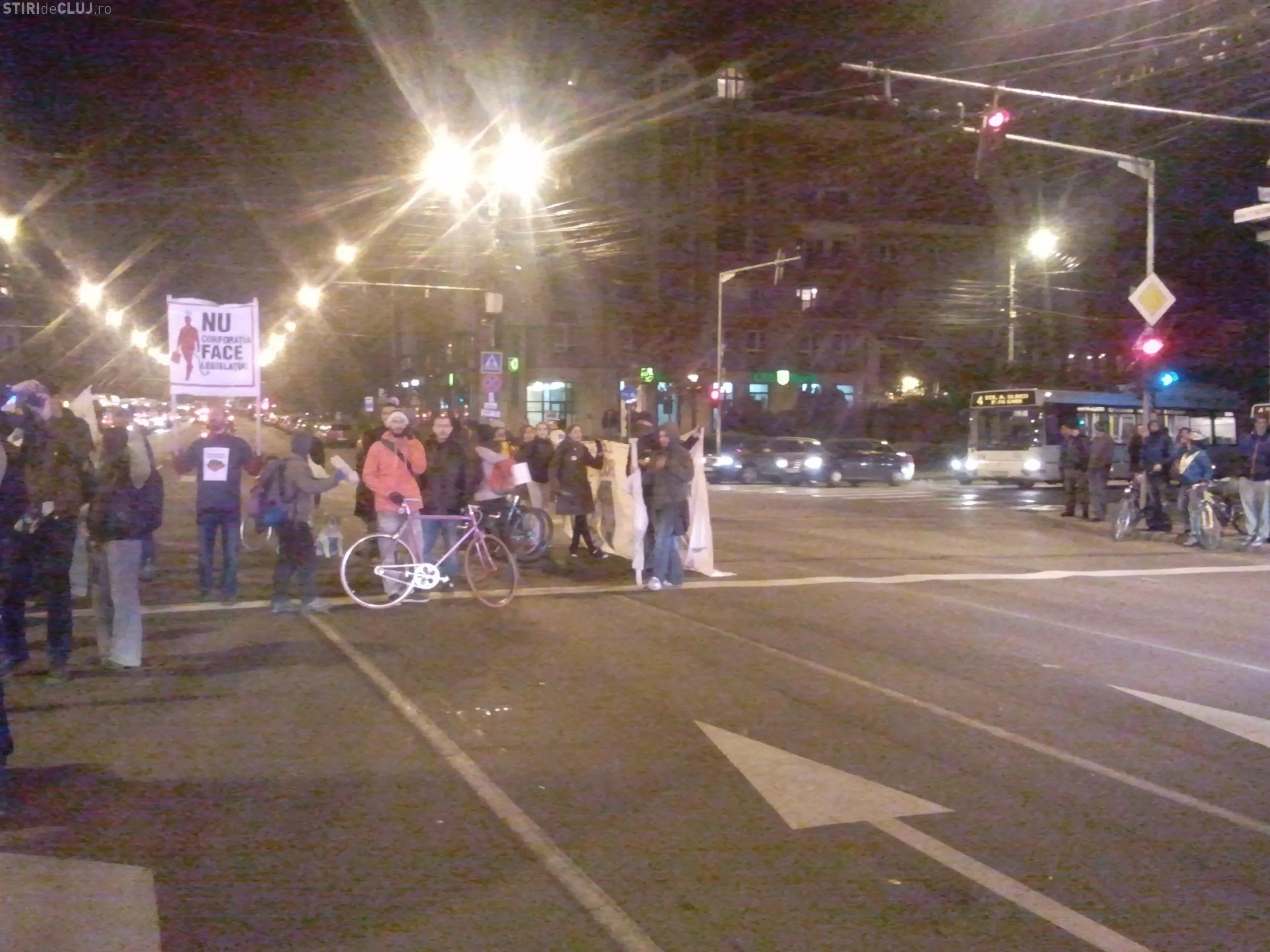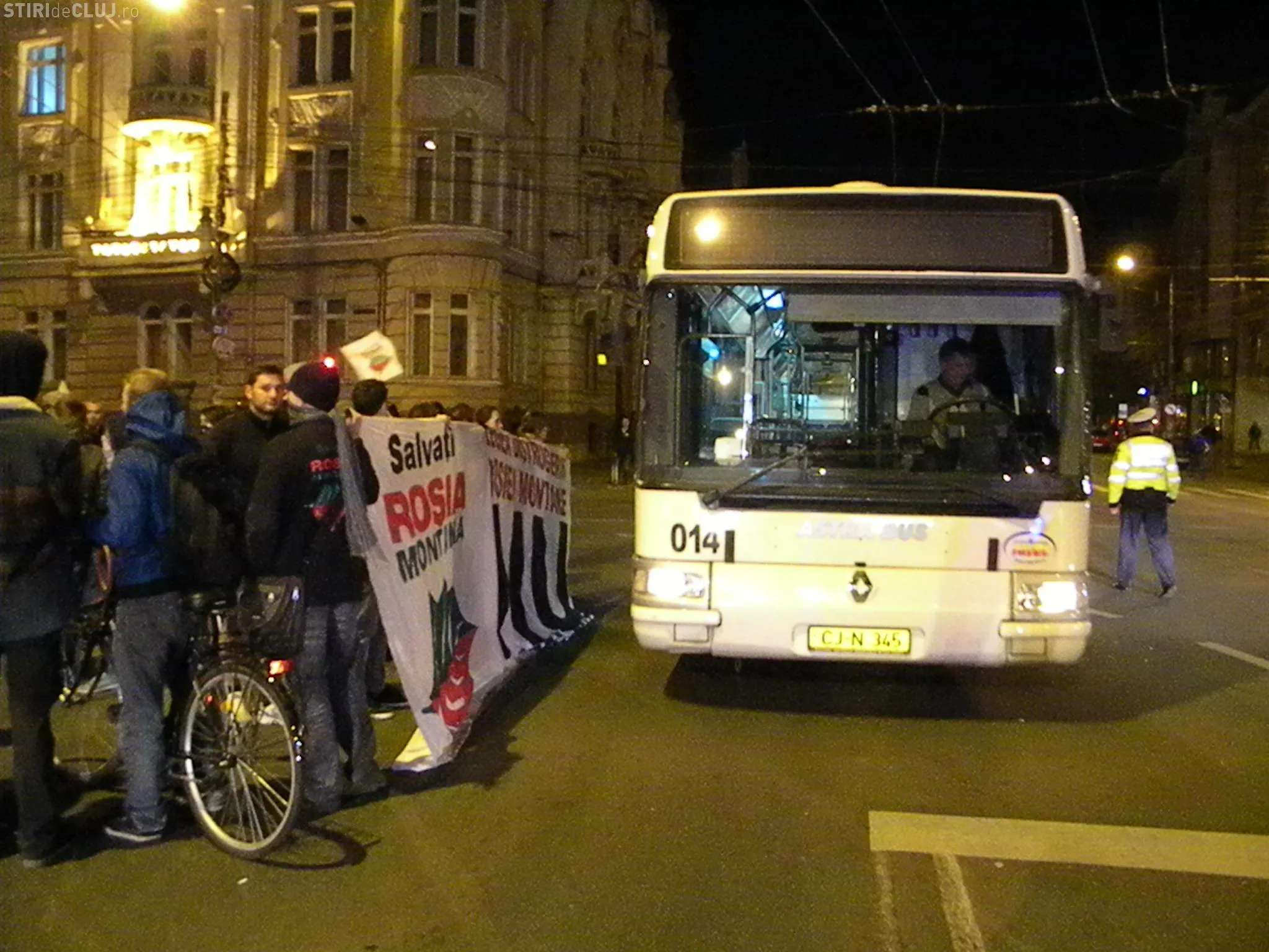 Protestatarii anti Rosia Montana au blocat in aceasta seara, in jurul orei 21.00, traficul pe bulevardul 21 Decembrie, în fata Prefecturii Cluj, timp de aproximativ o ora si 25 de minute.