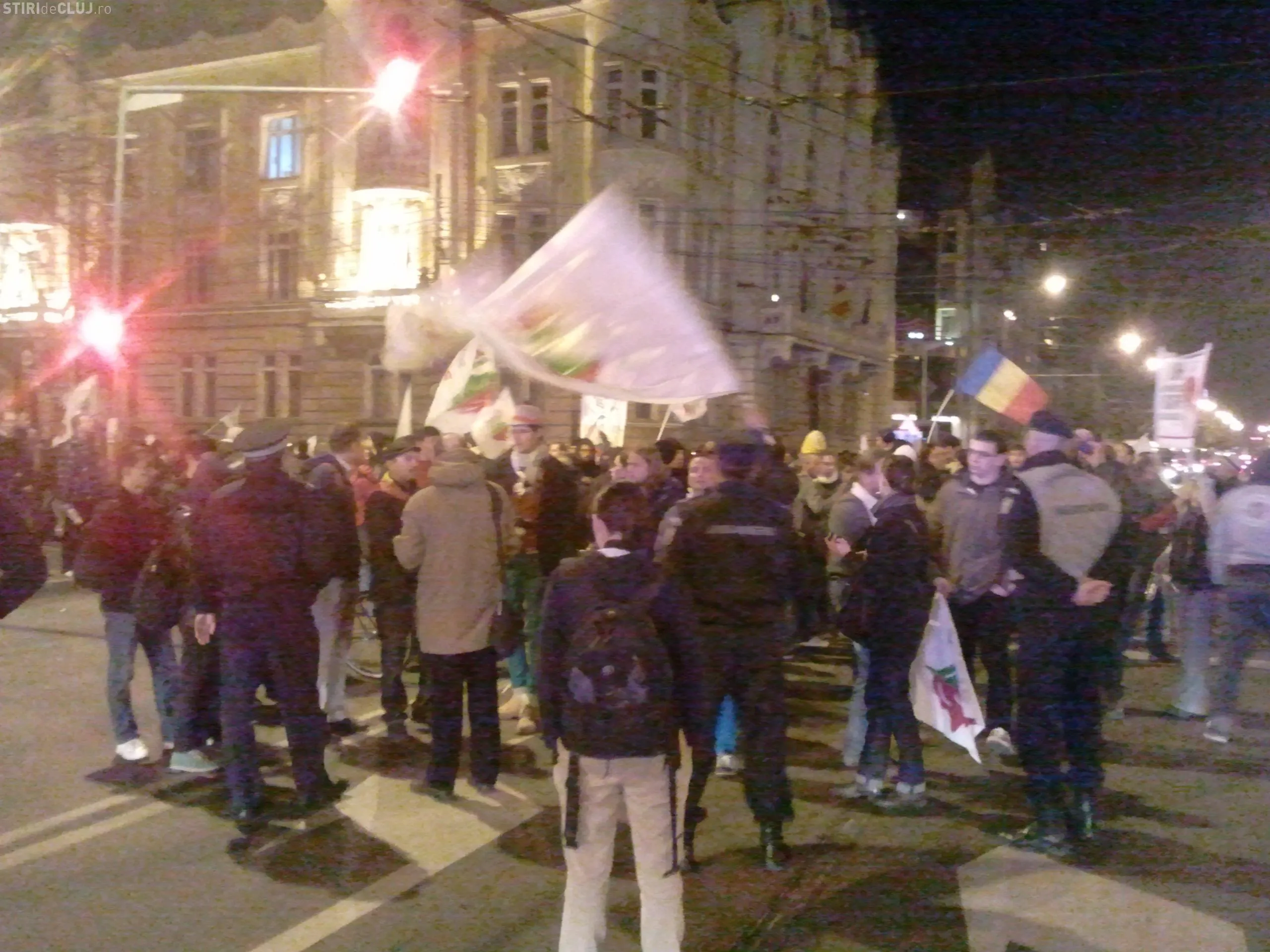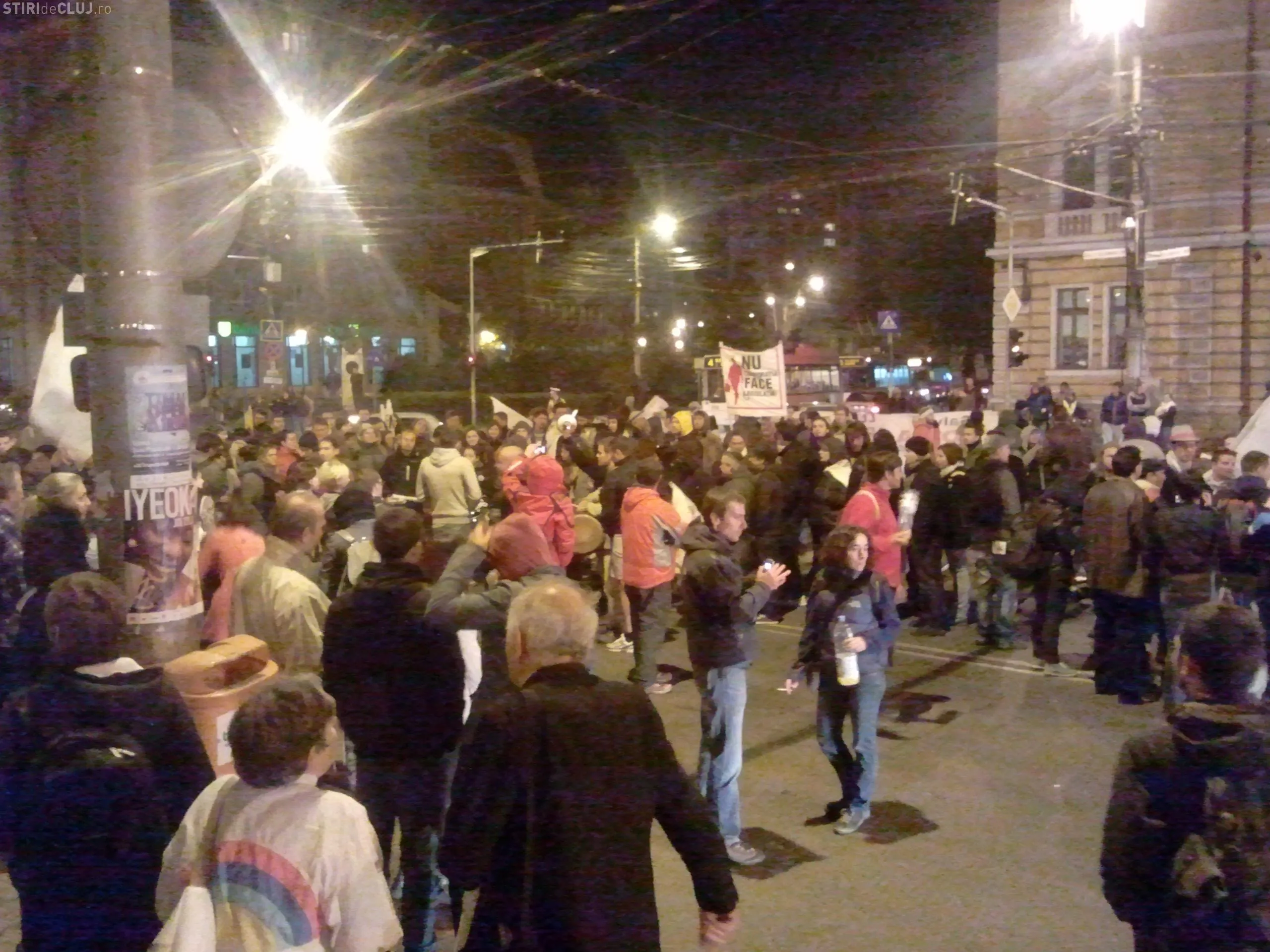 Protestatarii Anti Rosia Montana au blocat B-dul 21 decembrie, in fata Prefecturii Cluj. Jandarmii au fost chemati sa intervina- FOTO