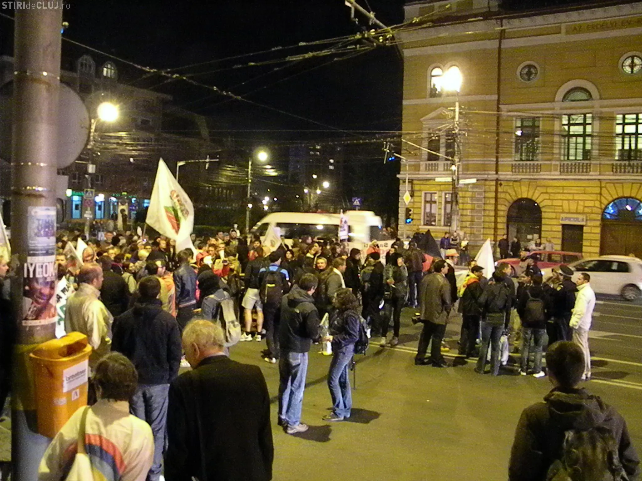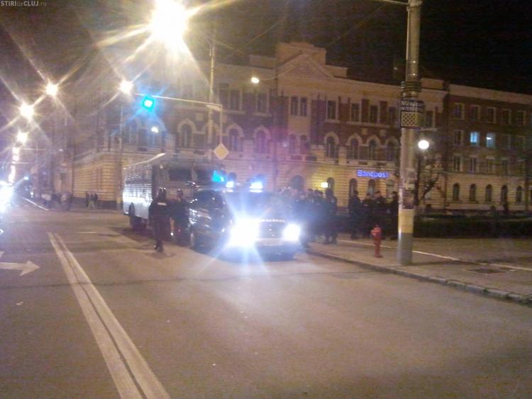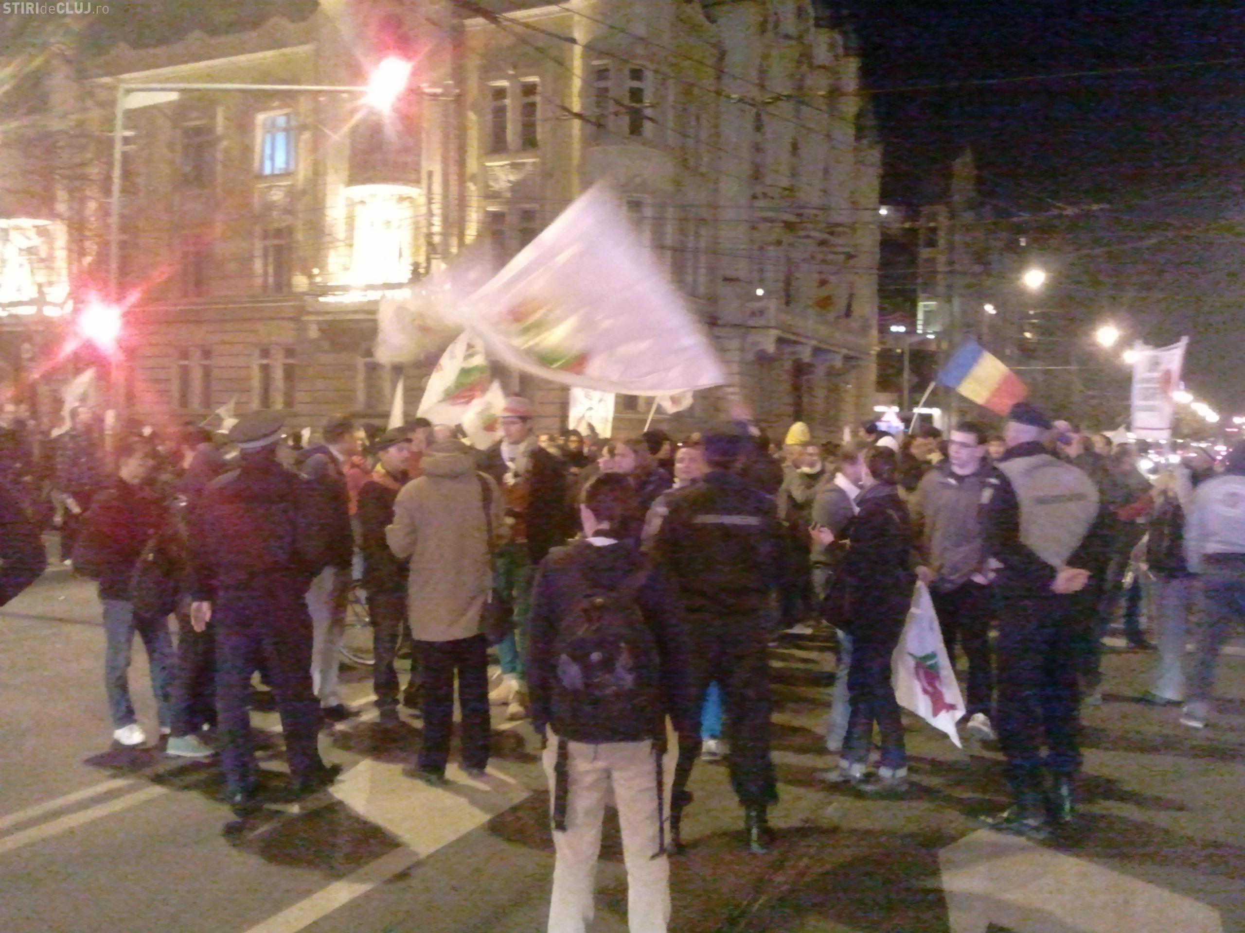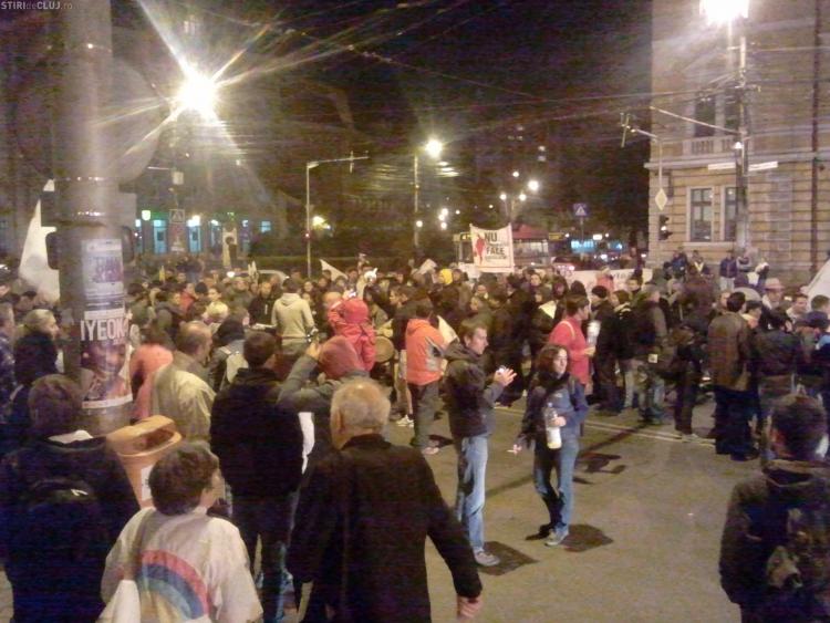 Protestatarii au deblocat traficul de bunavoie si s-au retras in Piata Avram Iancu.