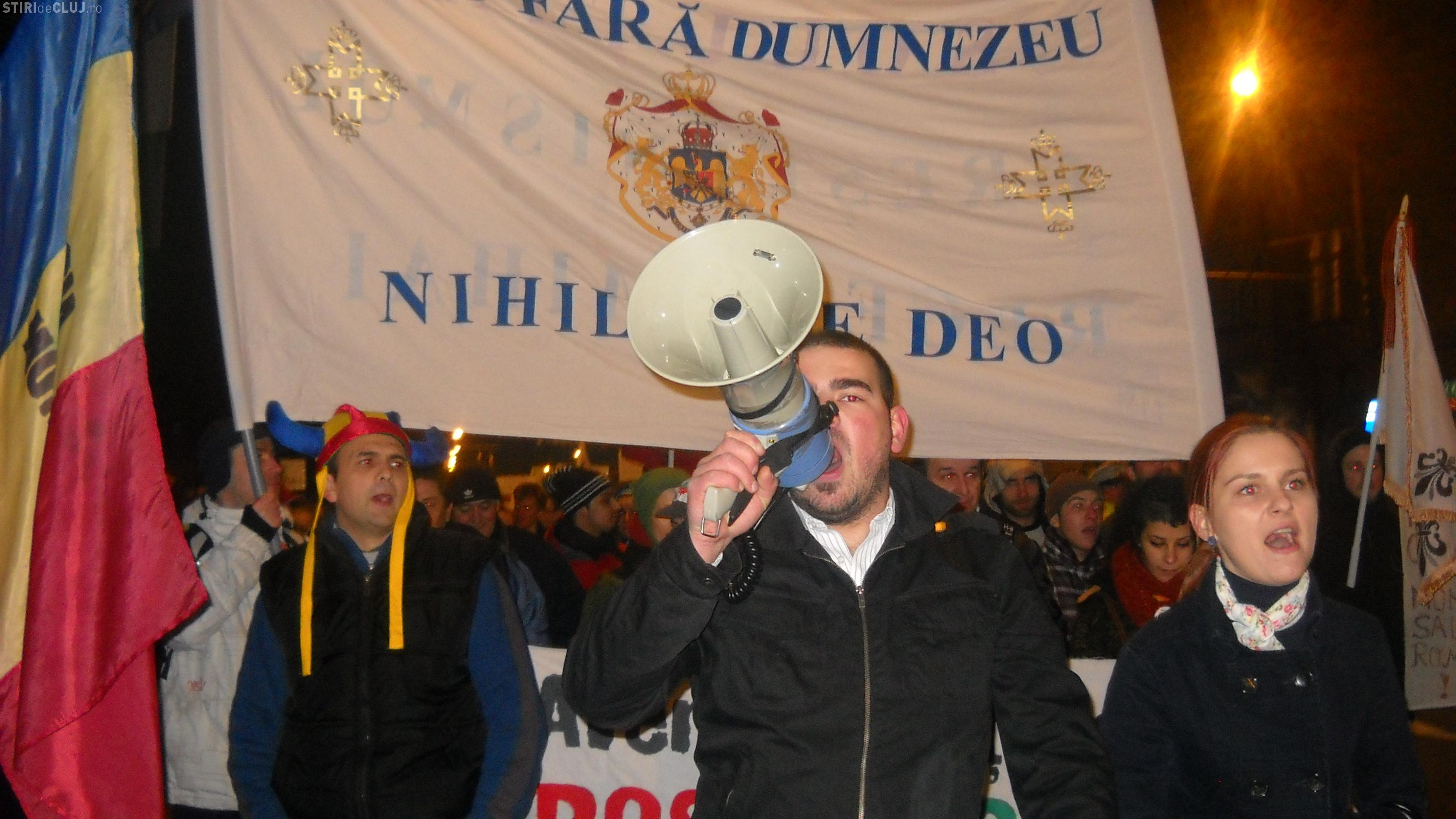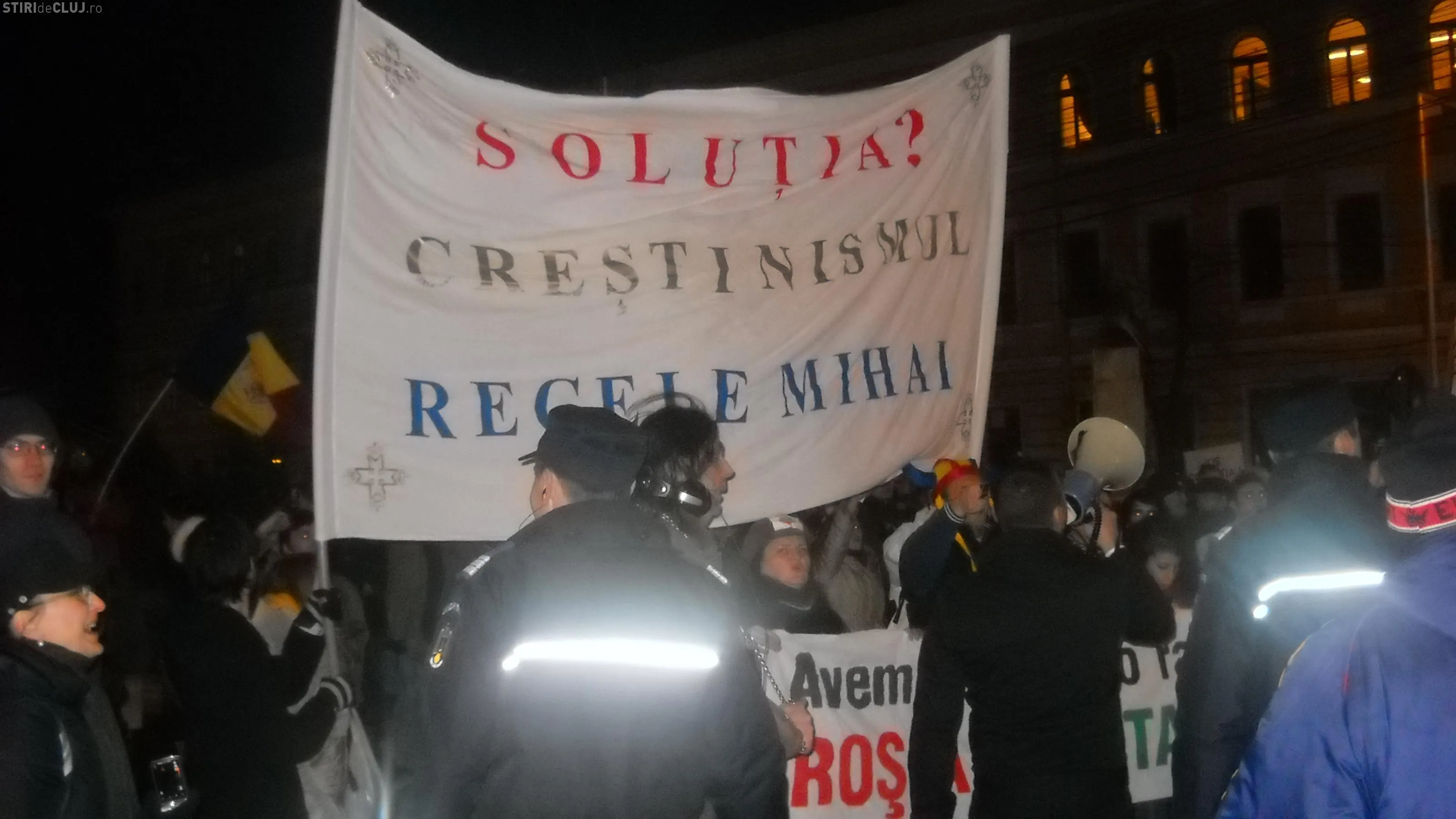 Clujenii prezenti la protestele din aceasta seara de la Cluj au cerut reinstituirea monarhiei constitutionale si revenirea regelui Mihai pe tron.